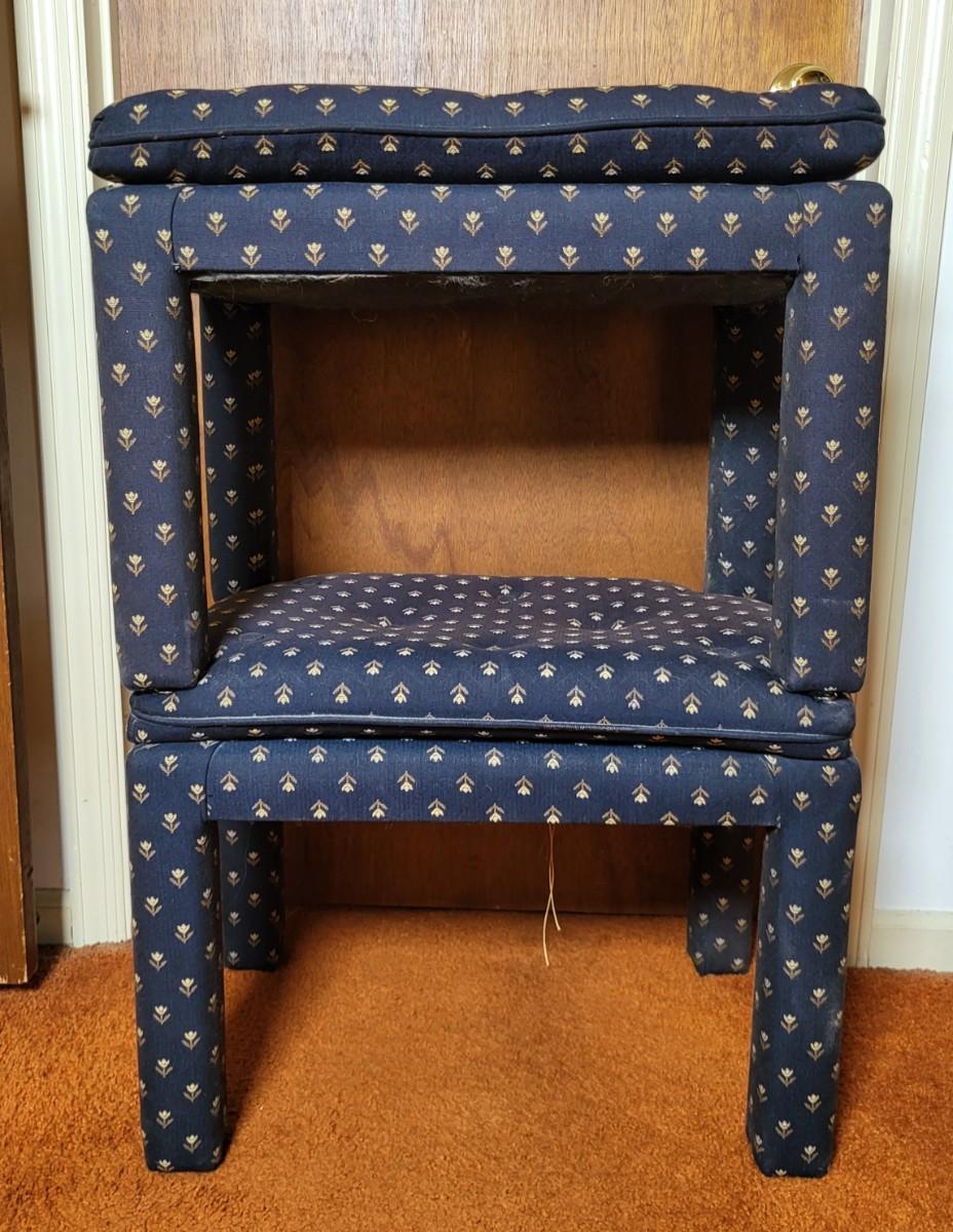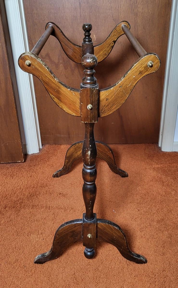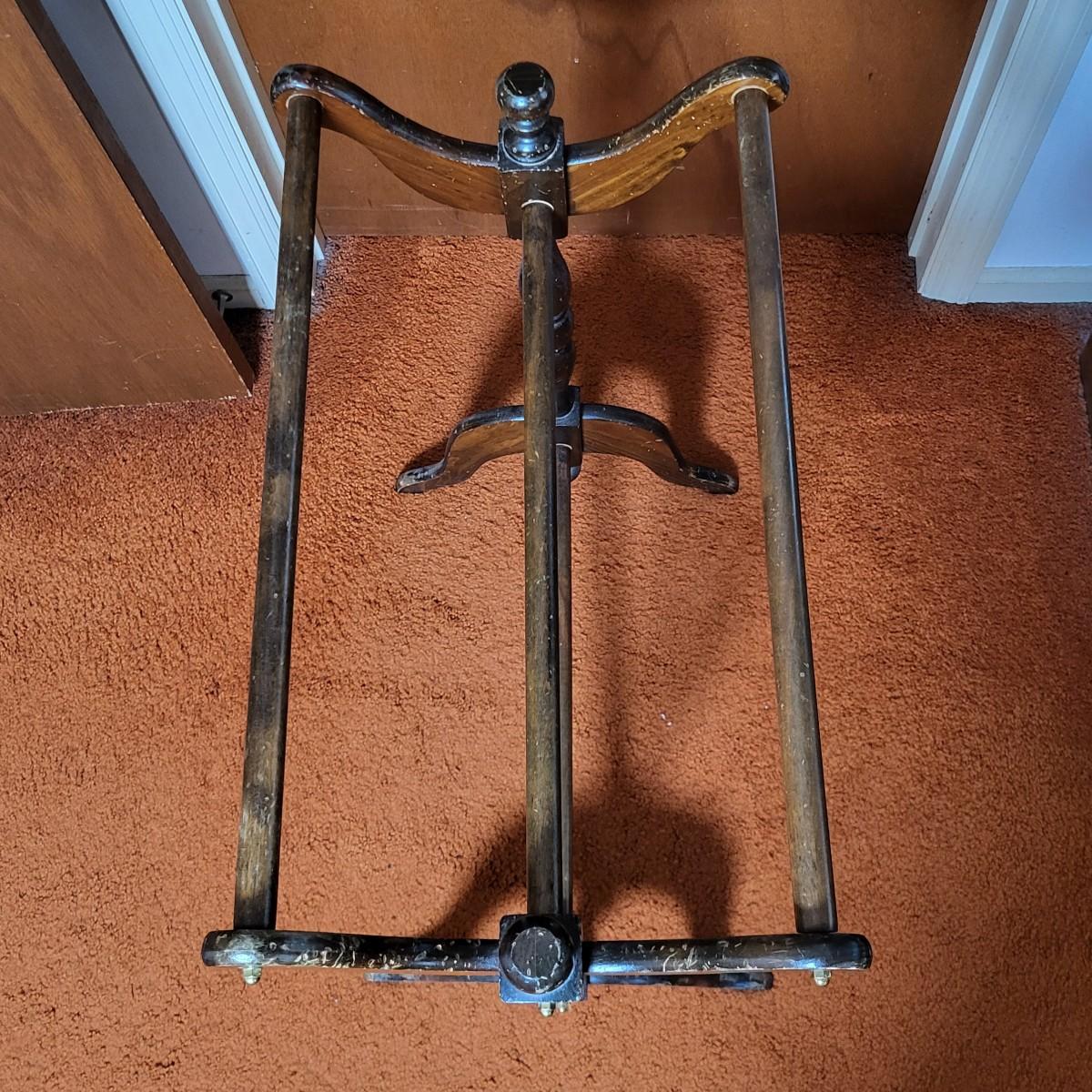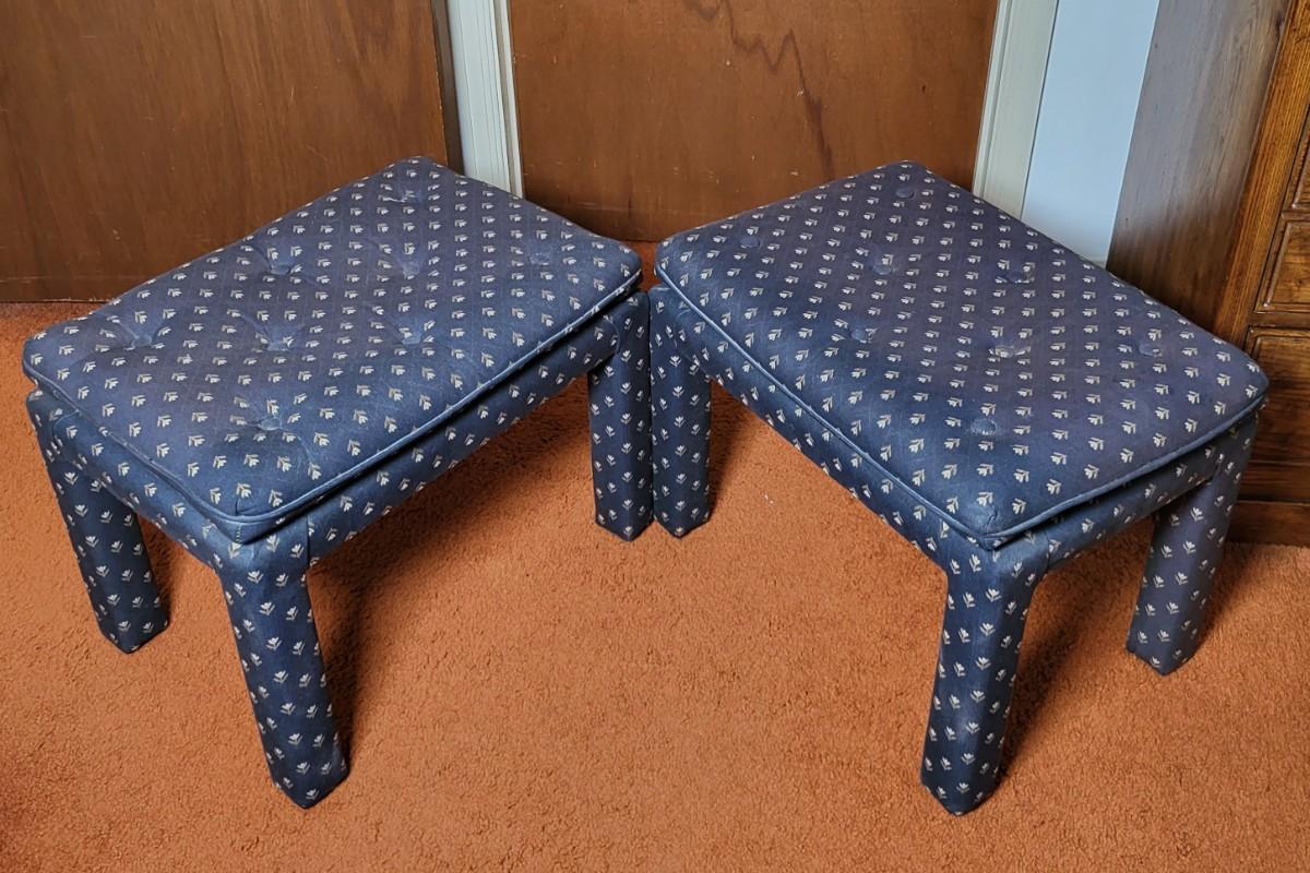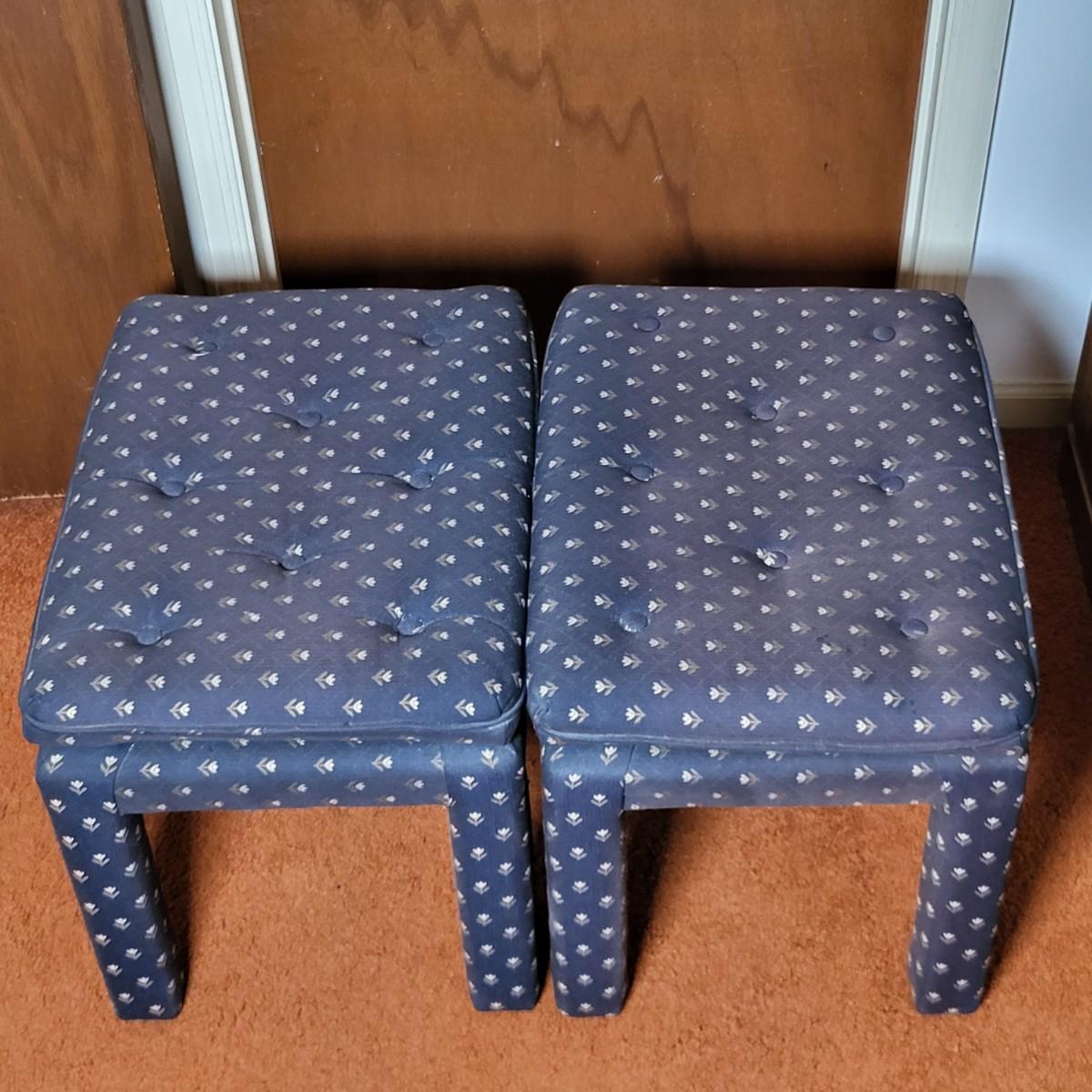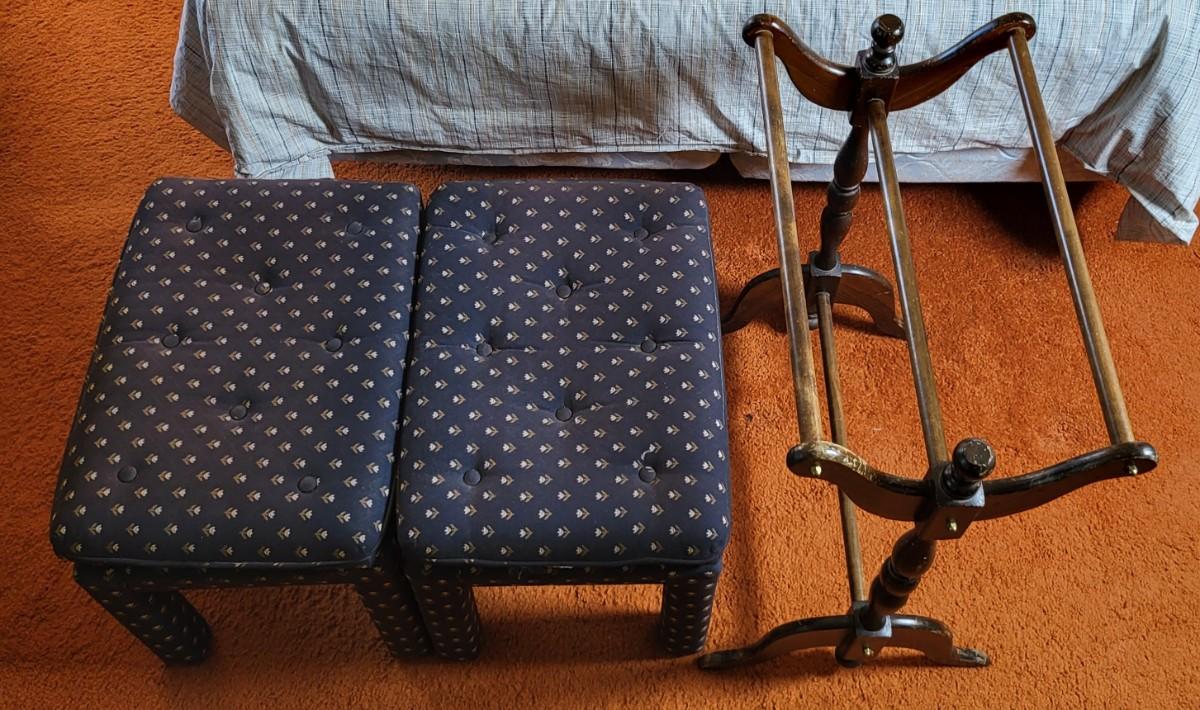 LOT 12B: Pair of Matching Blue Pillowtop Ottoman's and Antique Wooden Clothing Rack