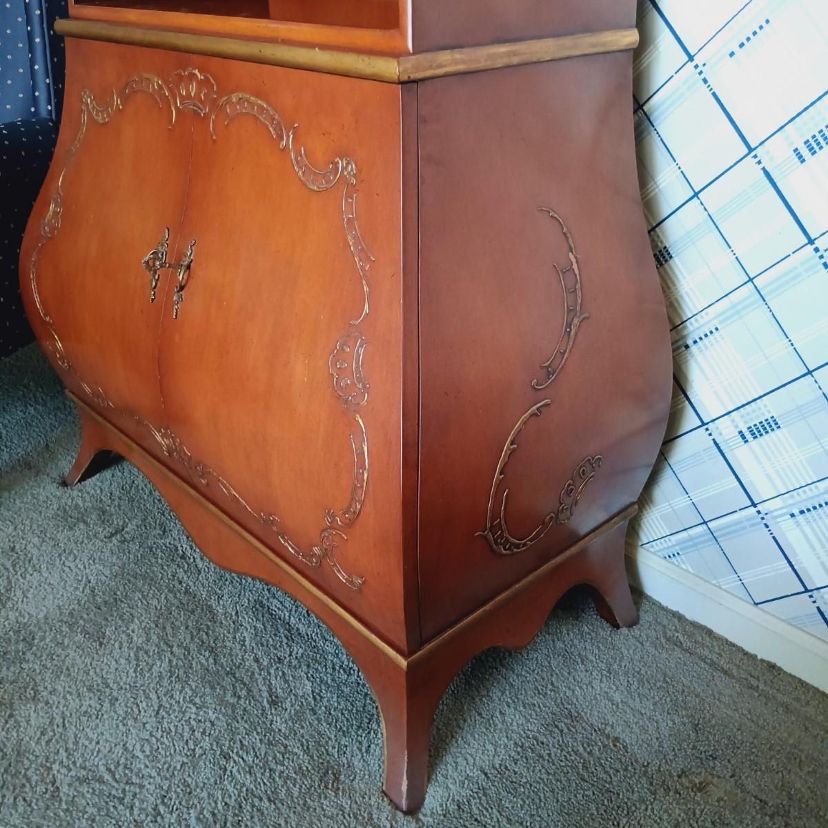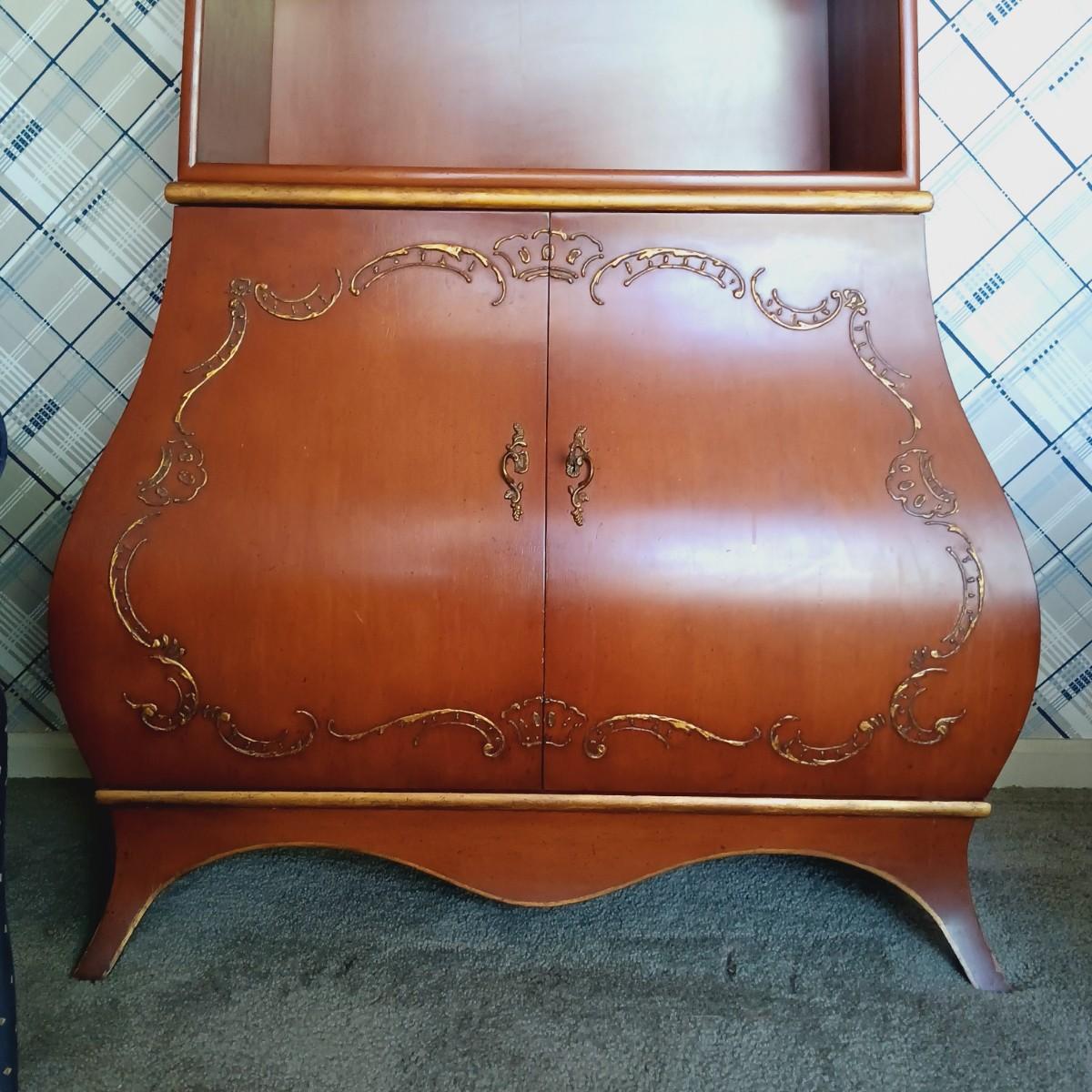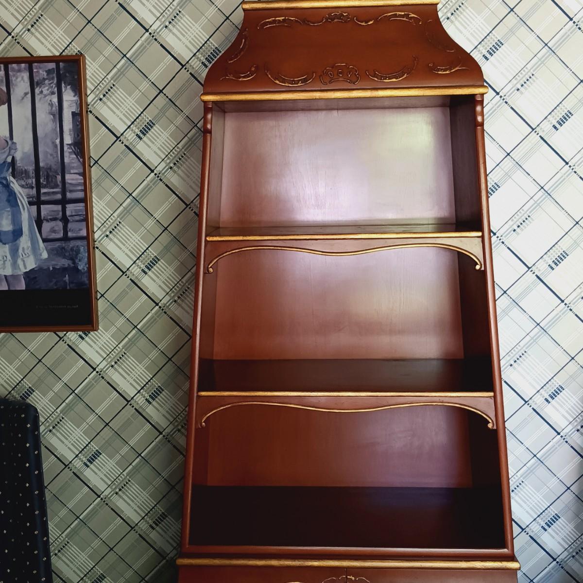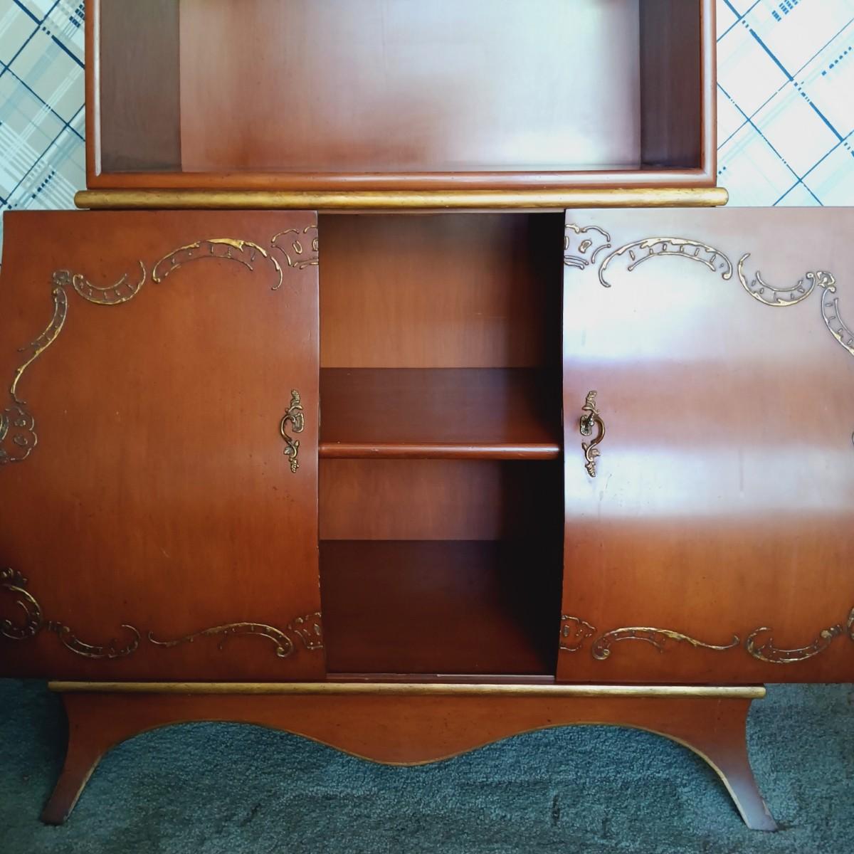 LOT 23L: Vintage Wooden Bookcase with Sliding Door Cabinet and Enameled Design