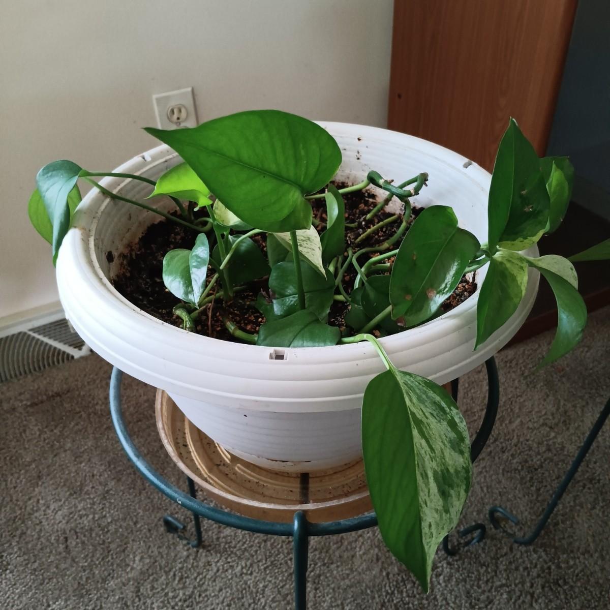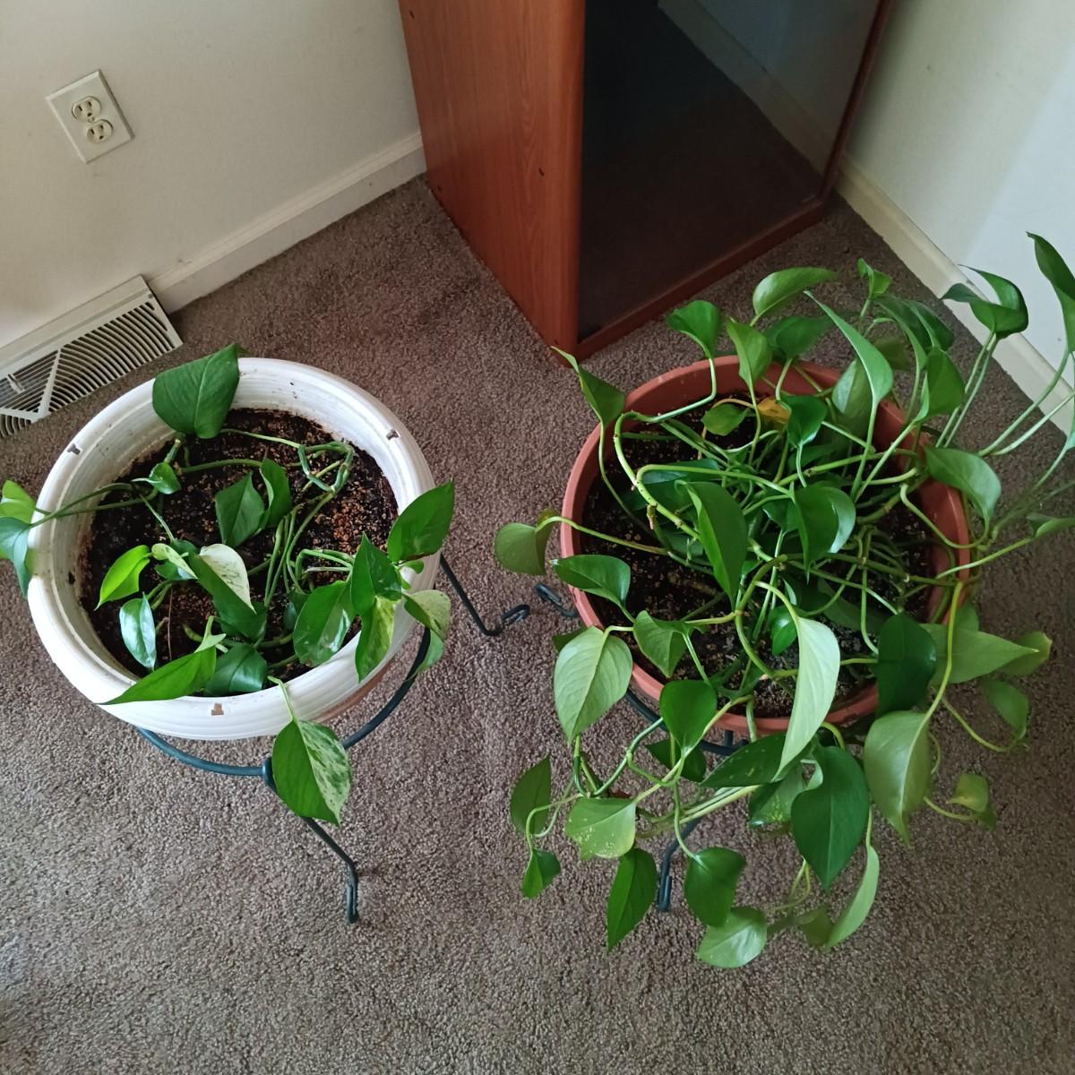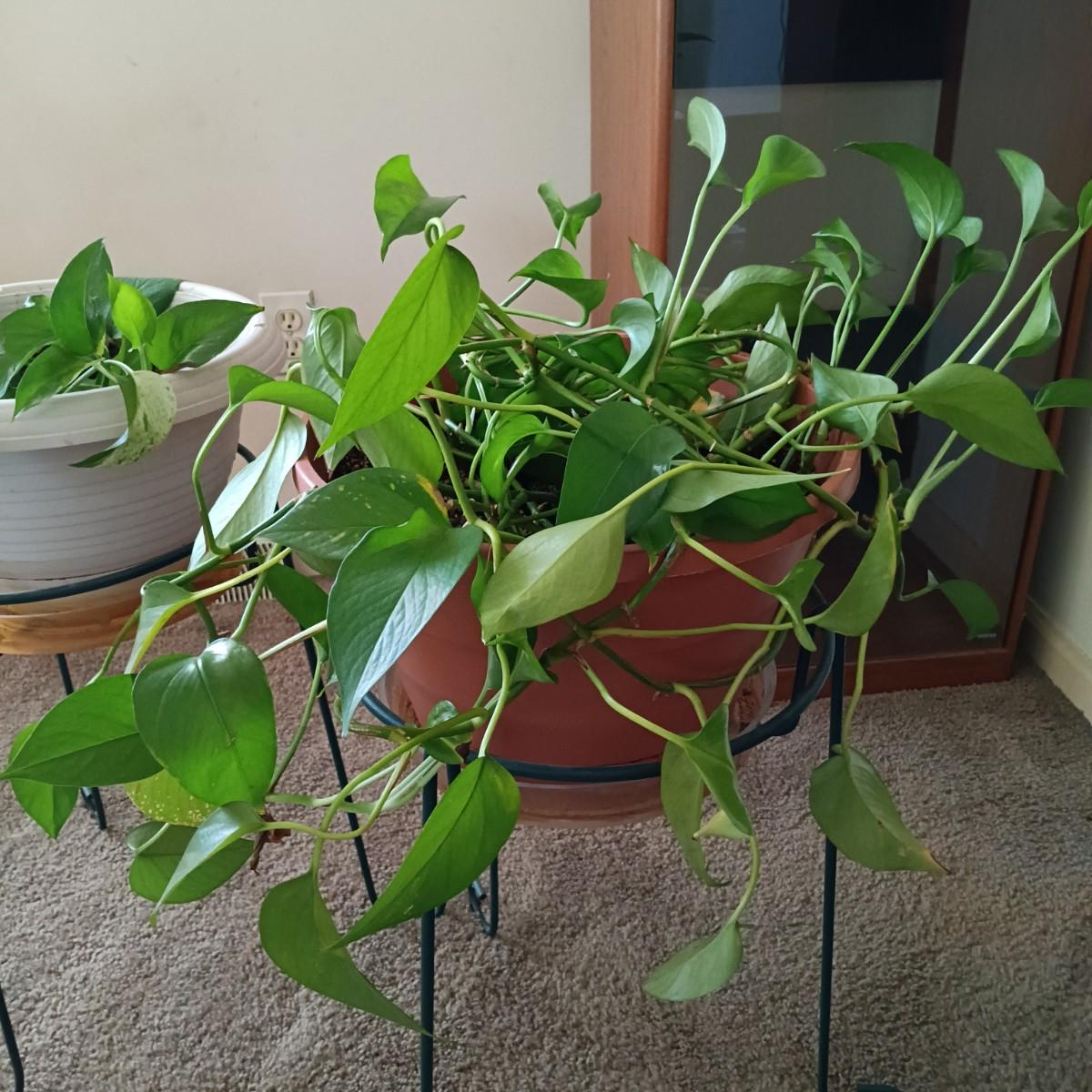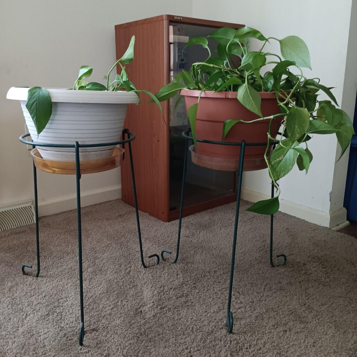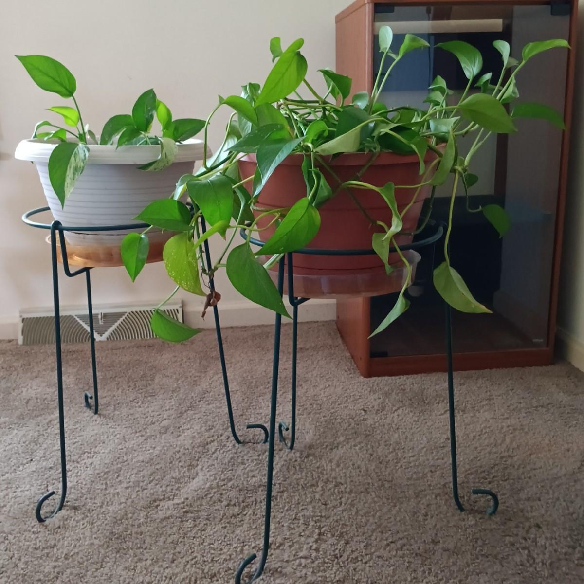 LOT 27L: Pair of Pothos Plants with Metal Stands