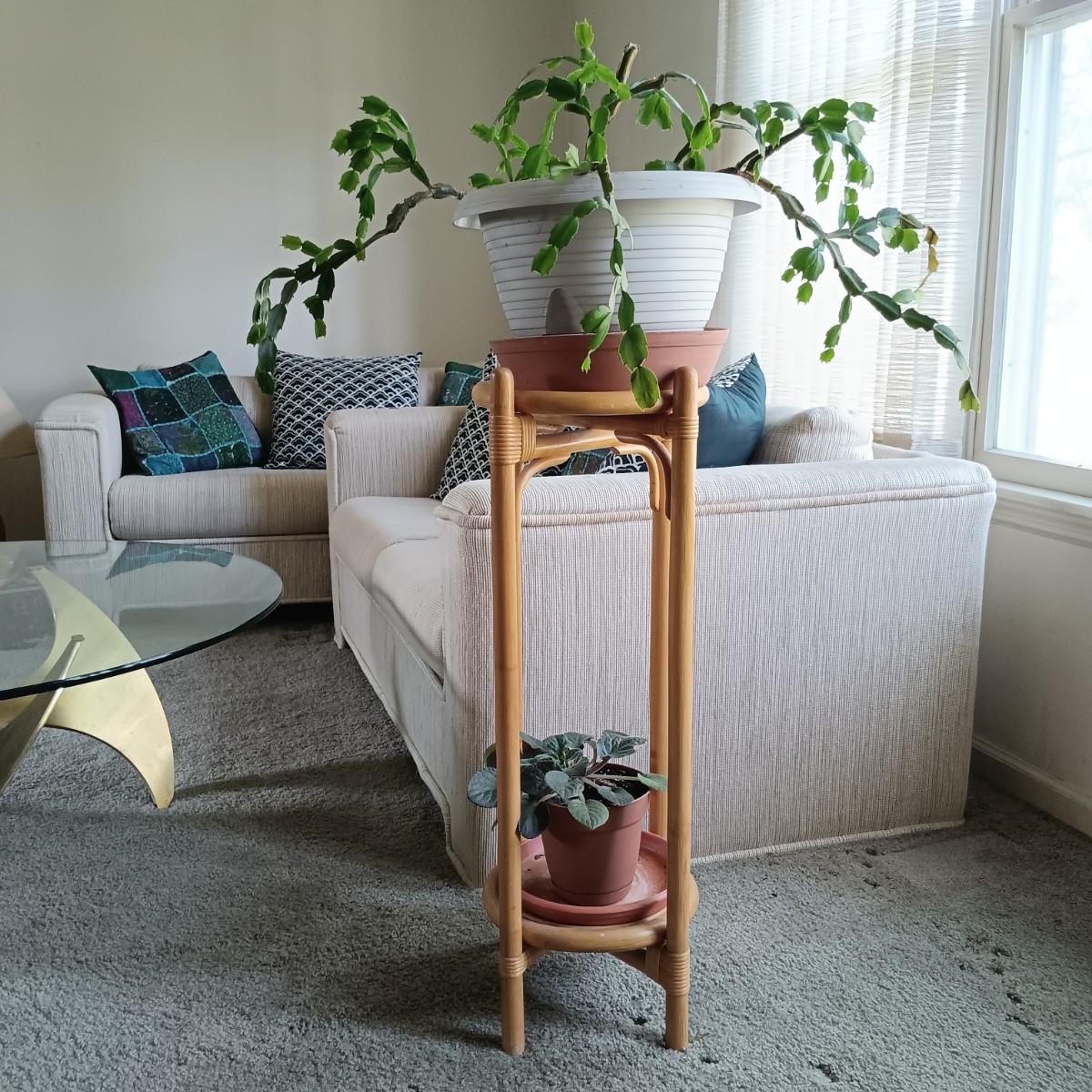 LOT 31L: Christmas Cactus and African Violet with Bamboo Stand