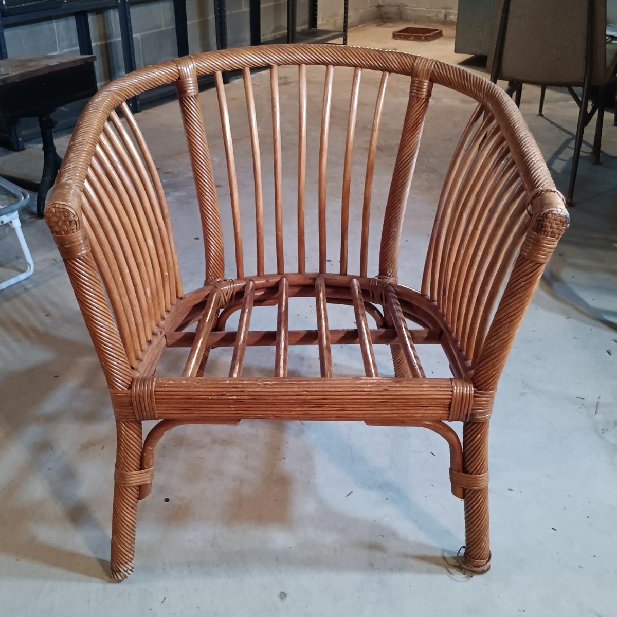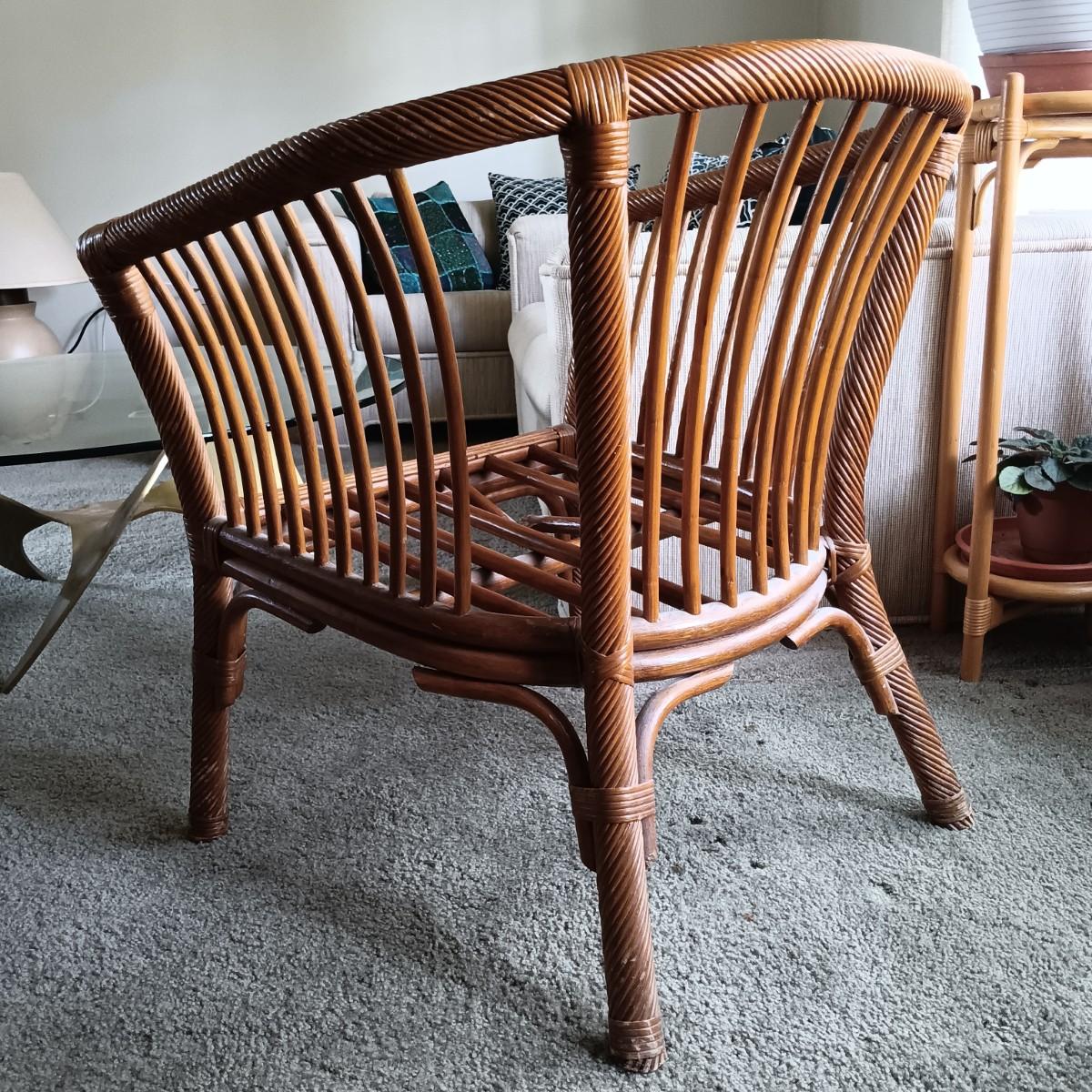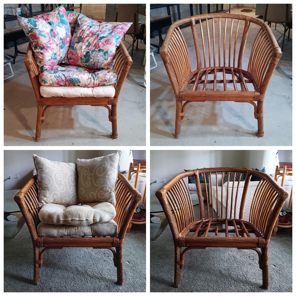 LOT 32L: Pair of Rattan Barrel Chairs with Cushions