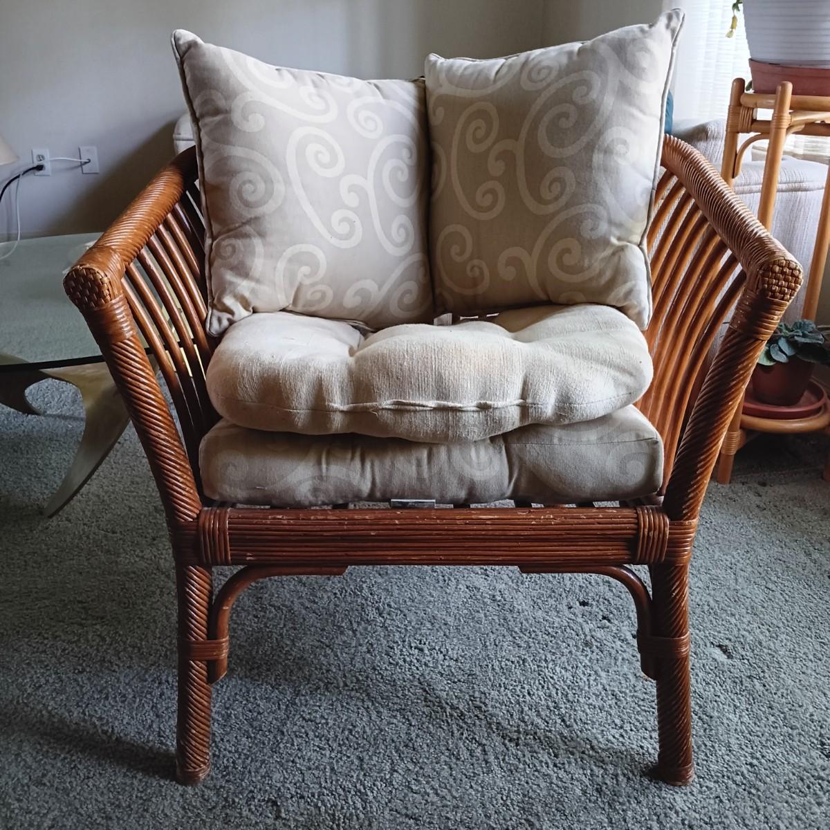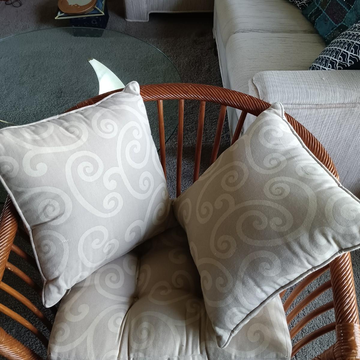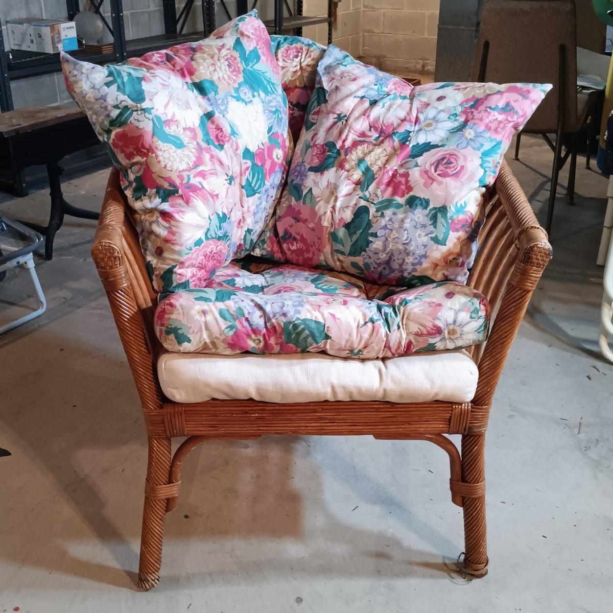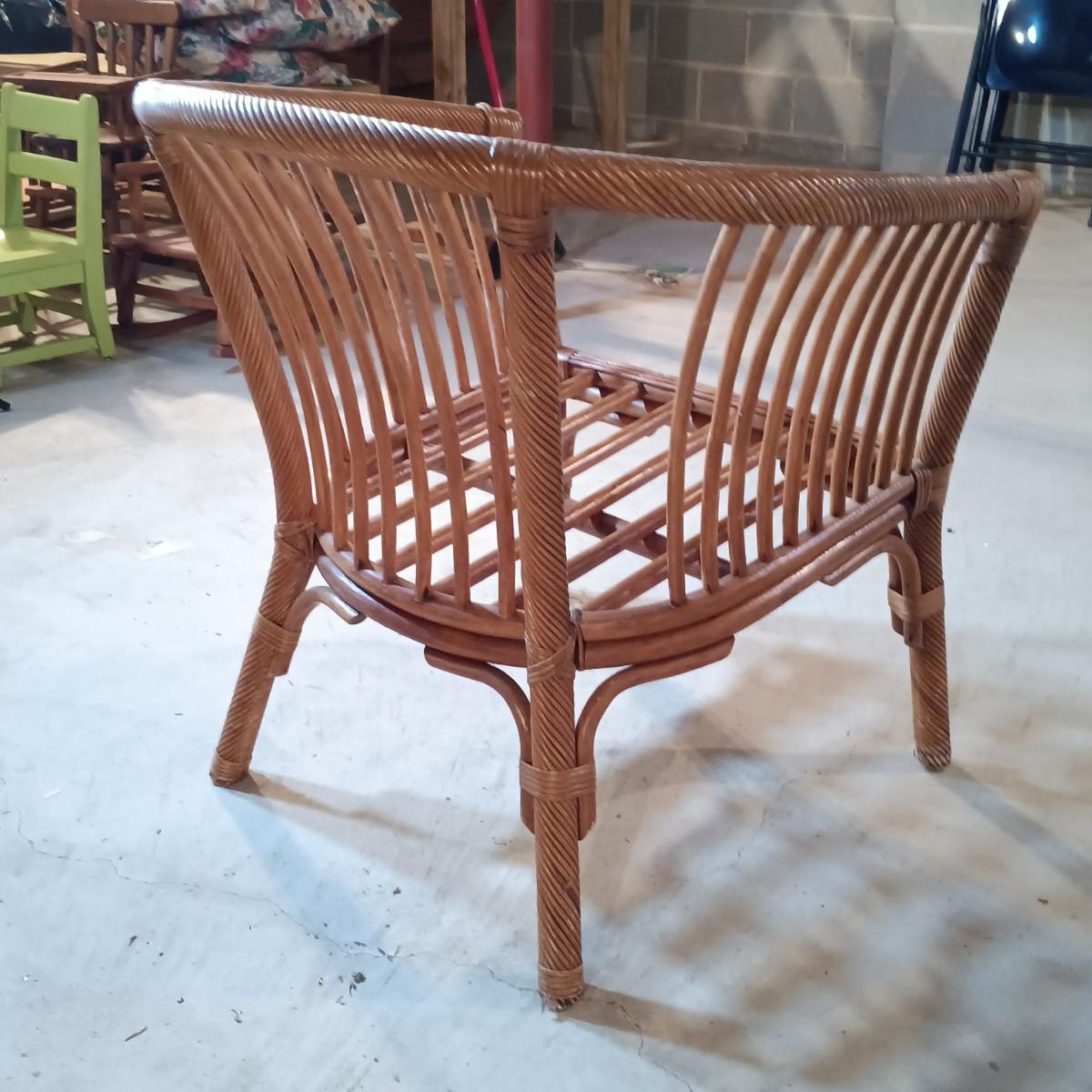 LOT 32L: Pair of Rattan Barrel Chairs with Cushions