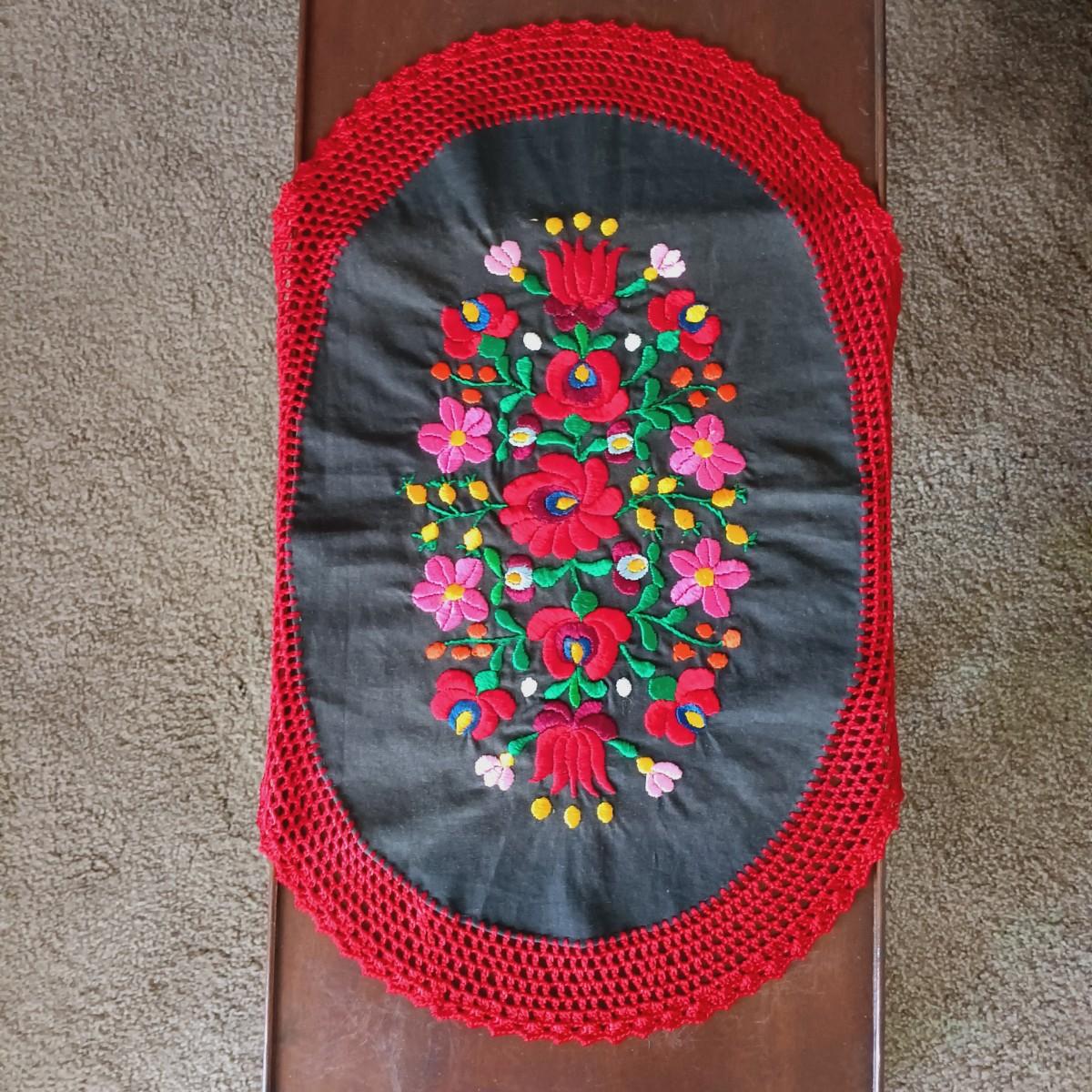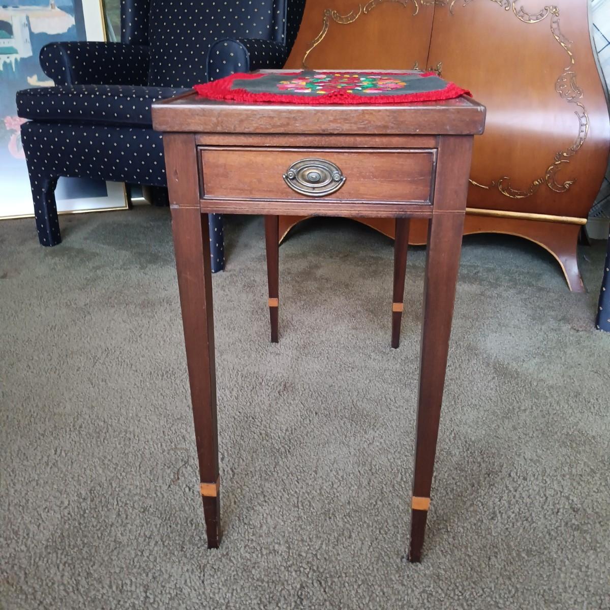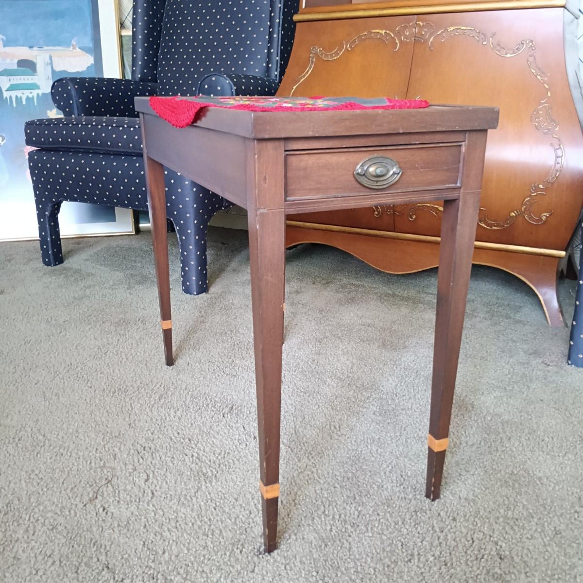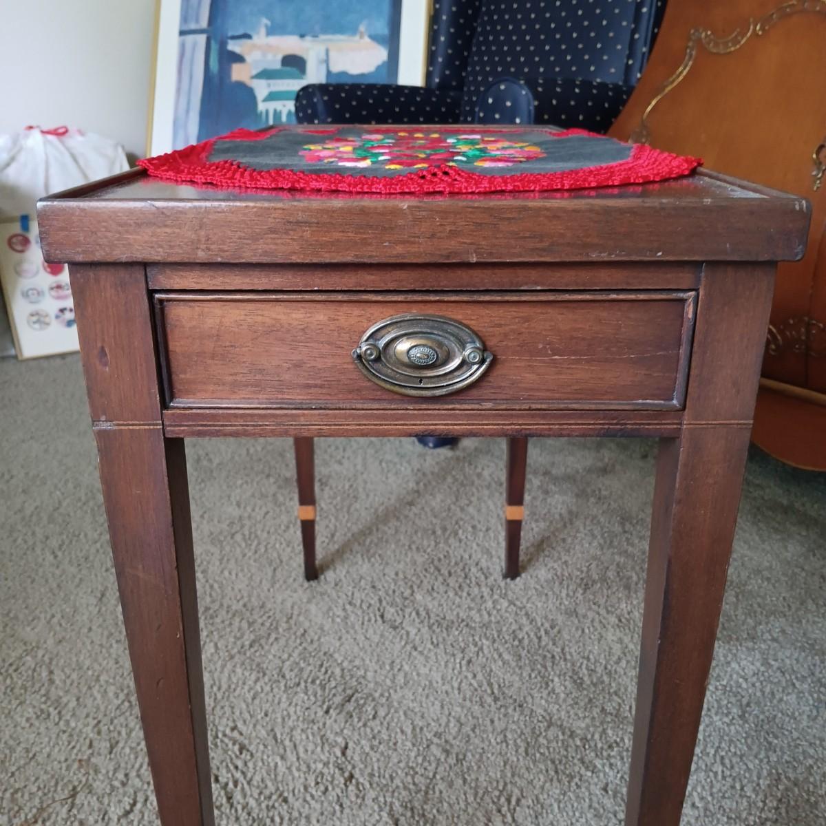 LOT 33L: Vintage Single-Drawer Tea Table with Embroidered Hungarian-Style Doily