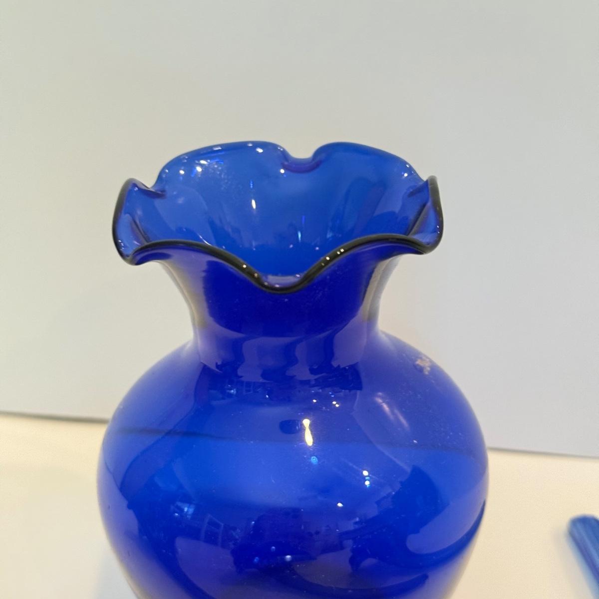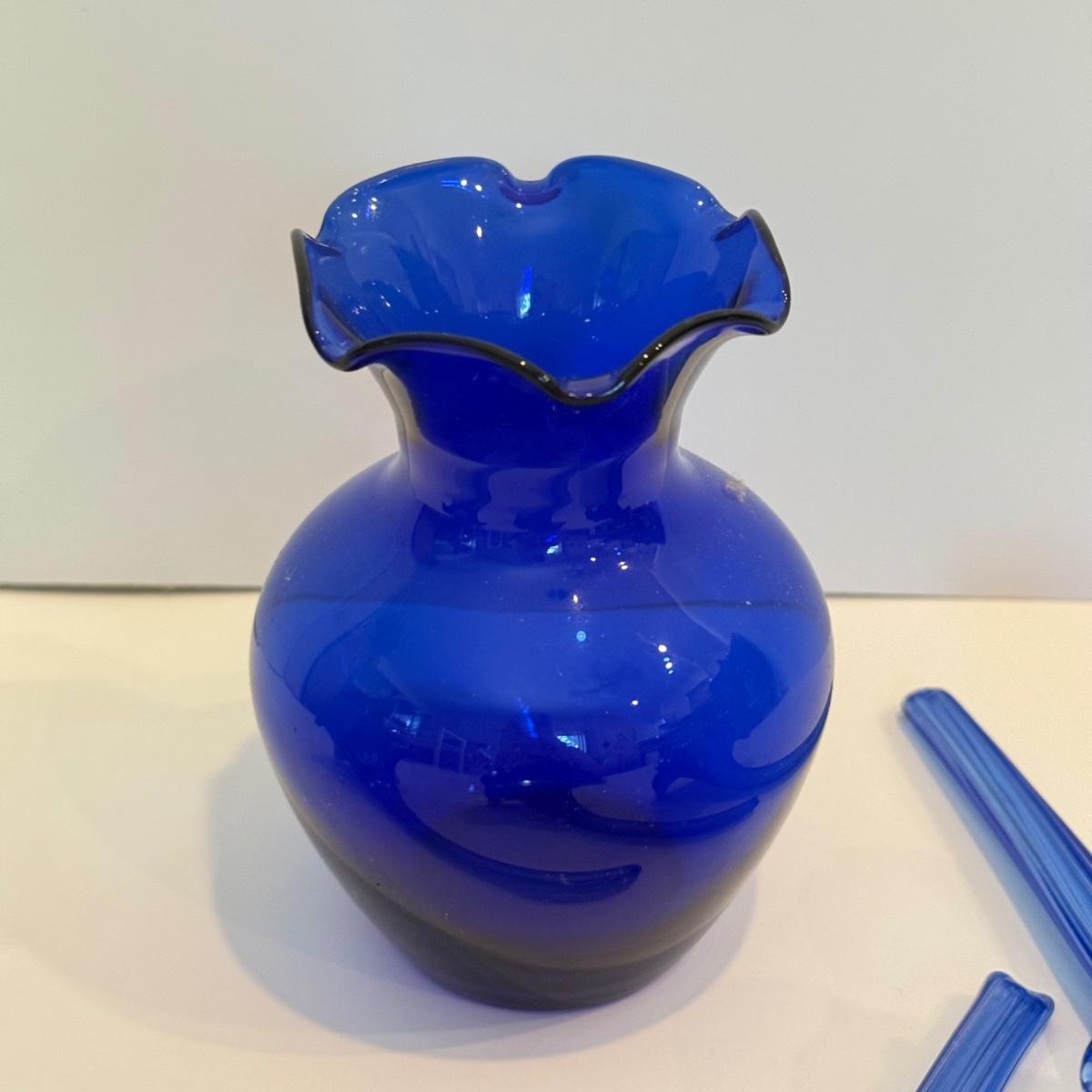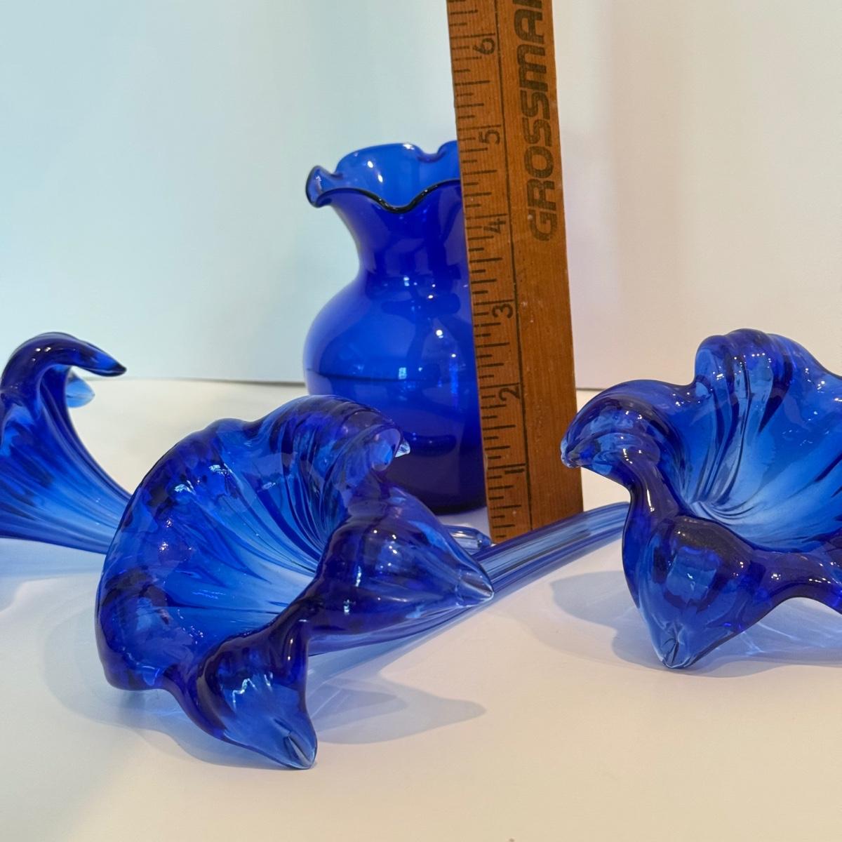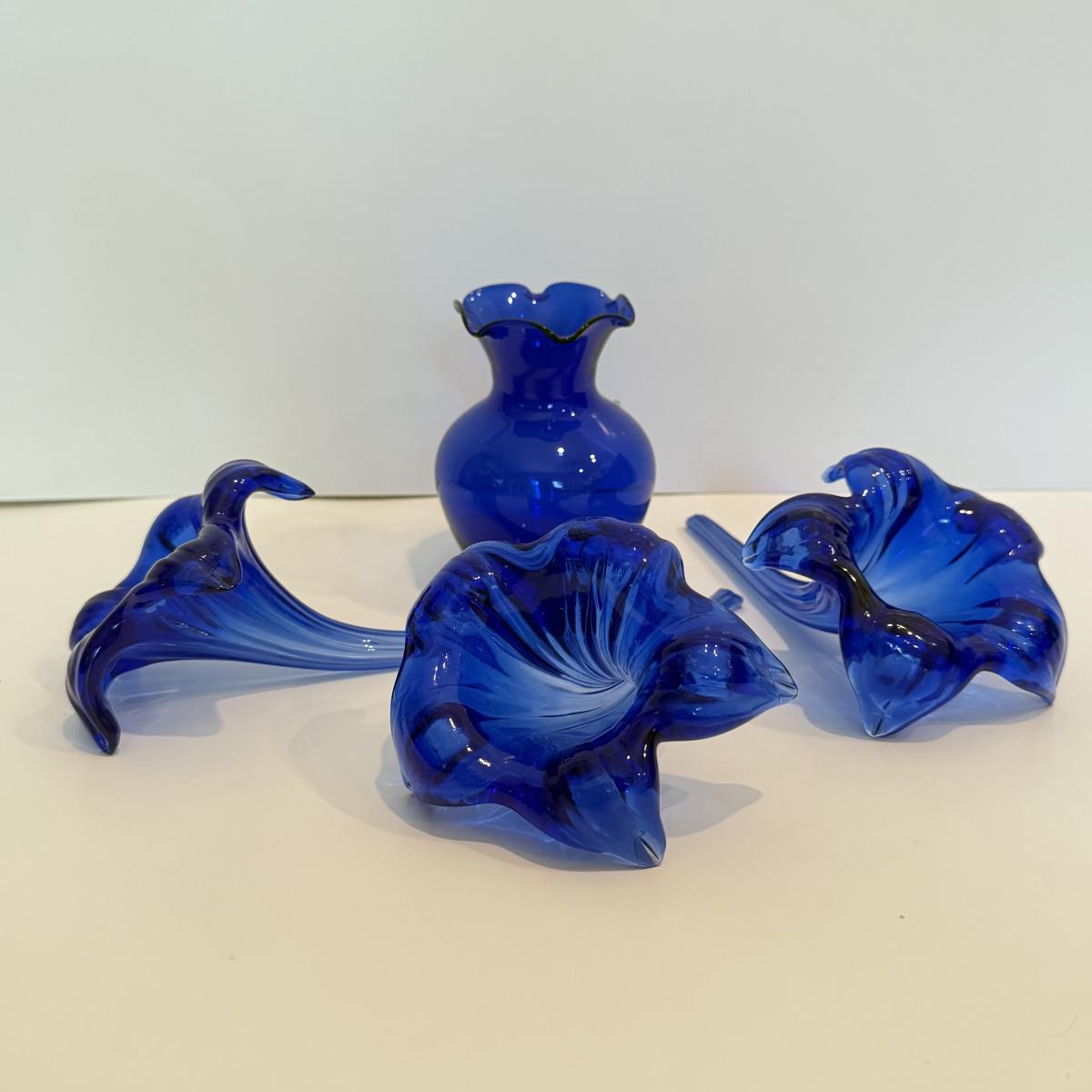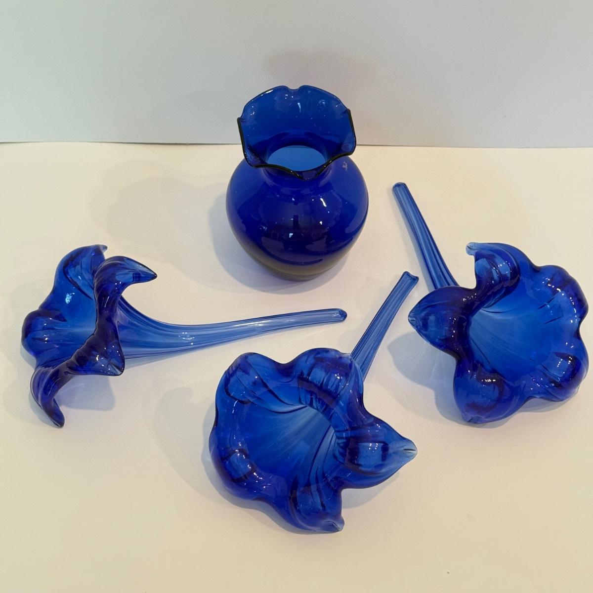 LOT 50F: Cobalt Blue Glass Flowers & Small Vase