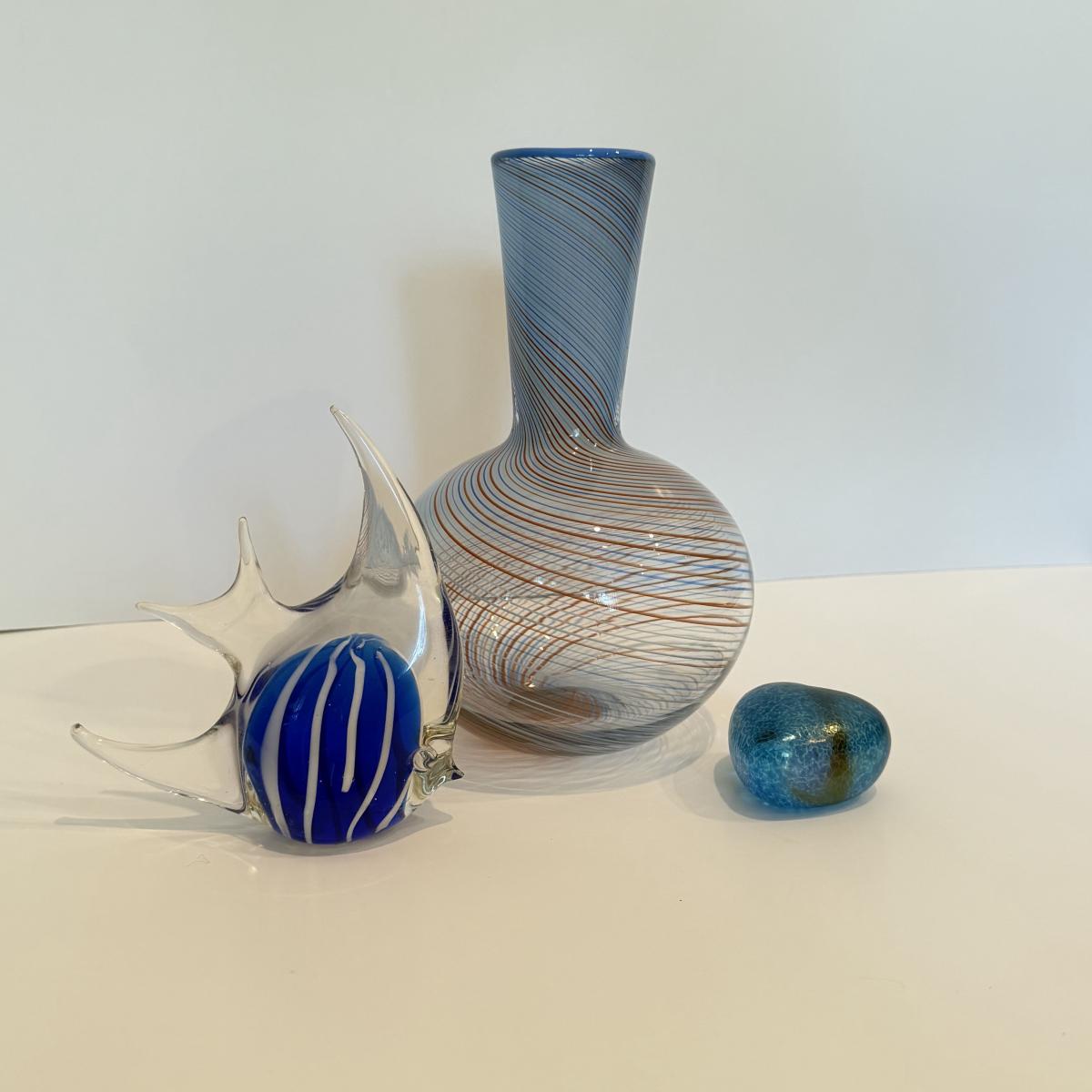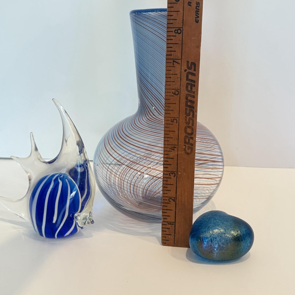 LOT 51F: Dansk International 1970s Mezza Filigrana Swirl Art Glass Bud Vase & Robert Held Art Glass Heart & Paperweight