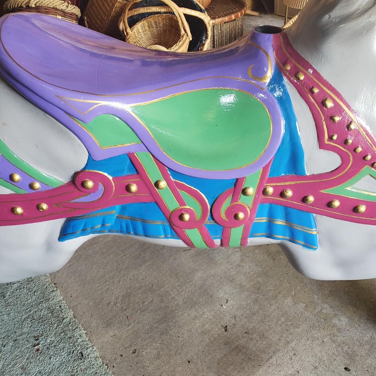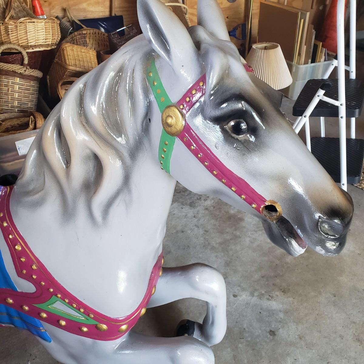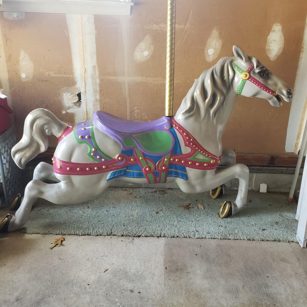 Horse 62" L 41" H, Pole 51" long, pole does not fit in hole. Please see all pictures as they are the best representation of the items. The pictures show condition, measurements if taken, and what is included in the lot. Due to the large amount that we photograph and the time frame, we are not always able to take measurements. All items unless noted, are pre-owned and have been used. If you purchased furniture, you must bring help. We do not allow one person to carry large furniture out on their own. Bring help, tools and a truck for the safety of our client’s homes, and your personal safety. Any damages that result to the property including walls, and floors due to moving of the furniture will be charged to the buyer. Company policy. Thank you.