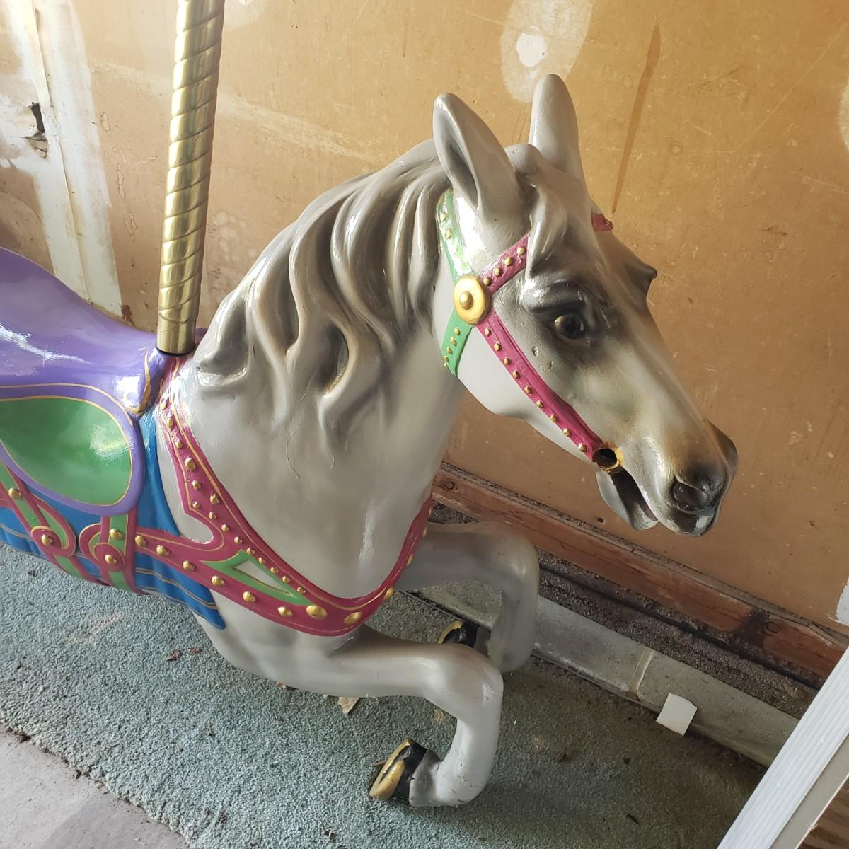 LOT 61G: Vintage Carousel Horse with Brass Pole