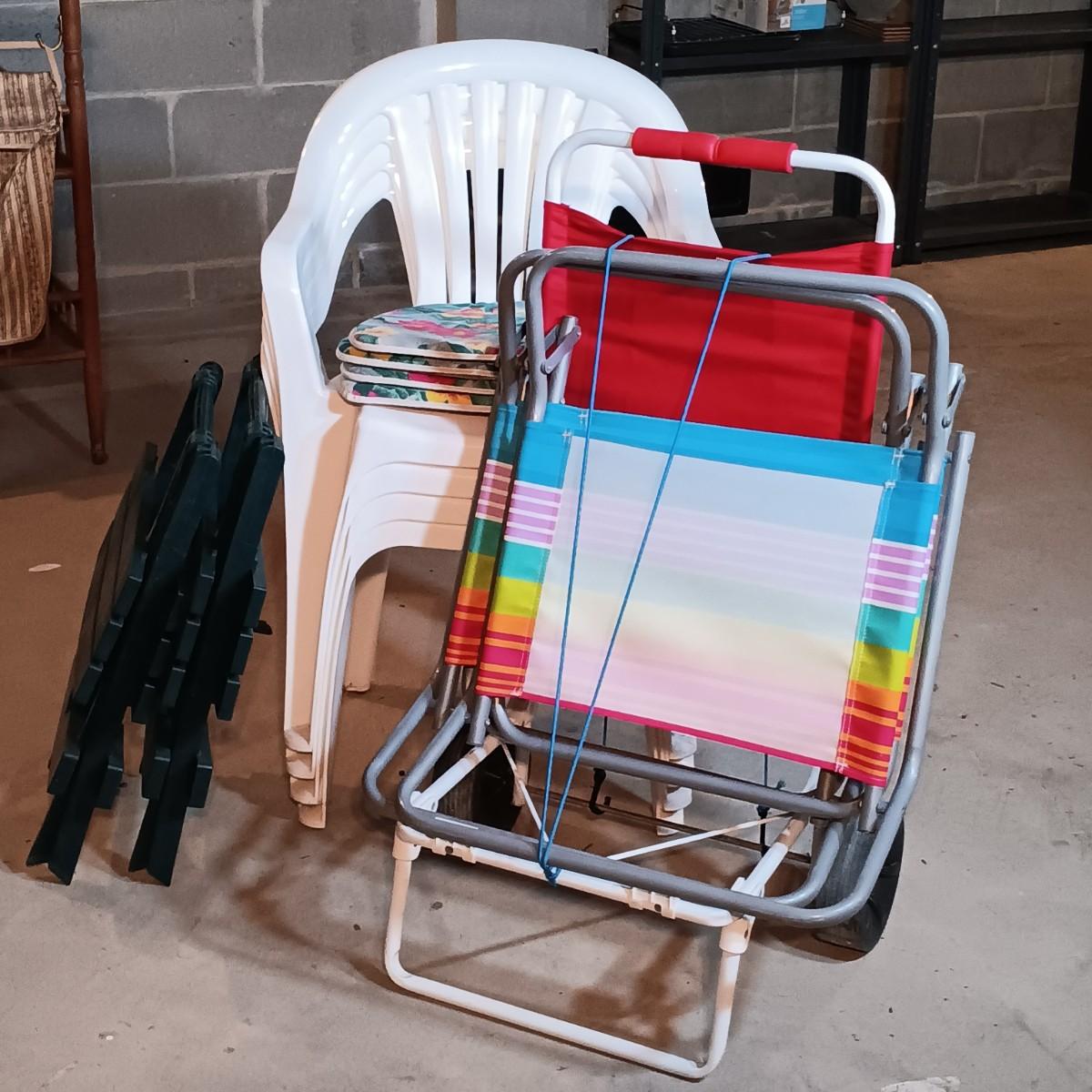 LOT 82B: Rio Beach Folding Chairs with Trolley, Plastic Folding Tables & More