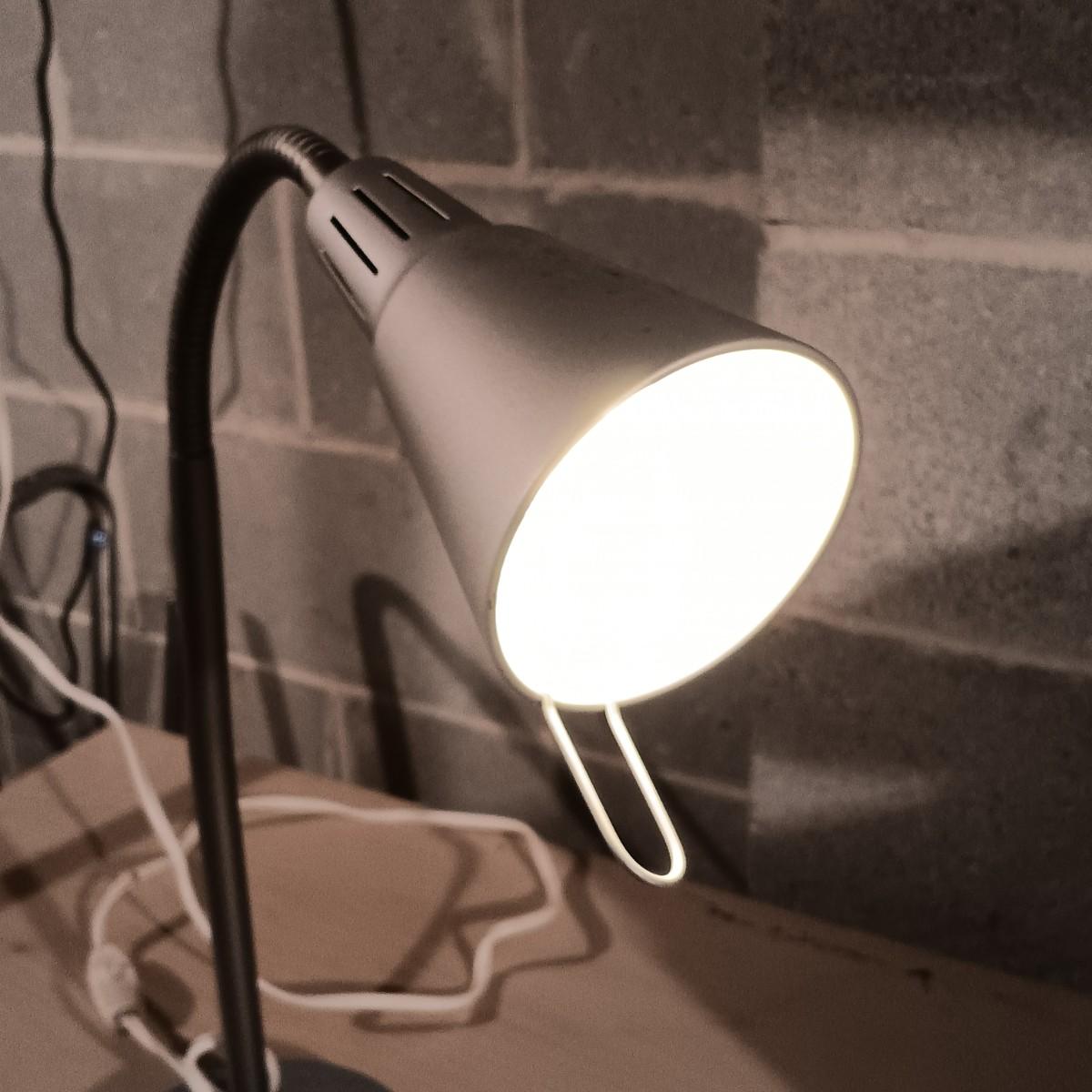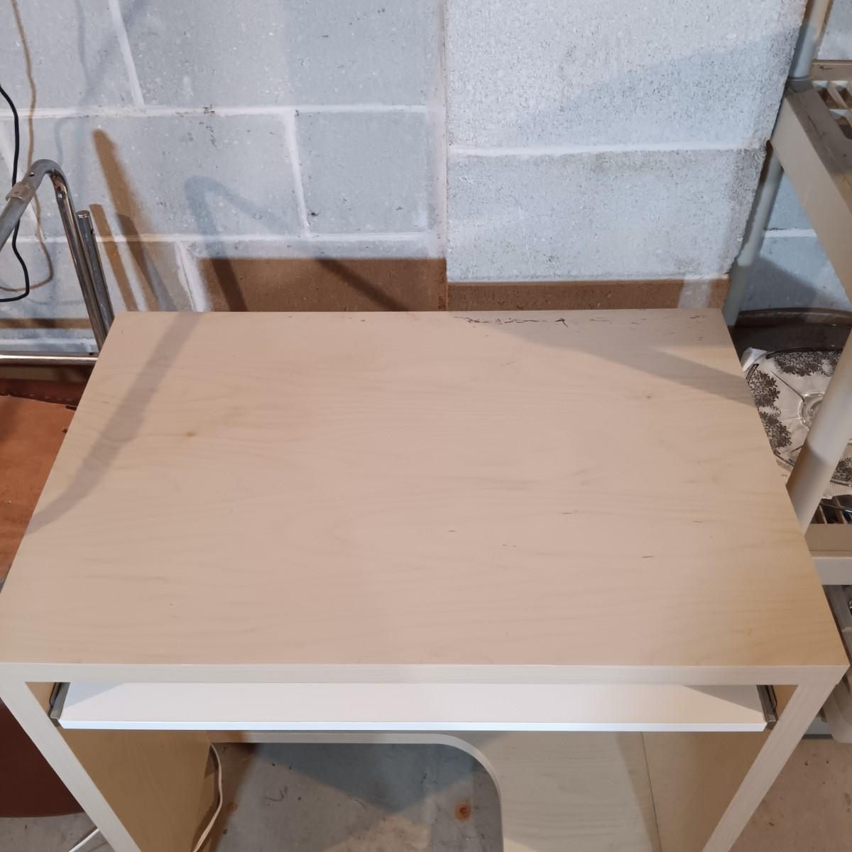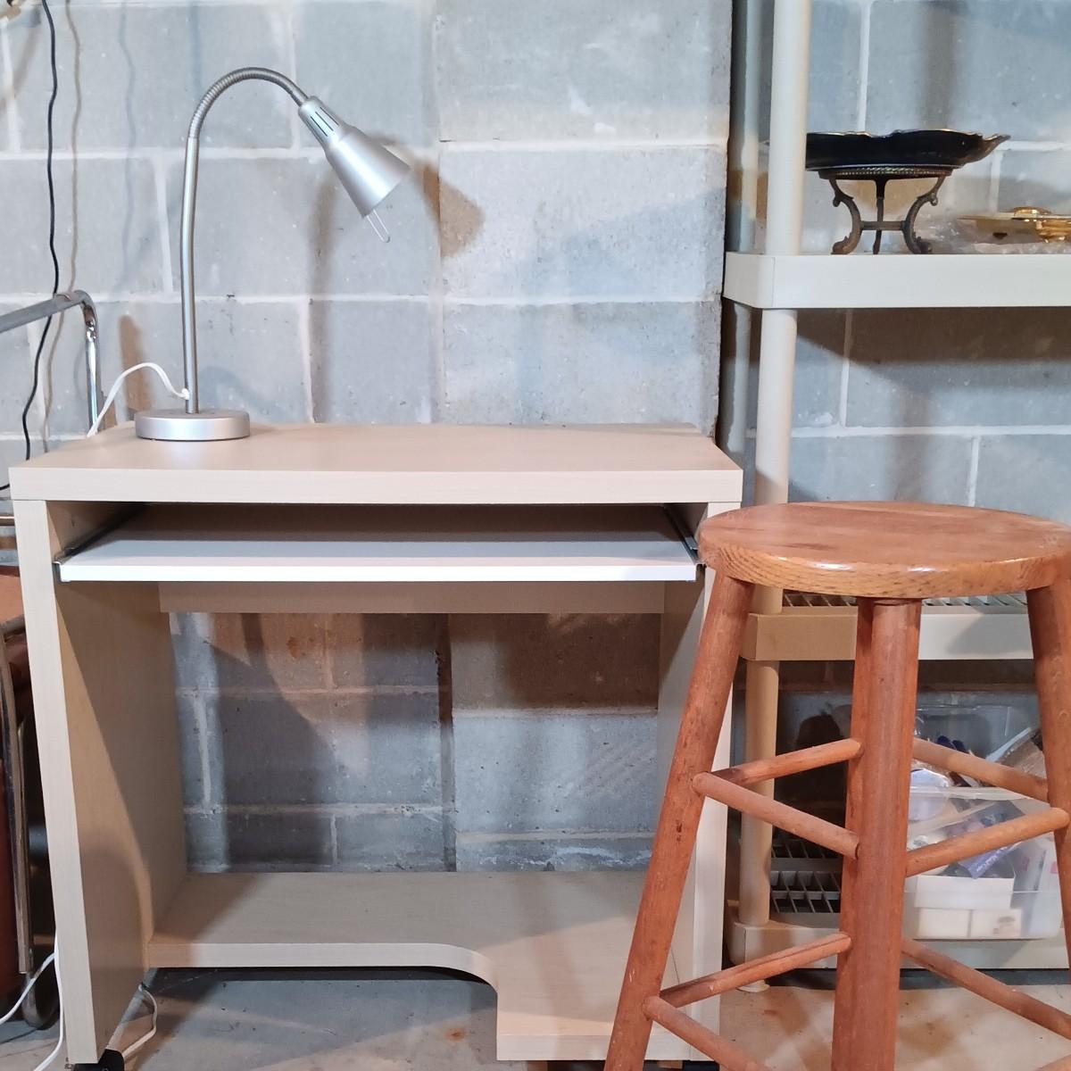 LOT 88B: Ikea Desk and Lamp with Wood Stool