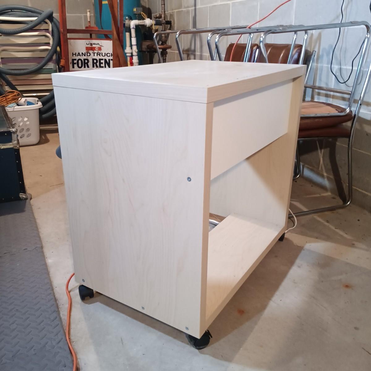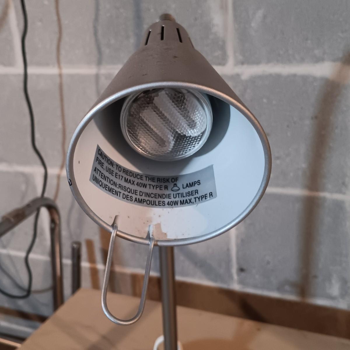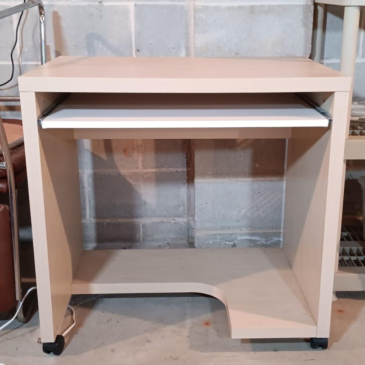 LOT 88B: Ikea Desk and Lamp with Wood Stool