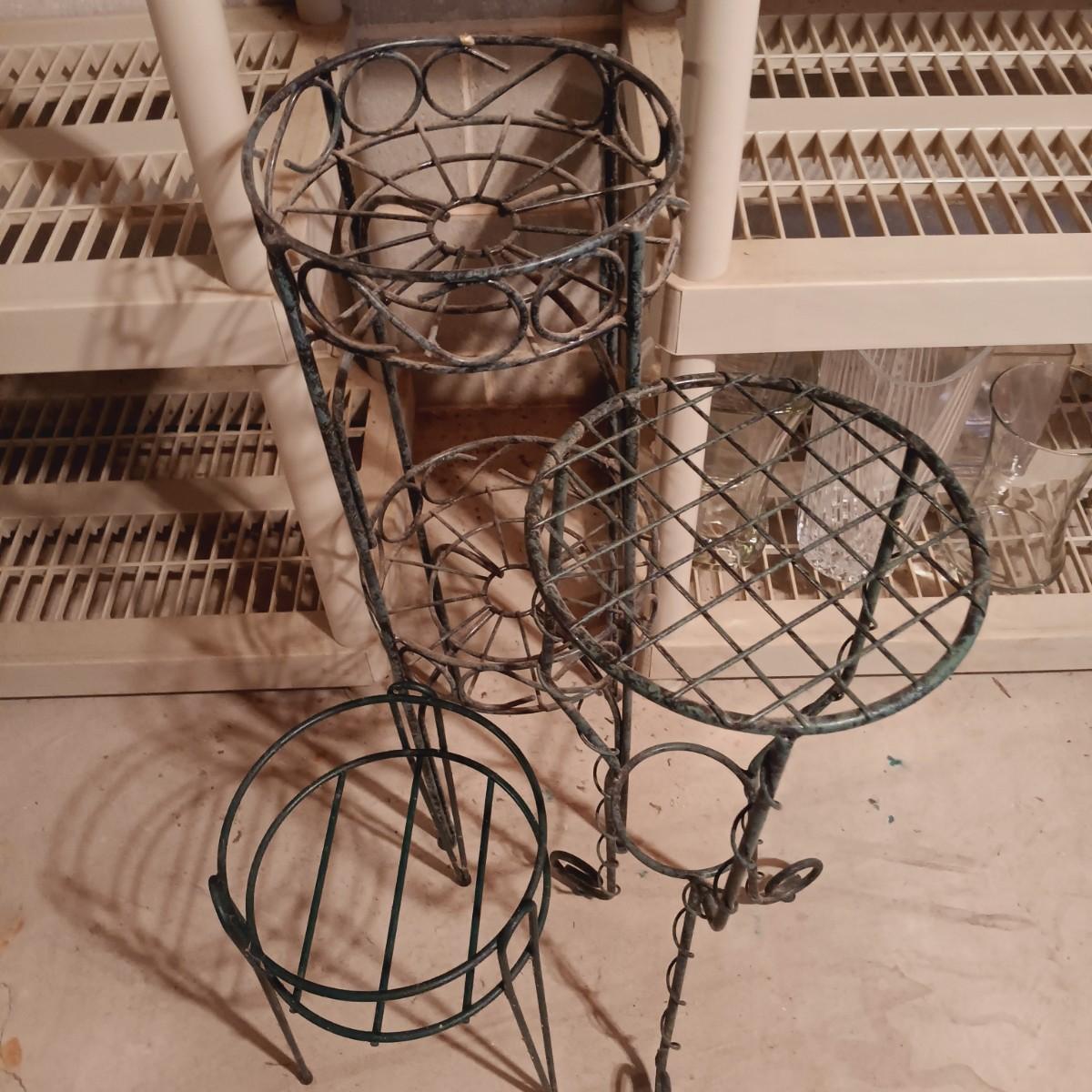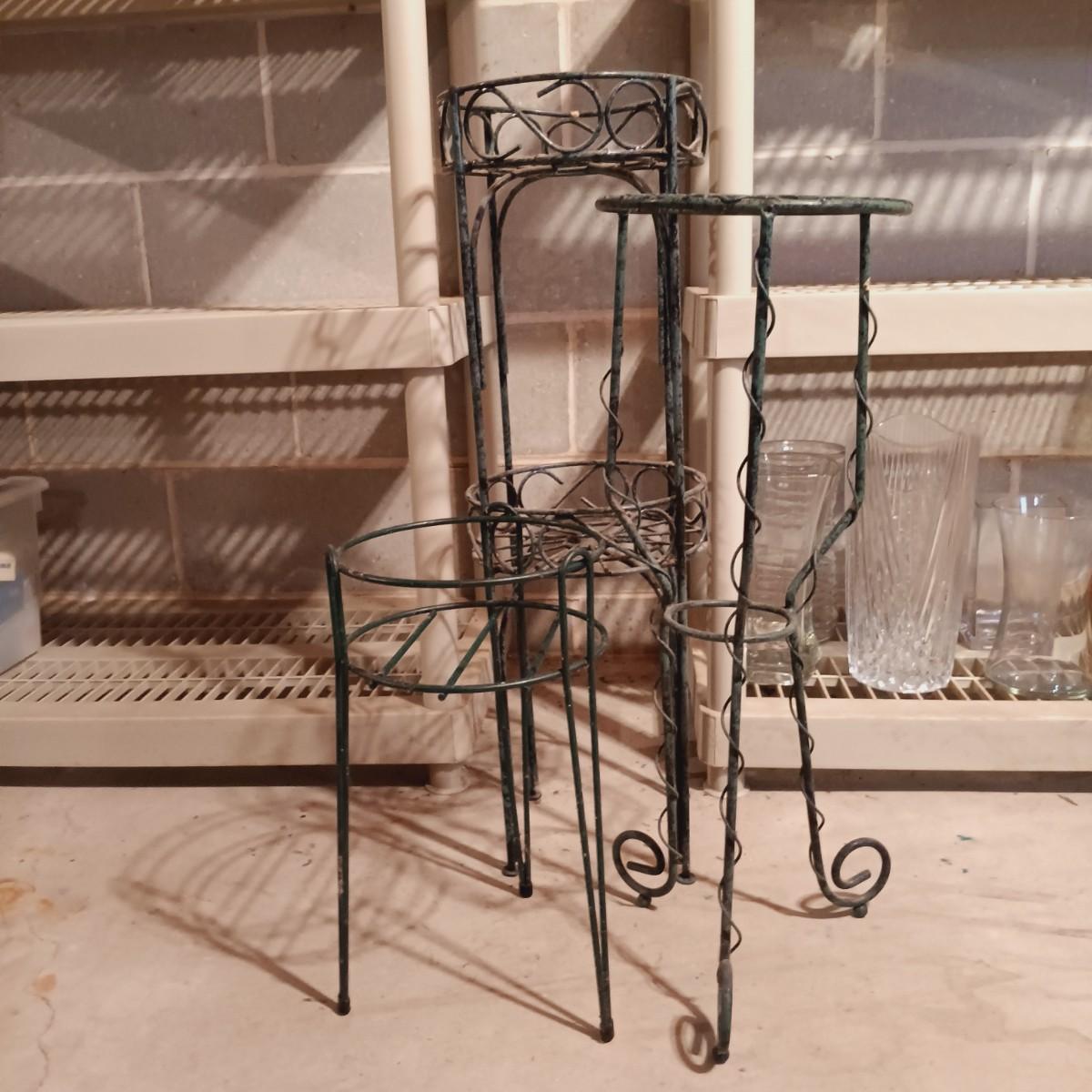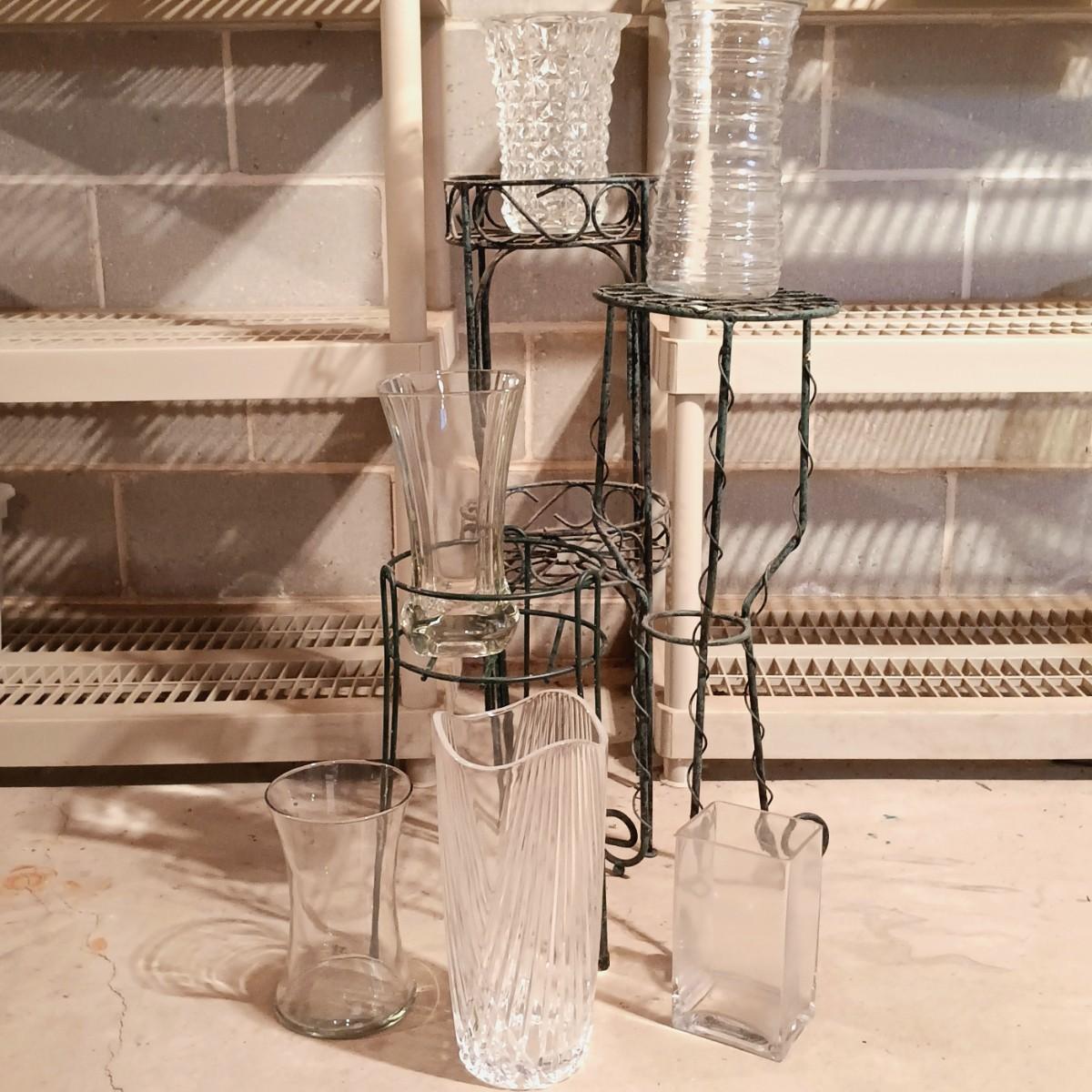 LOT 91B: Metal Plant Stands with Crystal and Glass Vases