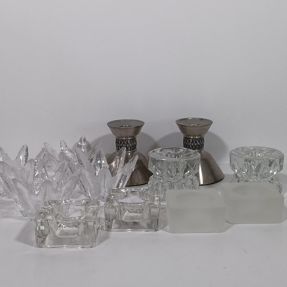 LOT 99L: Collection of Glass and Pewter Candle Holders