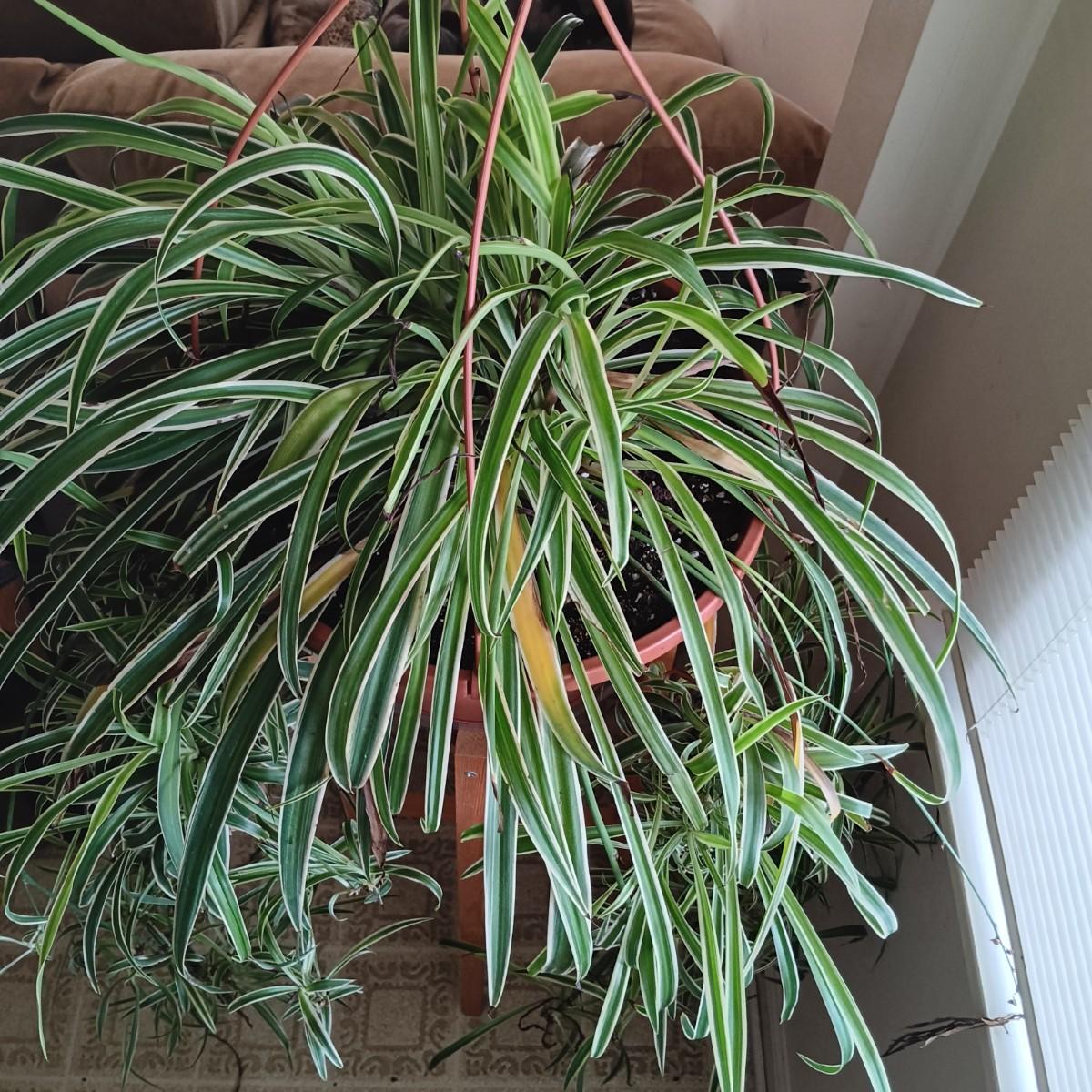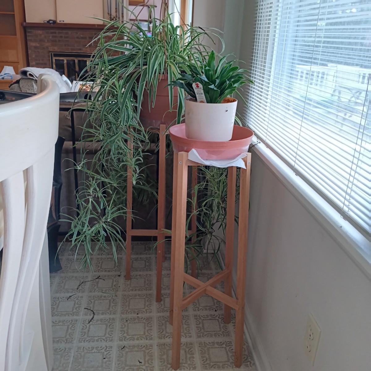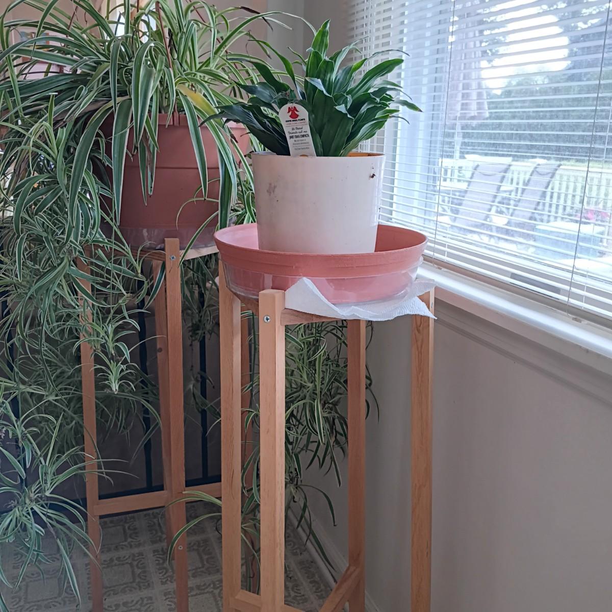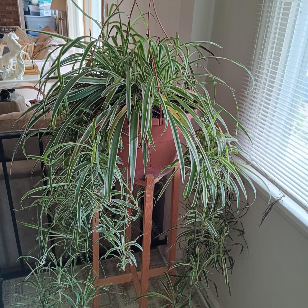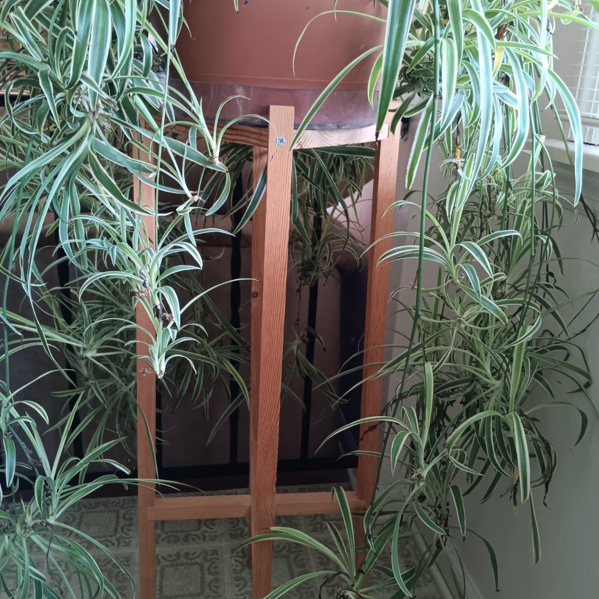 LOT 100K: Large Spider Plant with Dracaena House Plant and Wooden Stands
