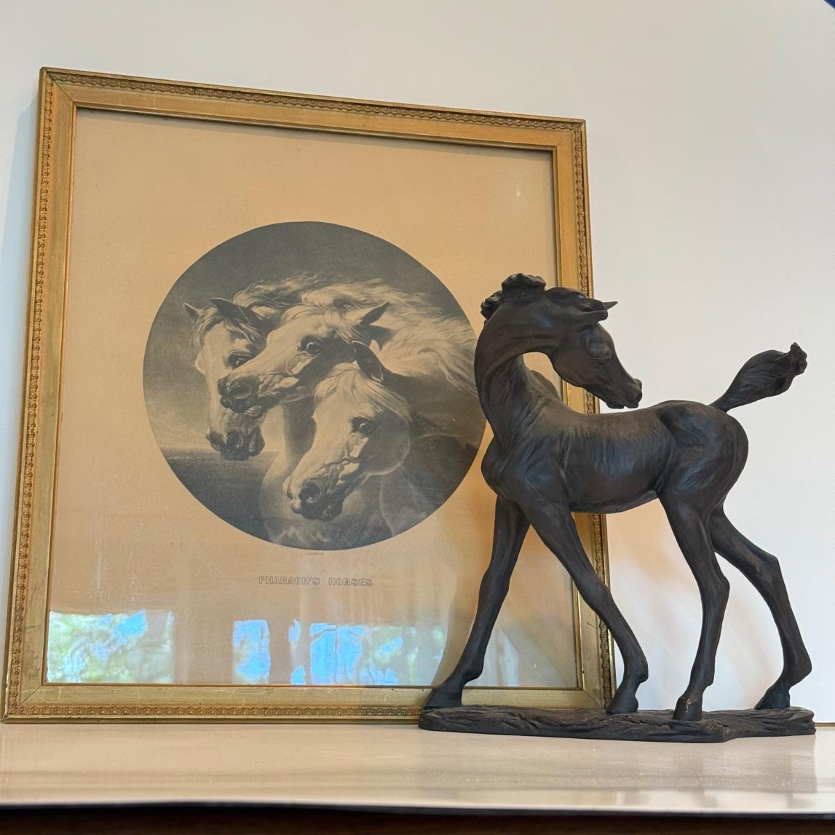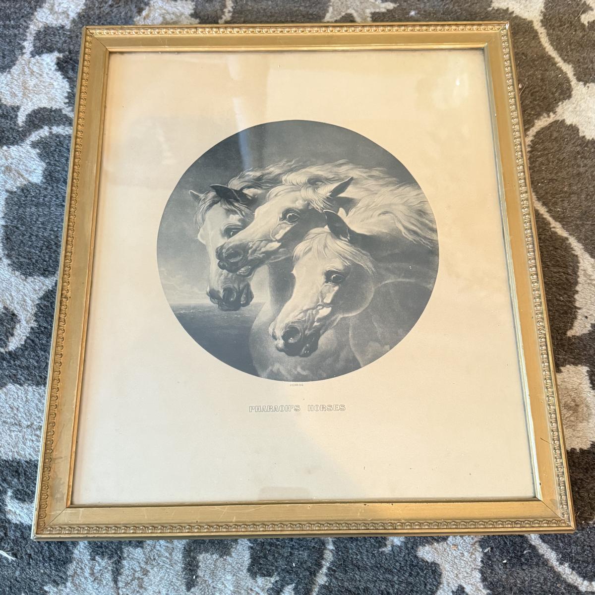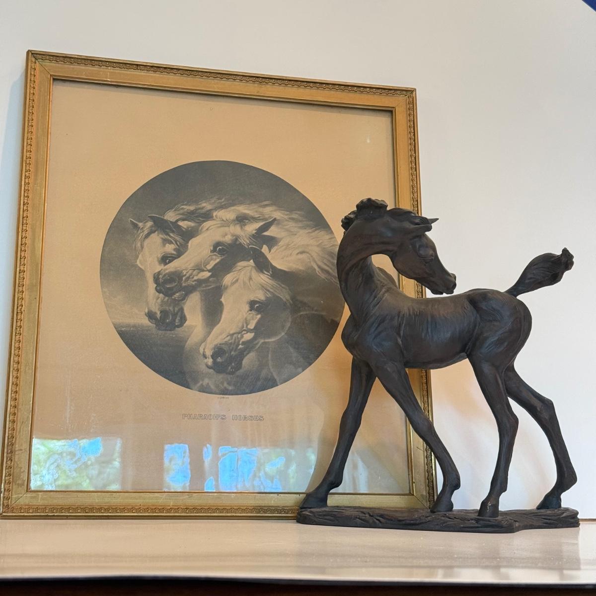 LOT 102F: Vintage Pharaoh's Horses Framed Poster & Horse Statue