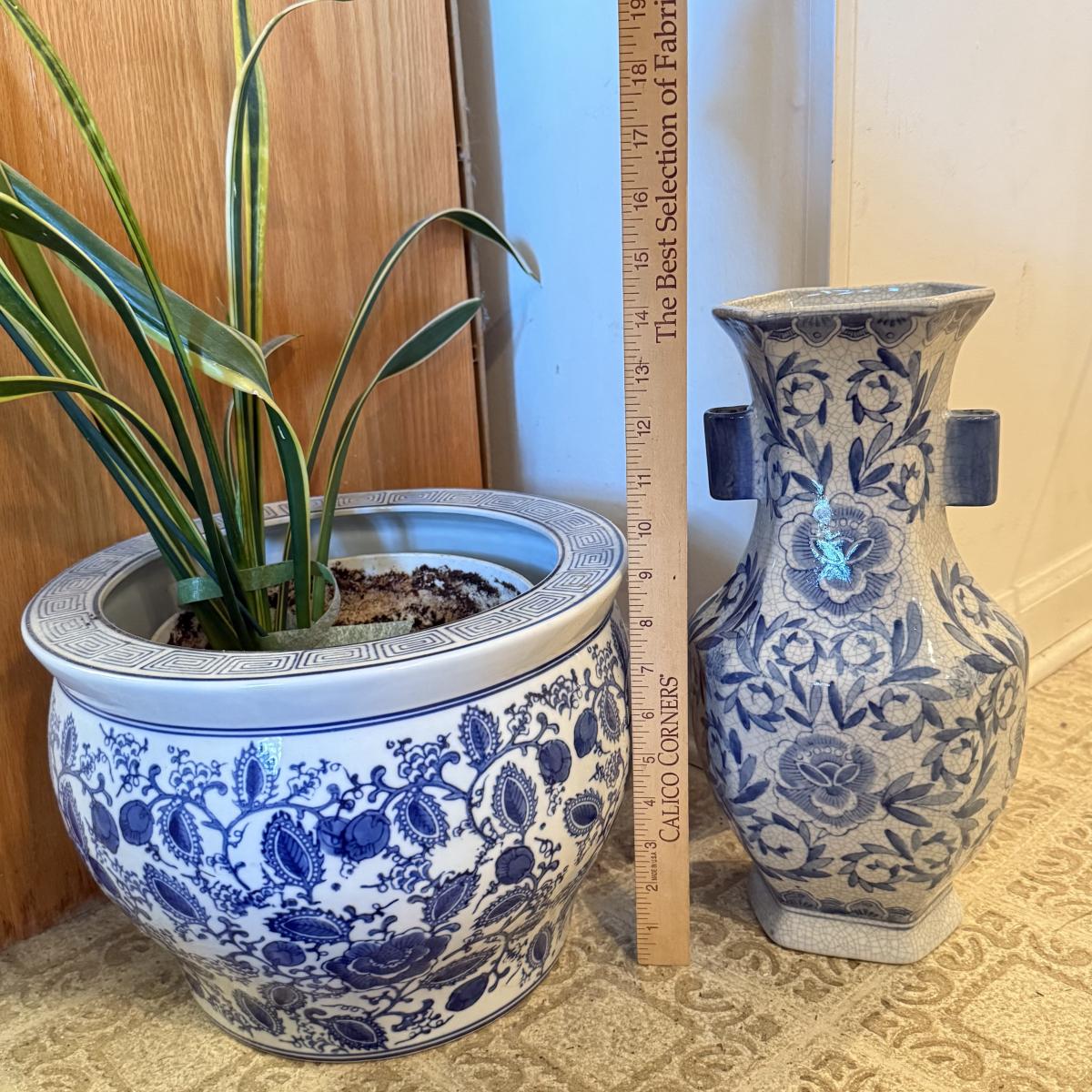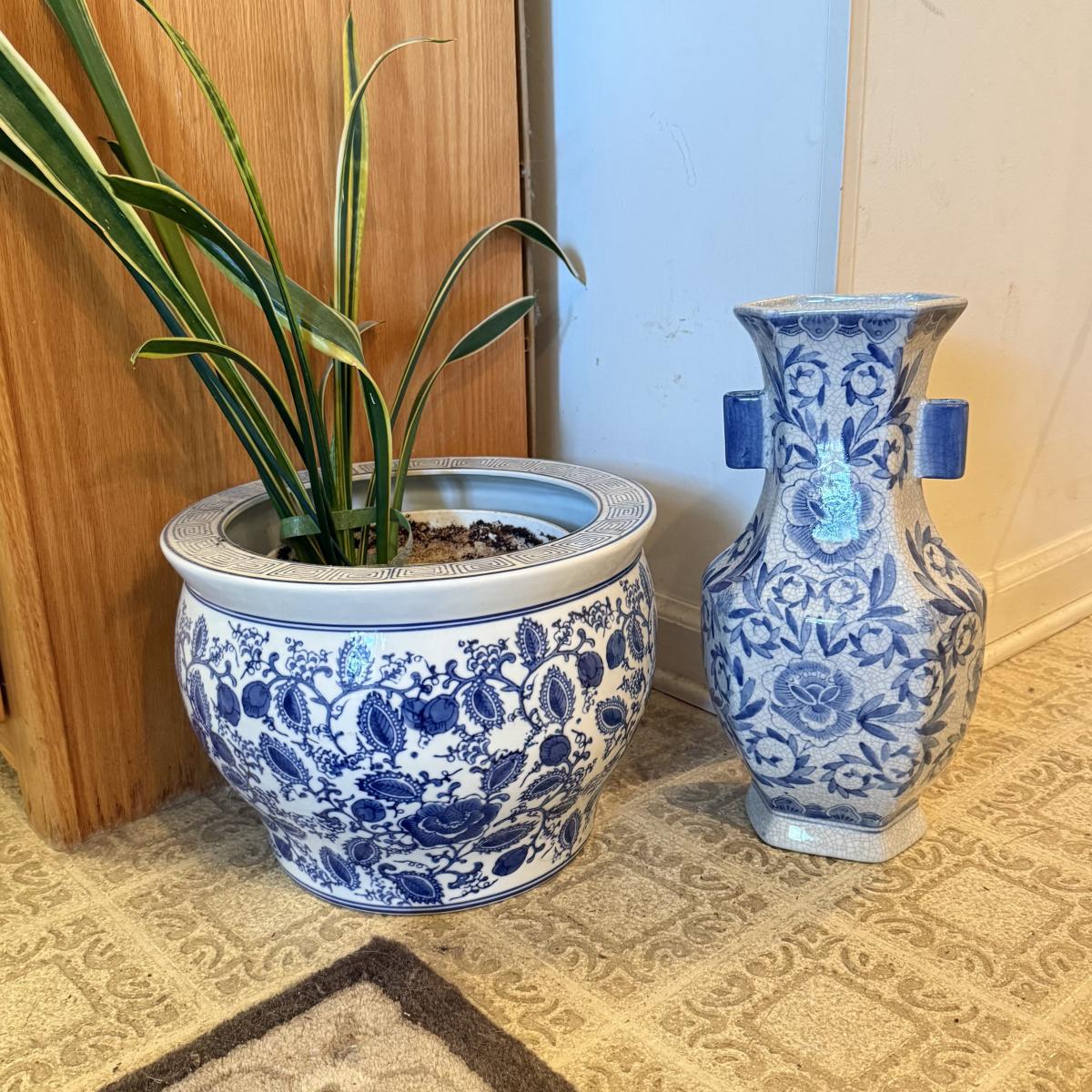 LOT 104F: Snake Plant w/ Blue & White Pottery