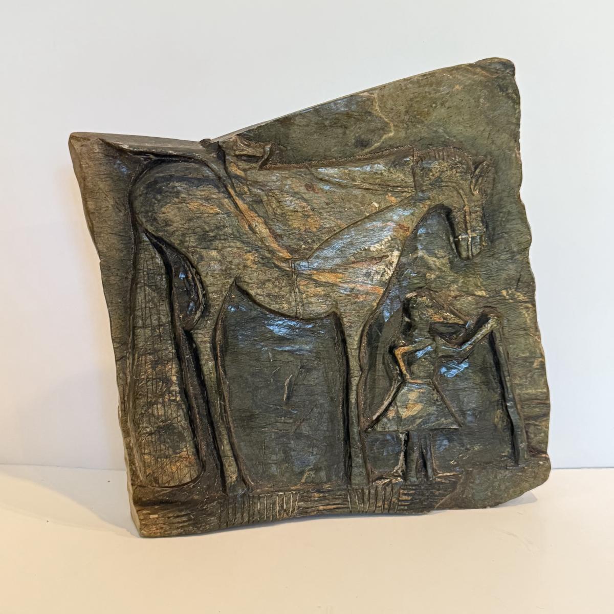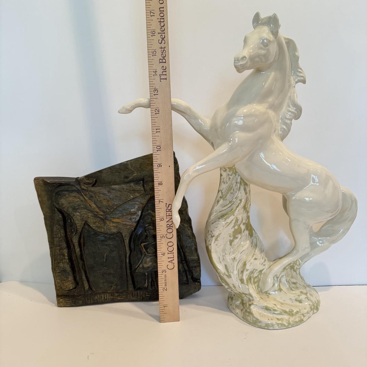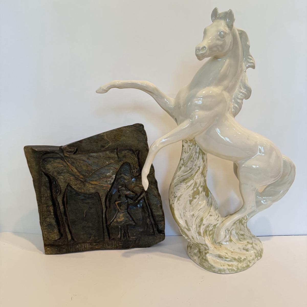 LOT 105F: Porcelain Horse Statue & Stone Slab Carving