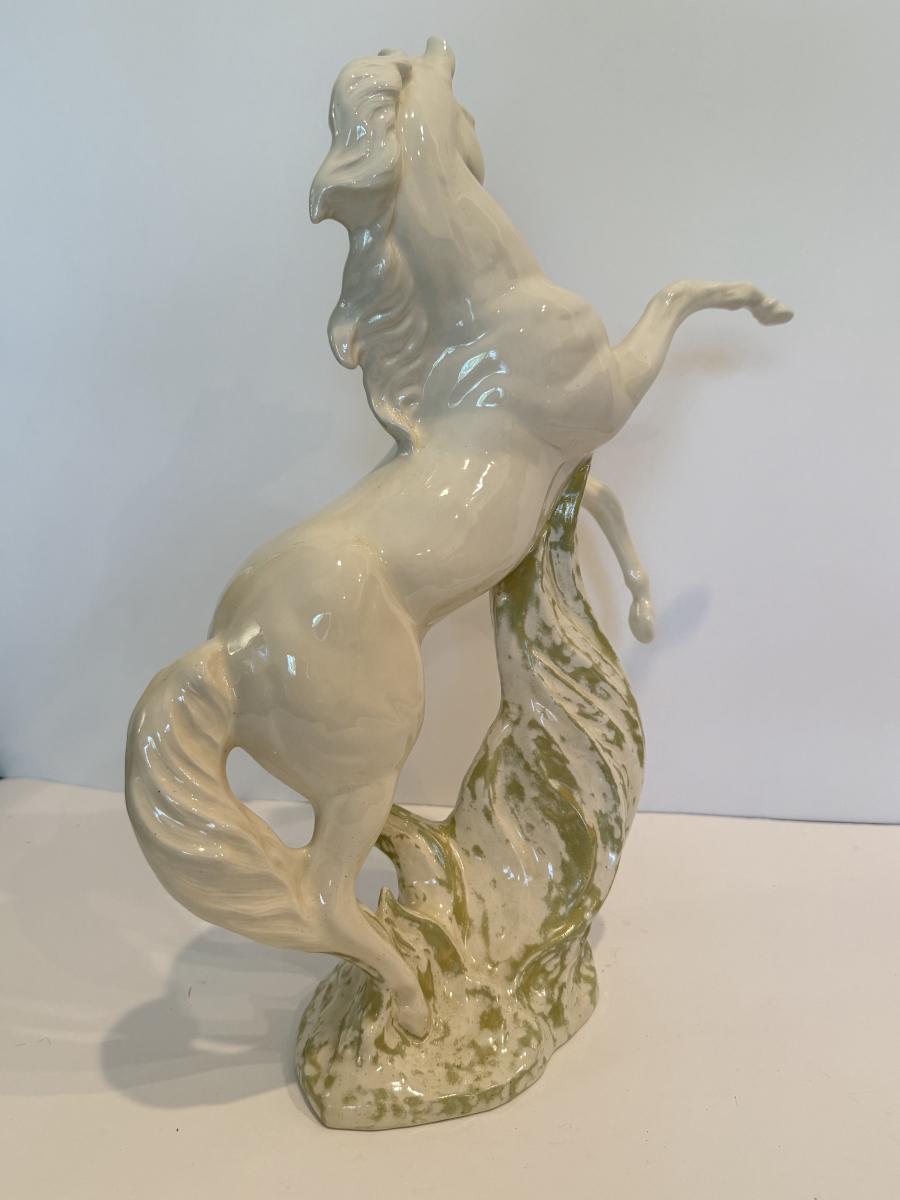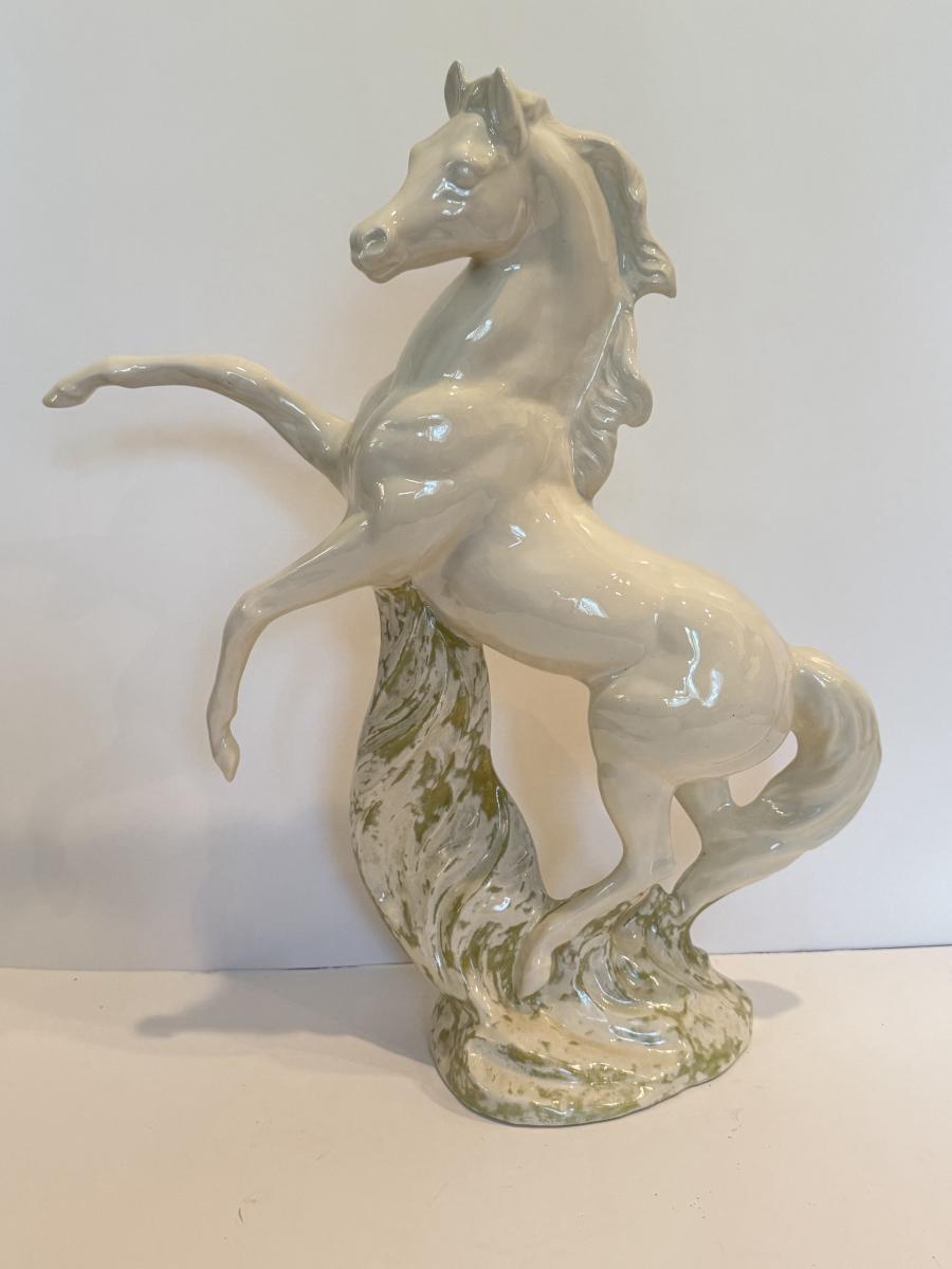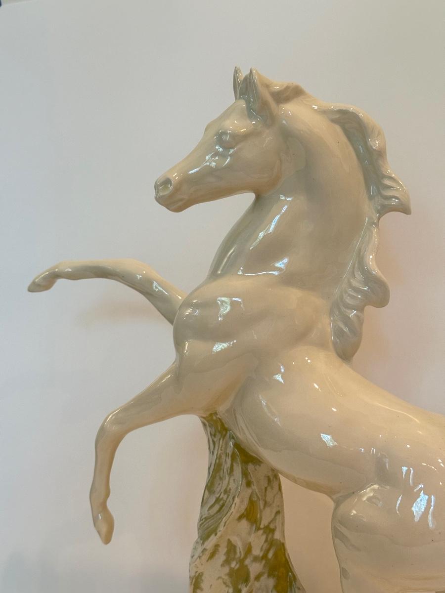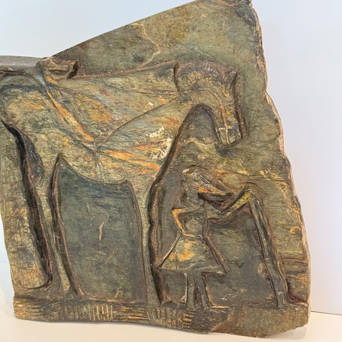 LOT 105F: Porcelain Horse Statue & Stone Slab Carving