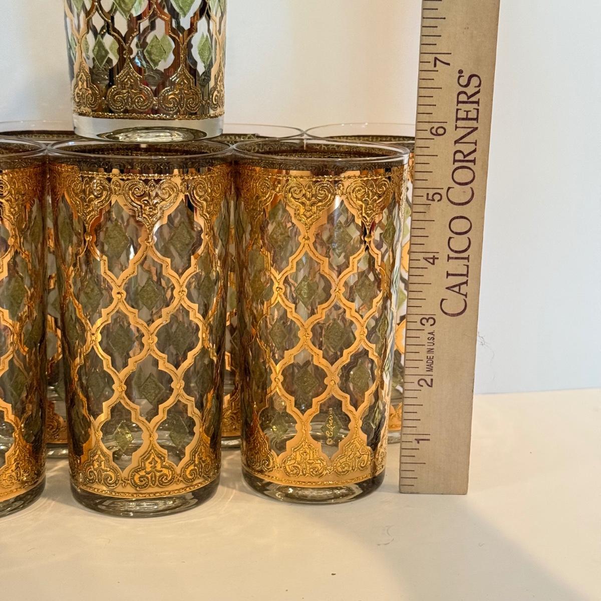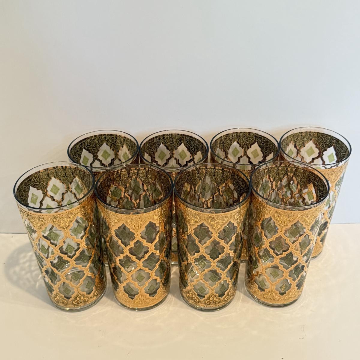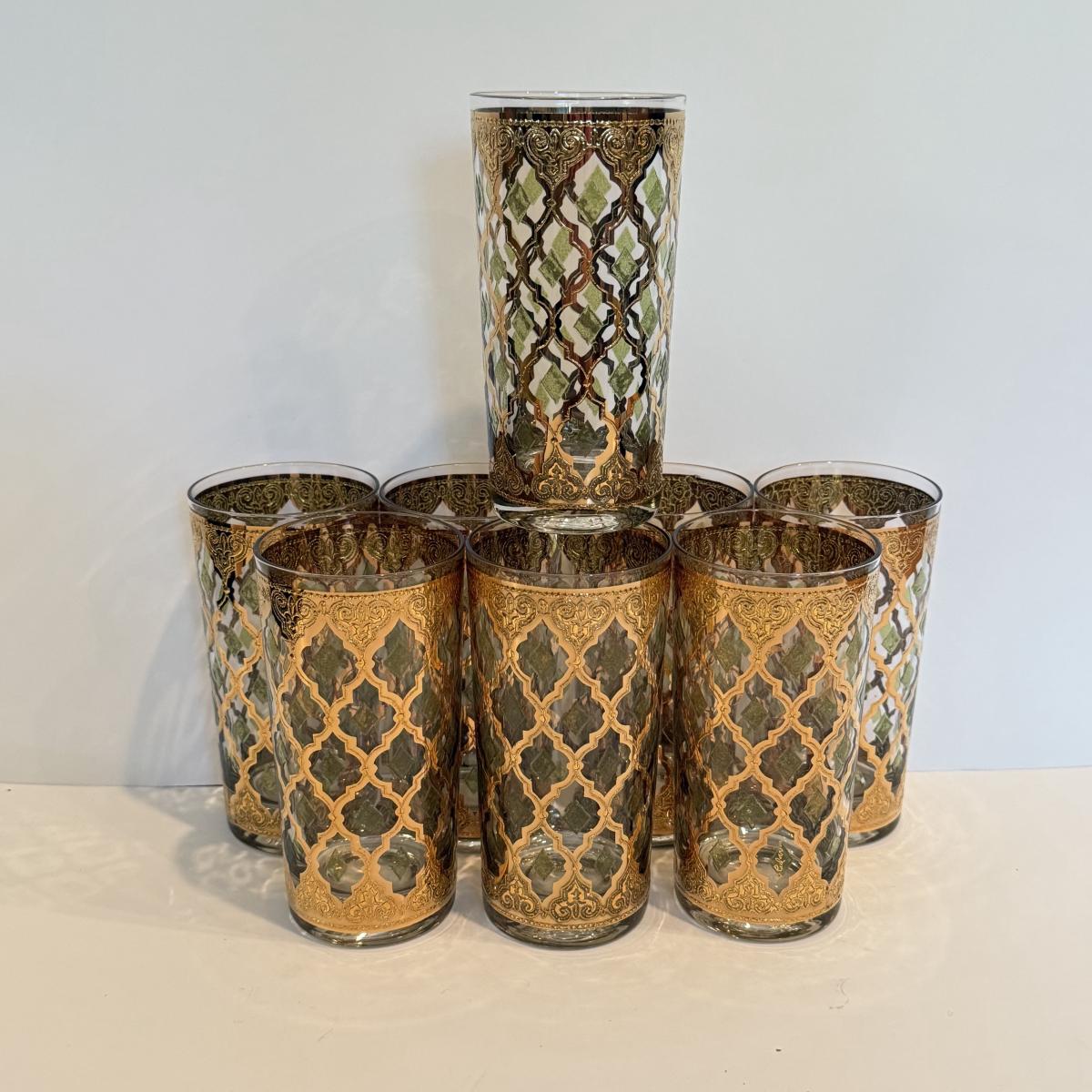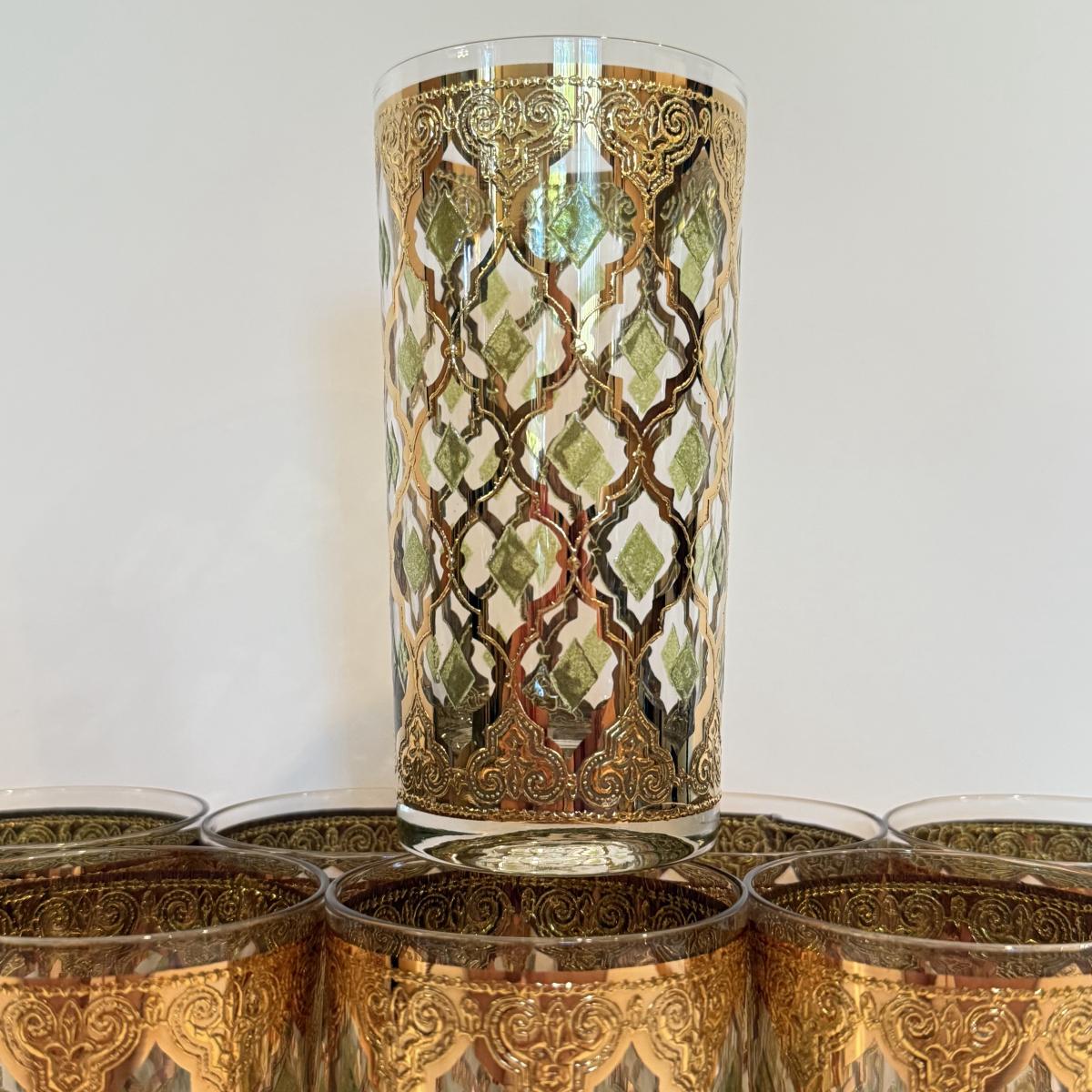 LOT 107F: Fancy Green & Gold Highball Glasses