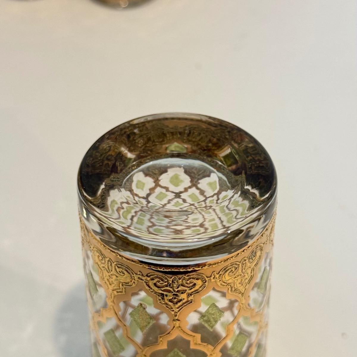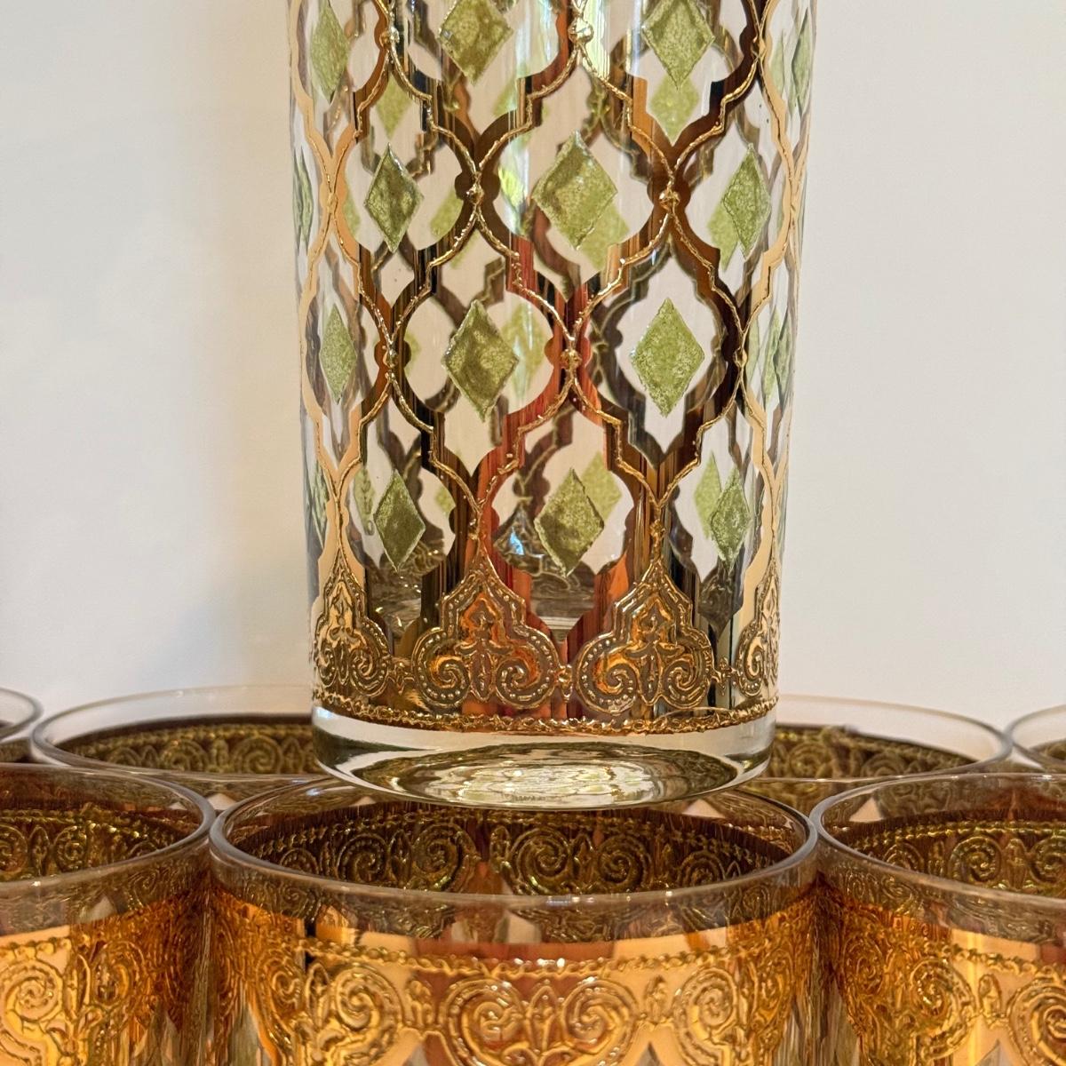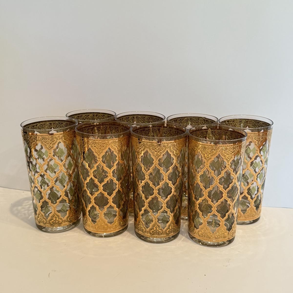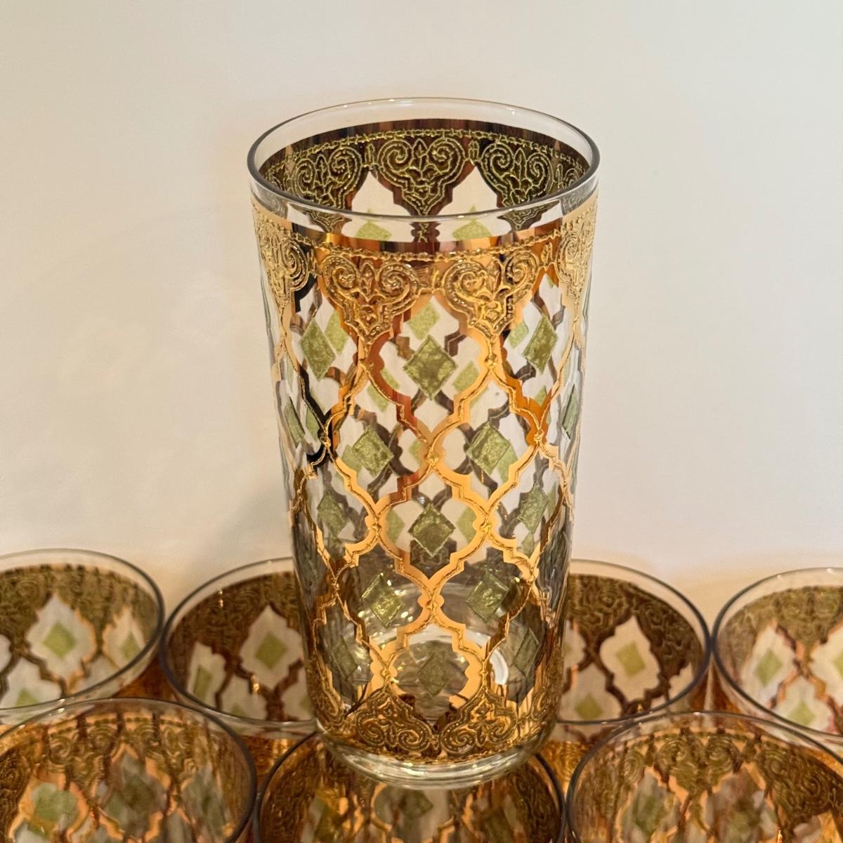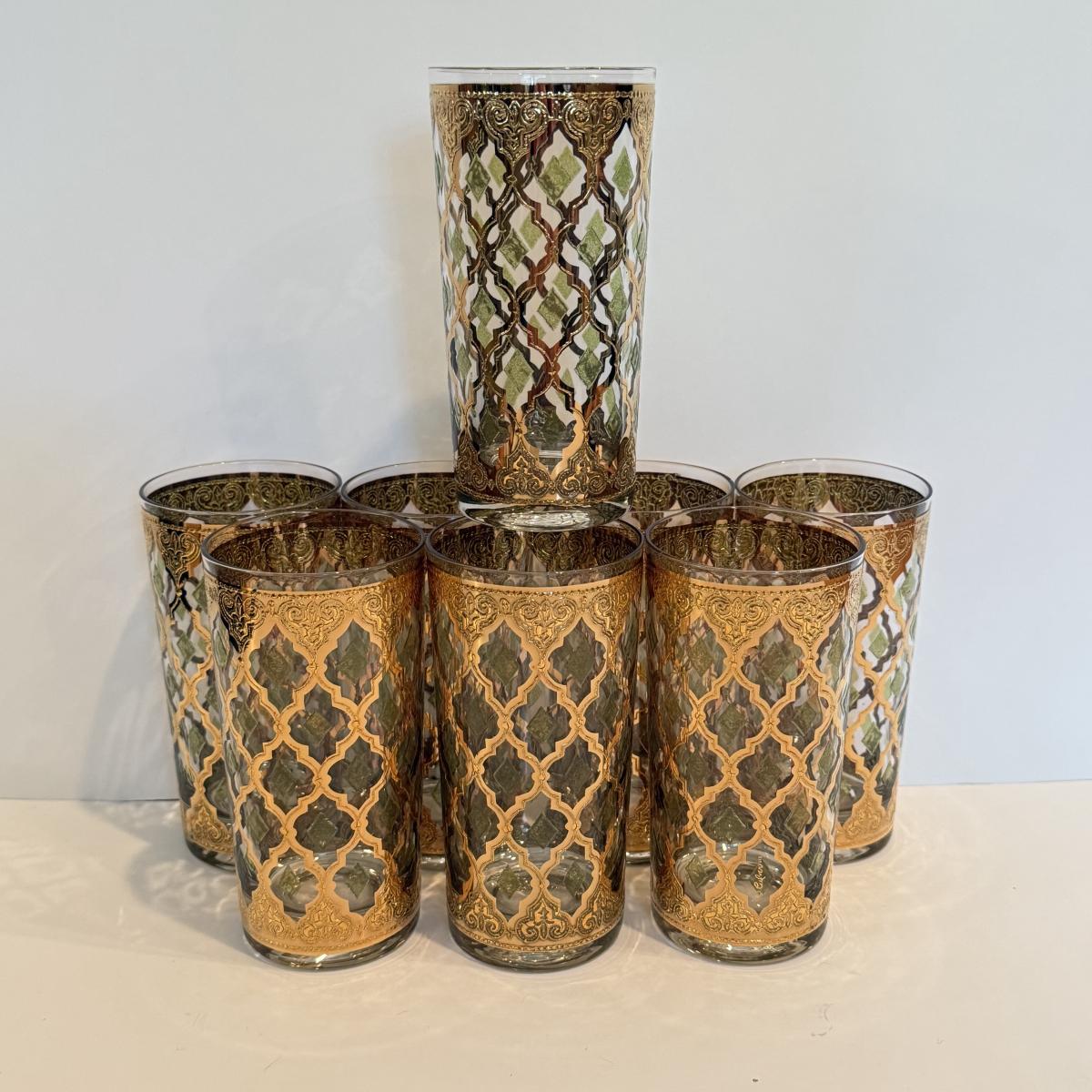 LOT 107F: Fancy Green & Gold Highball Glasses