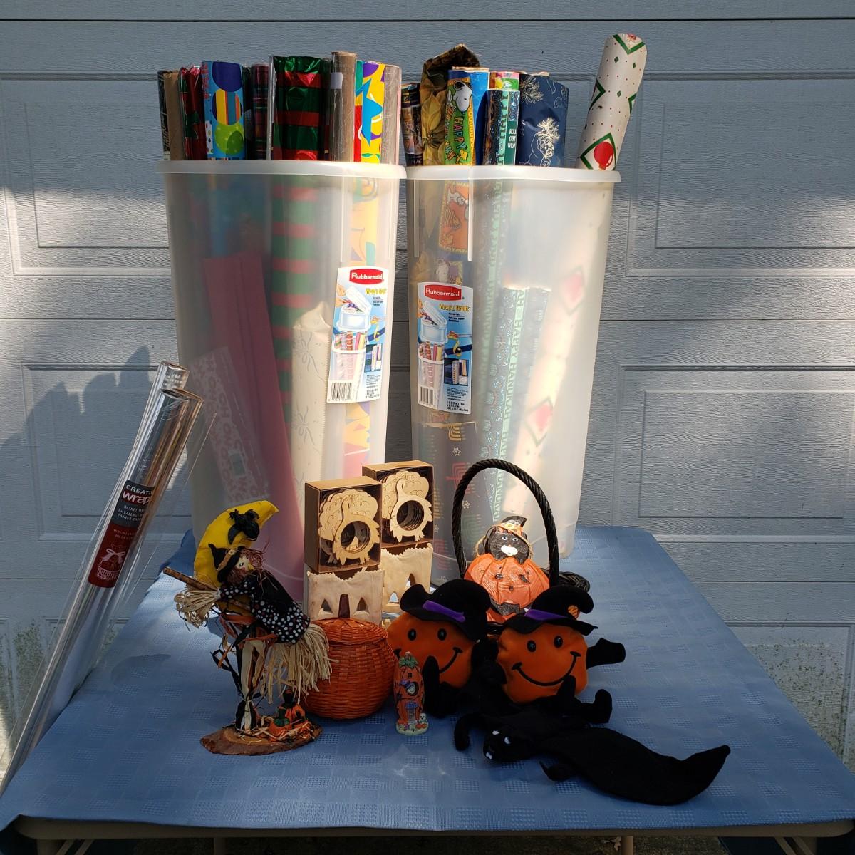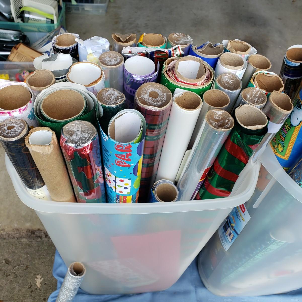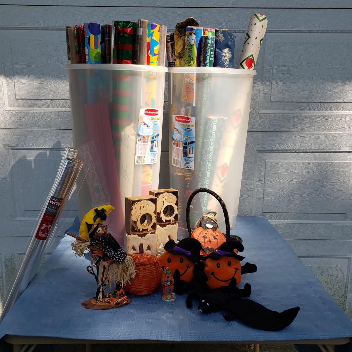 LOT 124G: Holiday Decor and Large Assortment of Wrapping Paper for Various Holidays