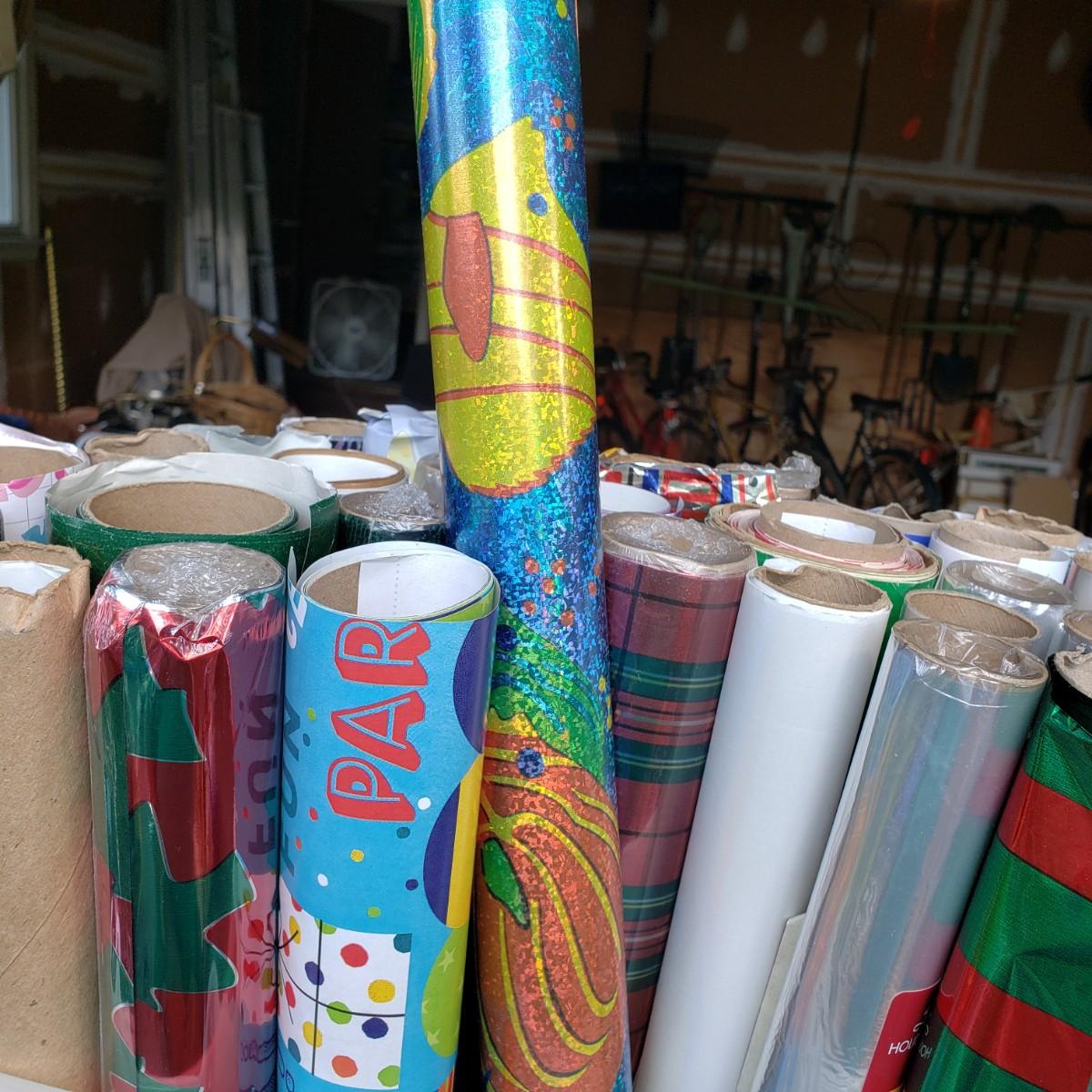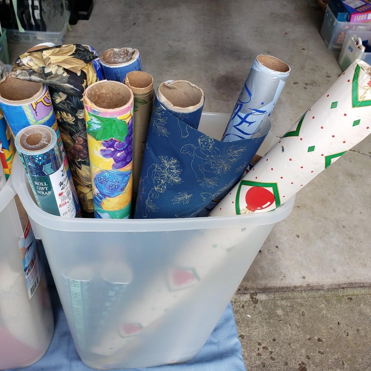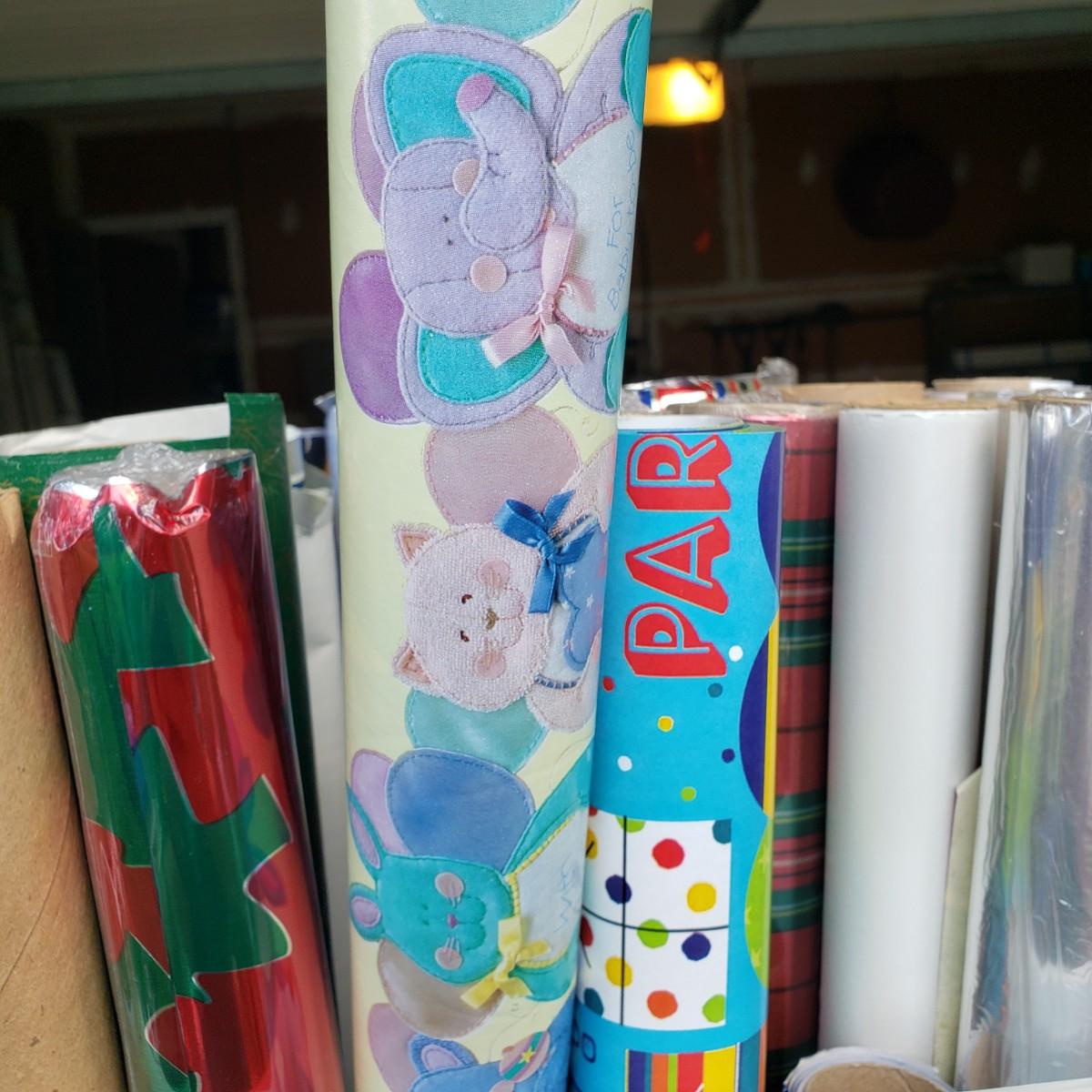 LOT 124G: Holiday Decor and Large Assortment of Wrapping Paper for Various Holidays