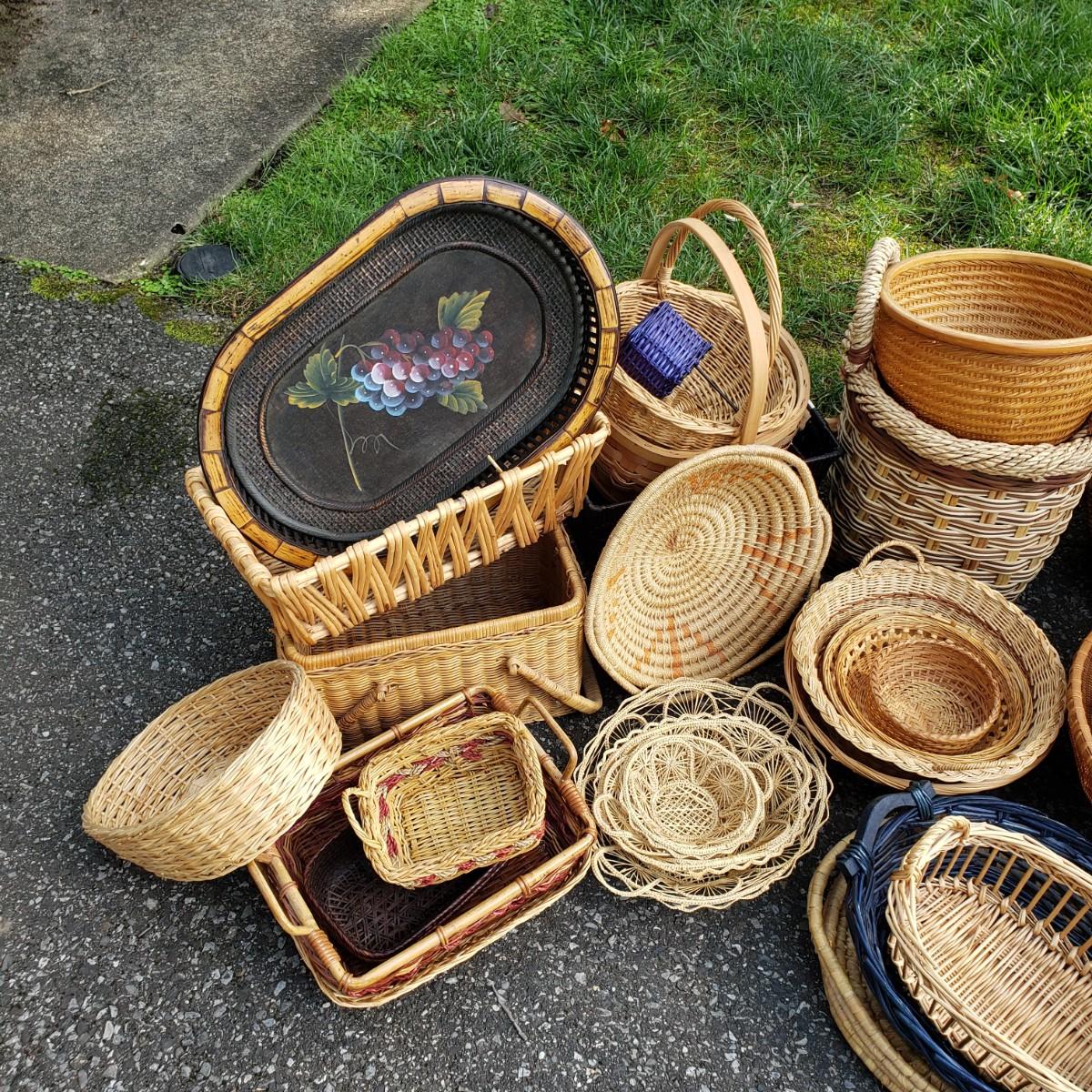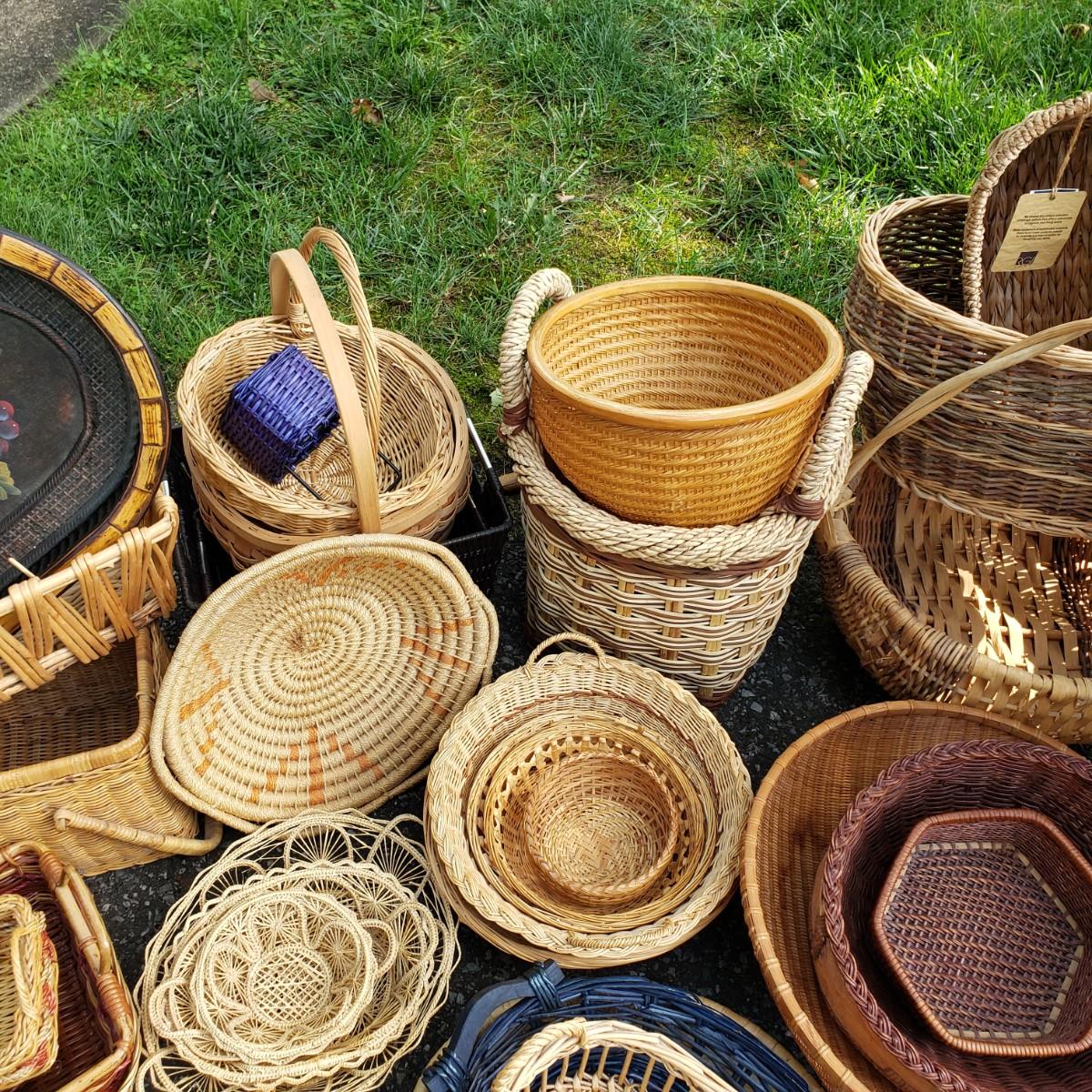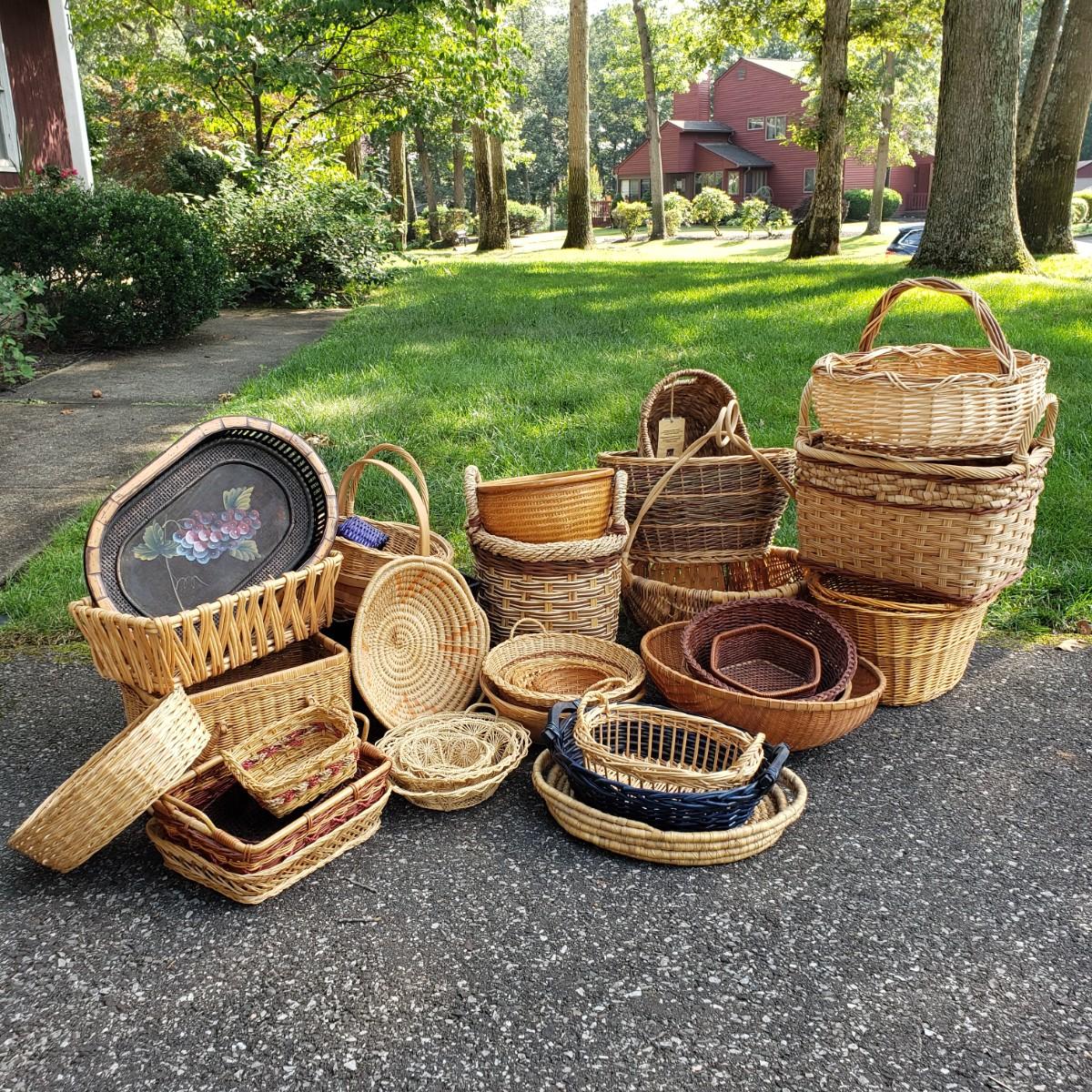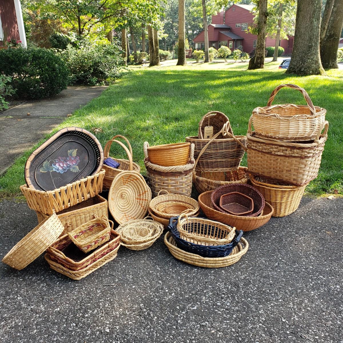 LOT 127G: Baskets Galore! Large Assortment of Baskets in Various Shapes and Sizes