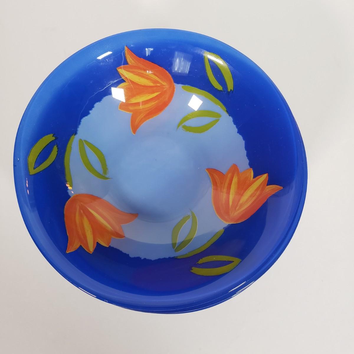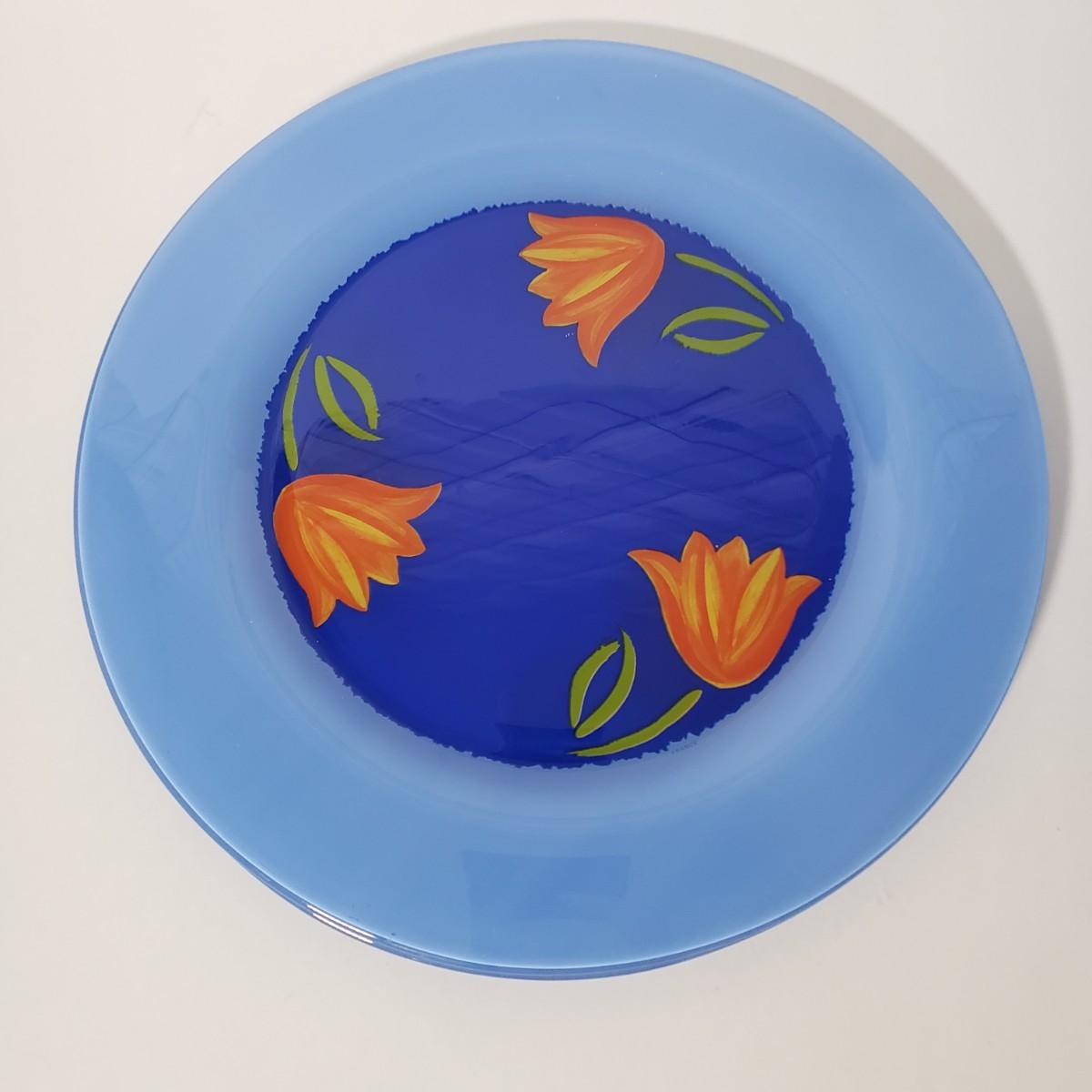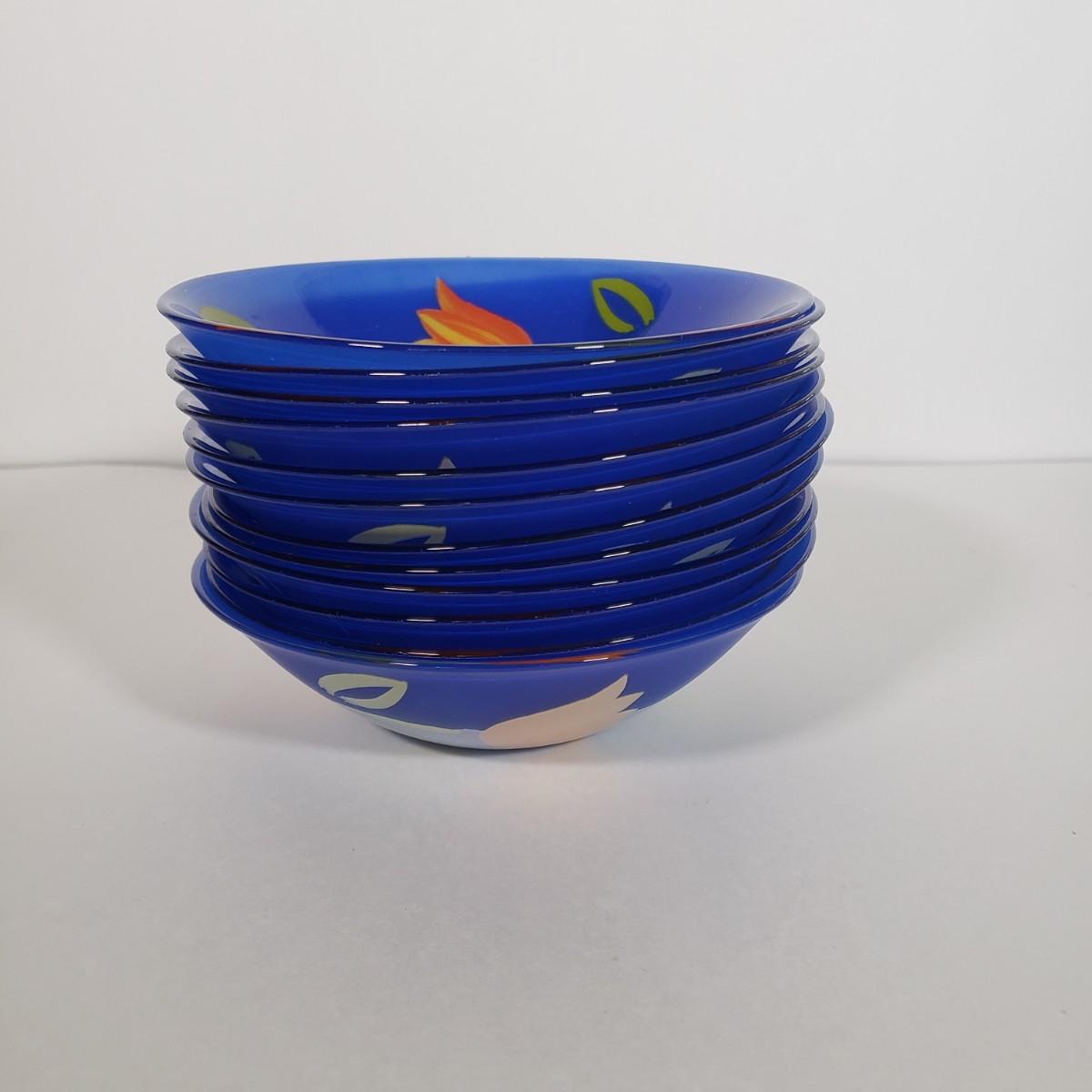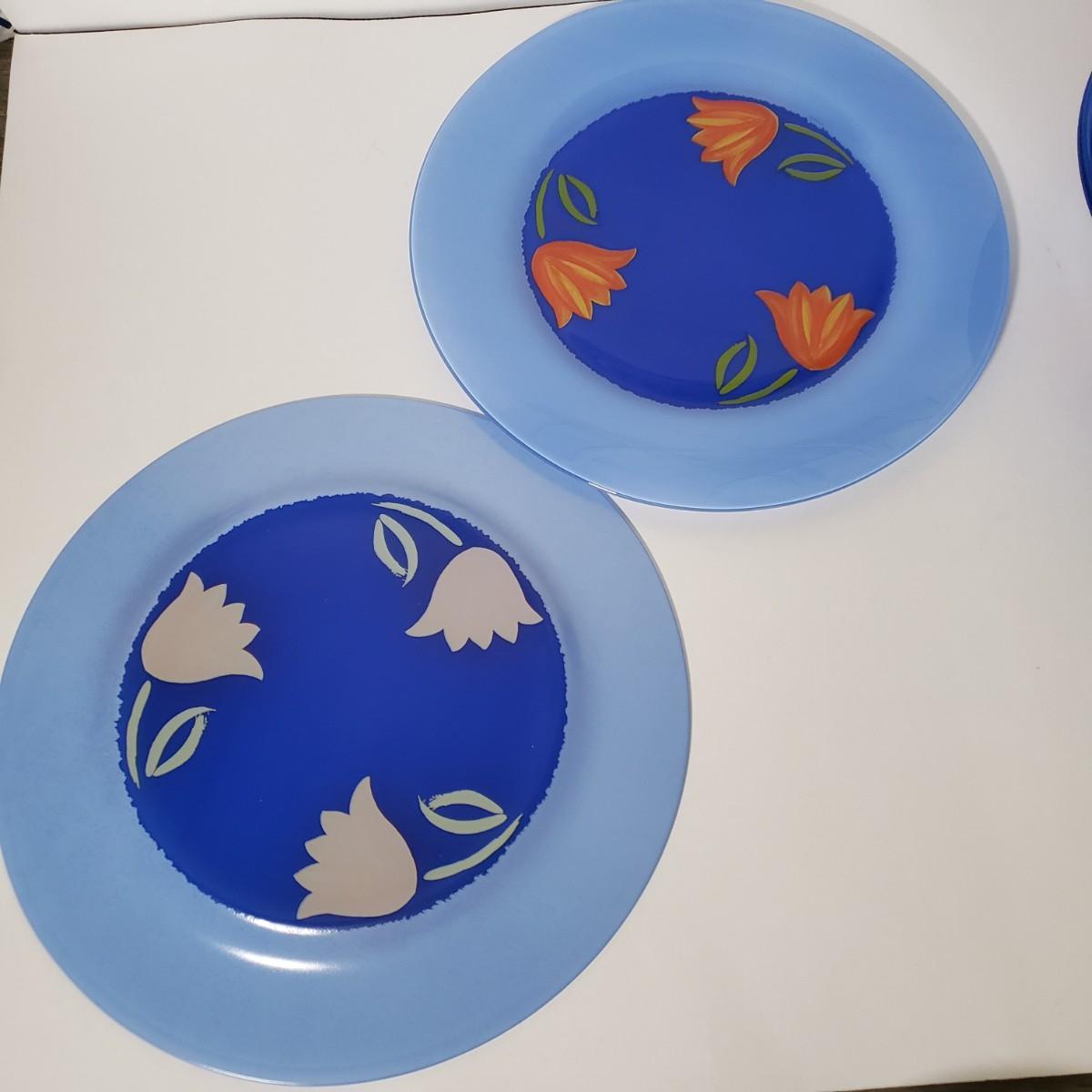 LOT 130L: Arcoroc France Blue Matys Glass Tableware with Orange Tulips