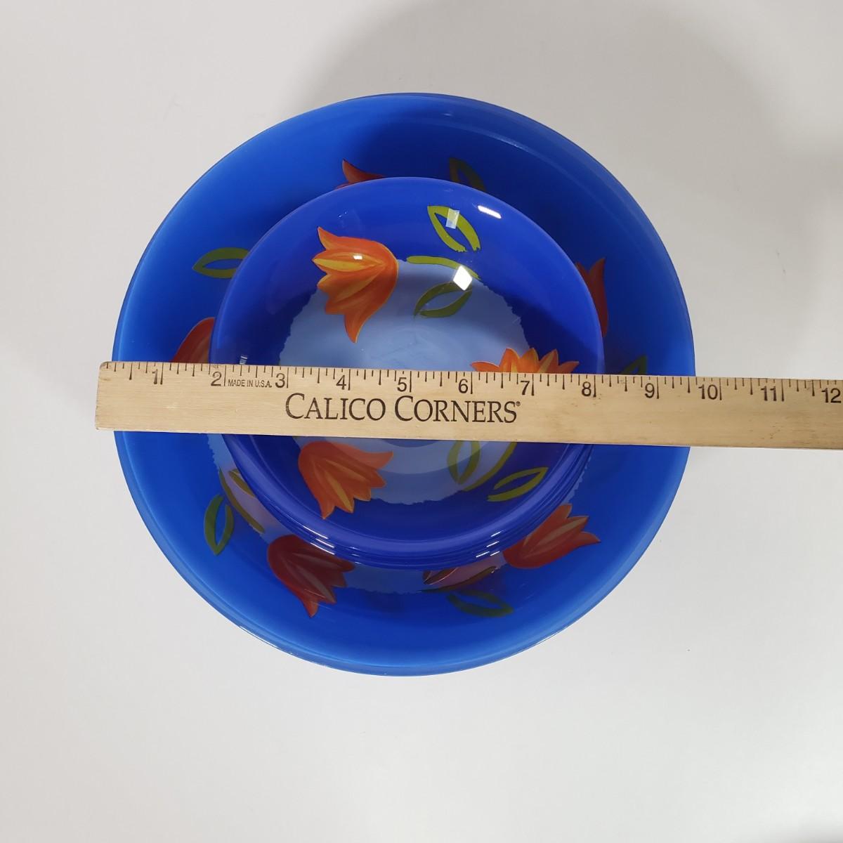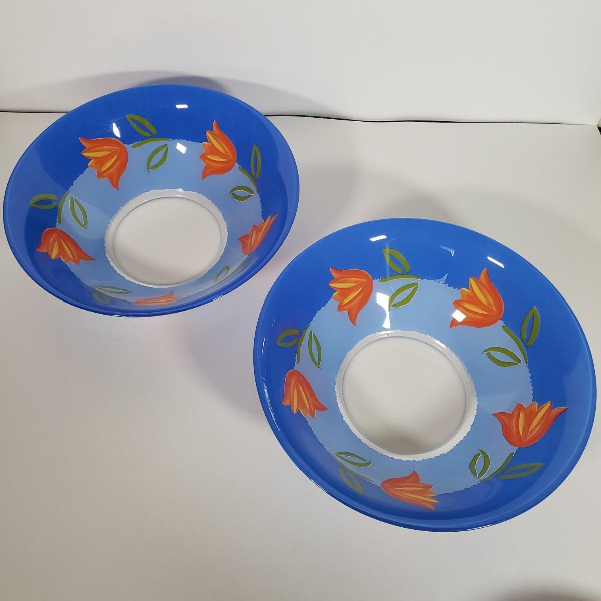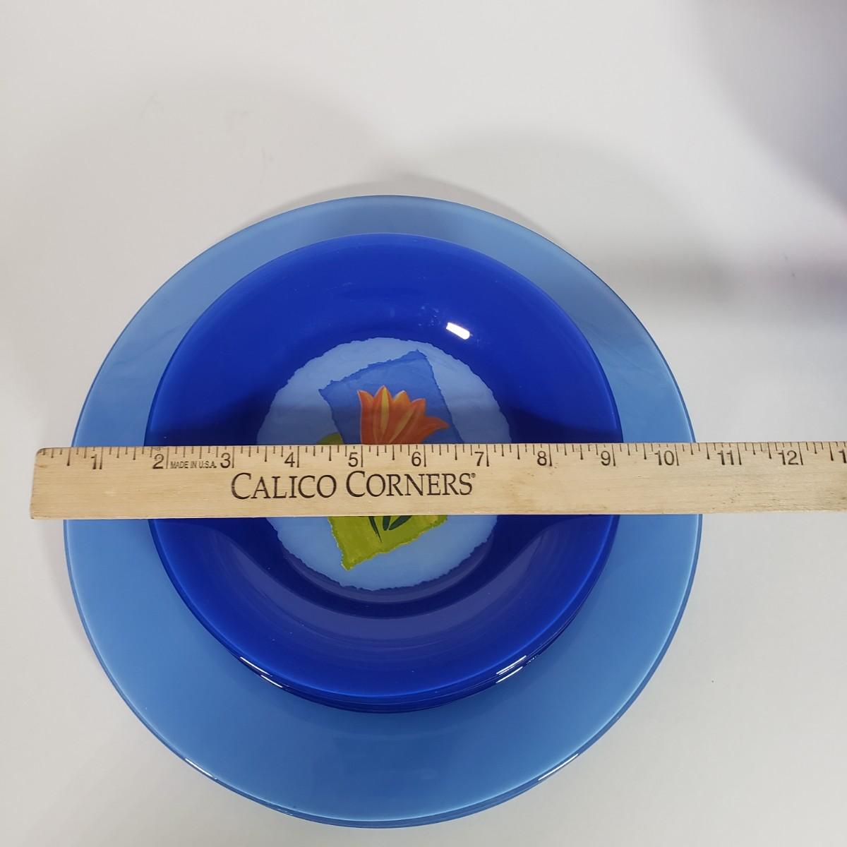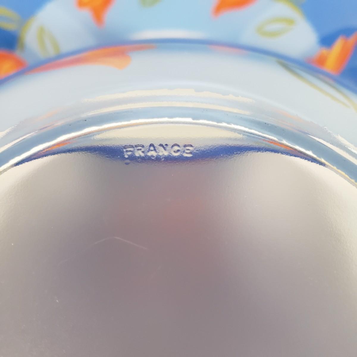 LOT 130L: Arcoroc France Blue Matys Glass Tableware with Orange Tulips