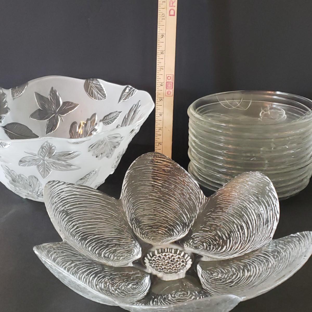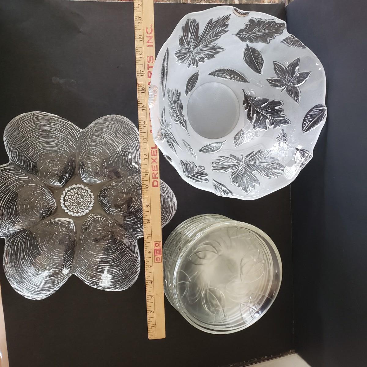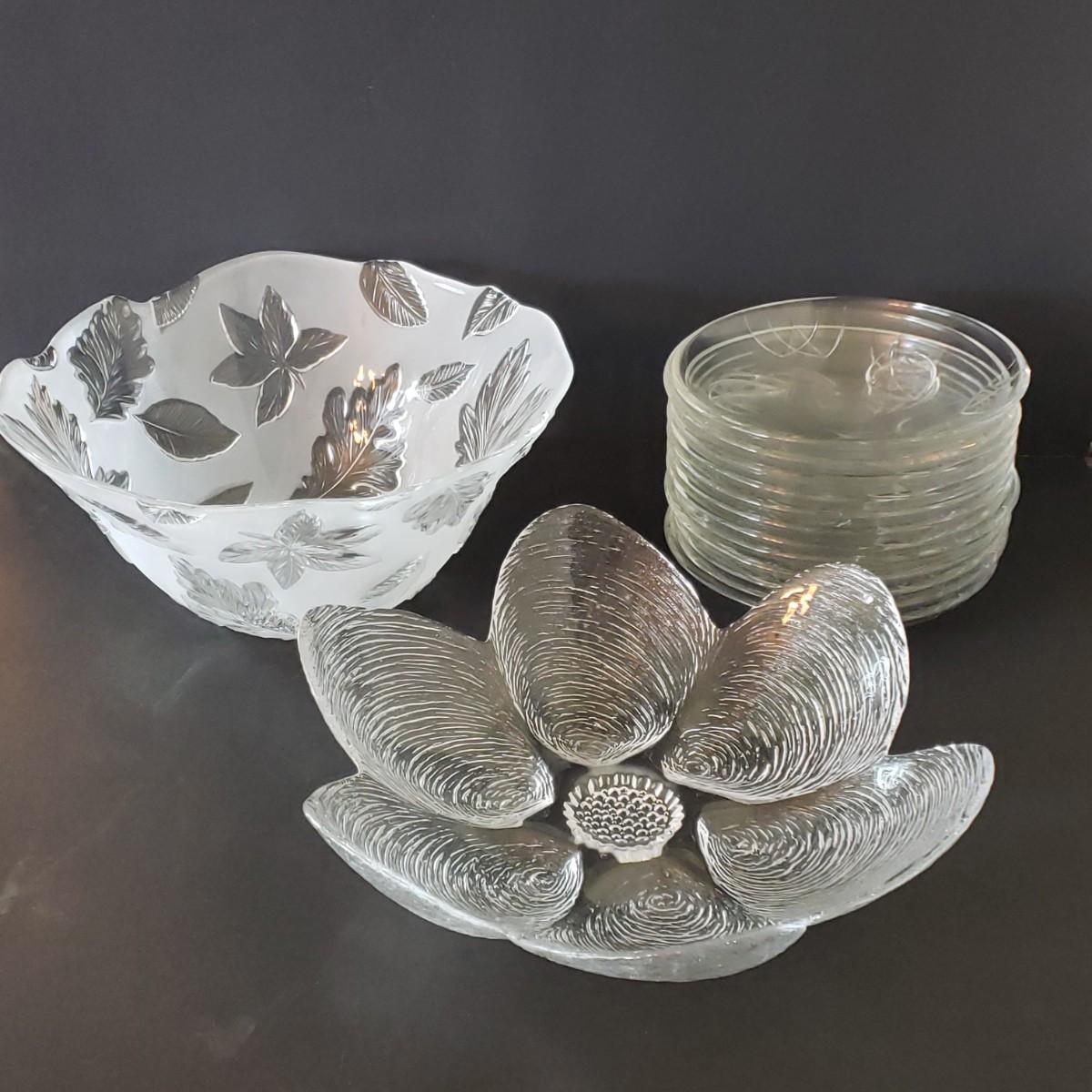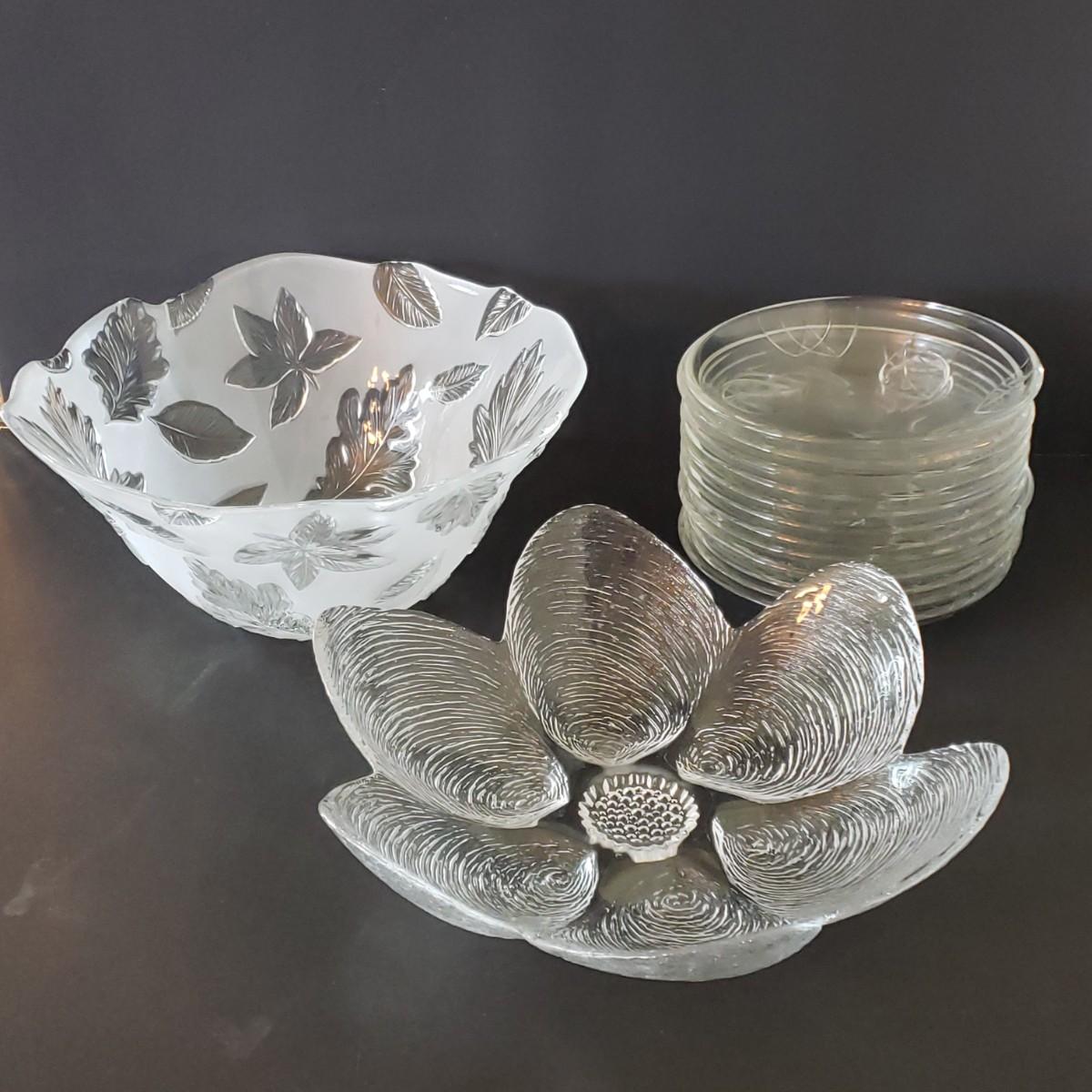 LOT 131L: Embossed Oyster Shell Dish, Mikasa Satin Leaves Bowl, and Set of 12 Botanic Leaf Dishes