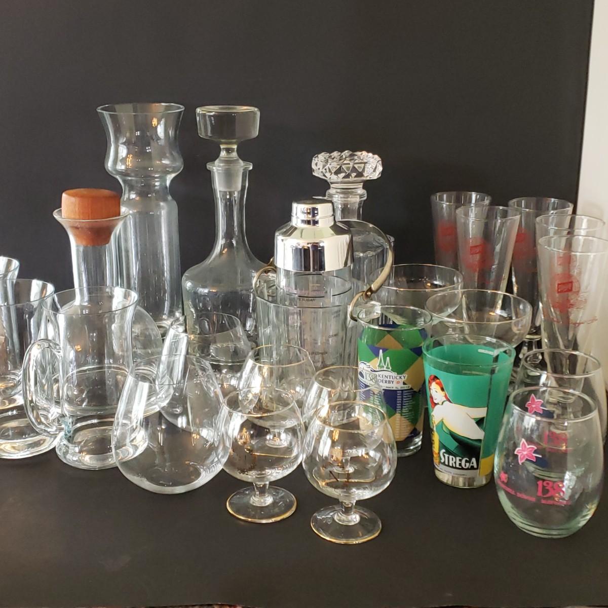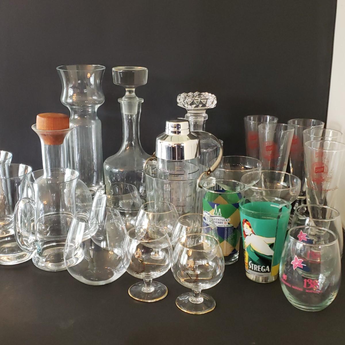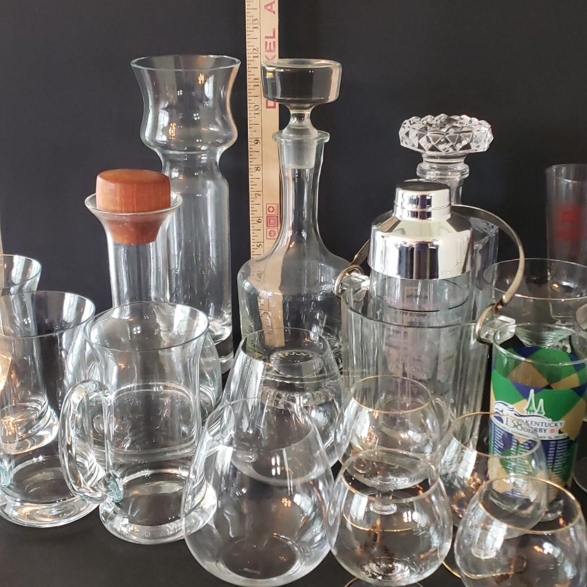 LOT 133D: Large Barware Collection; Schlitz Glasses, Stemware, Decanters, and More