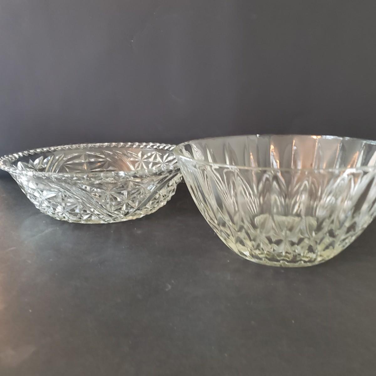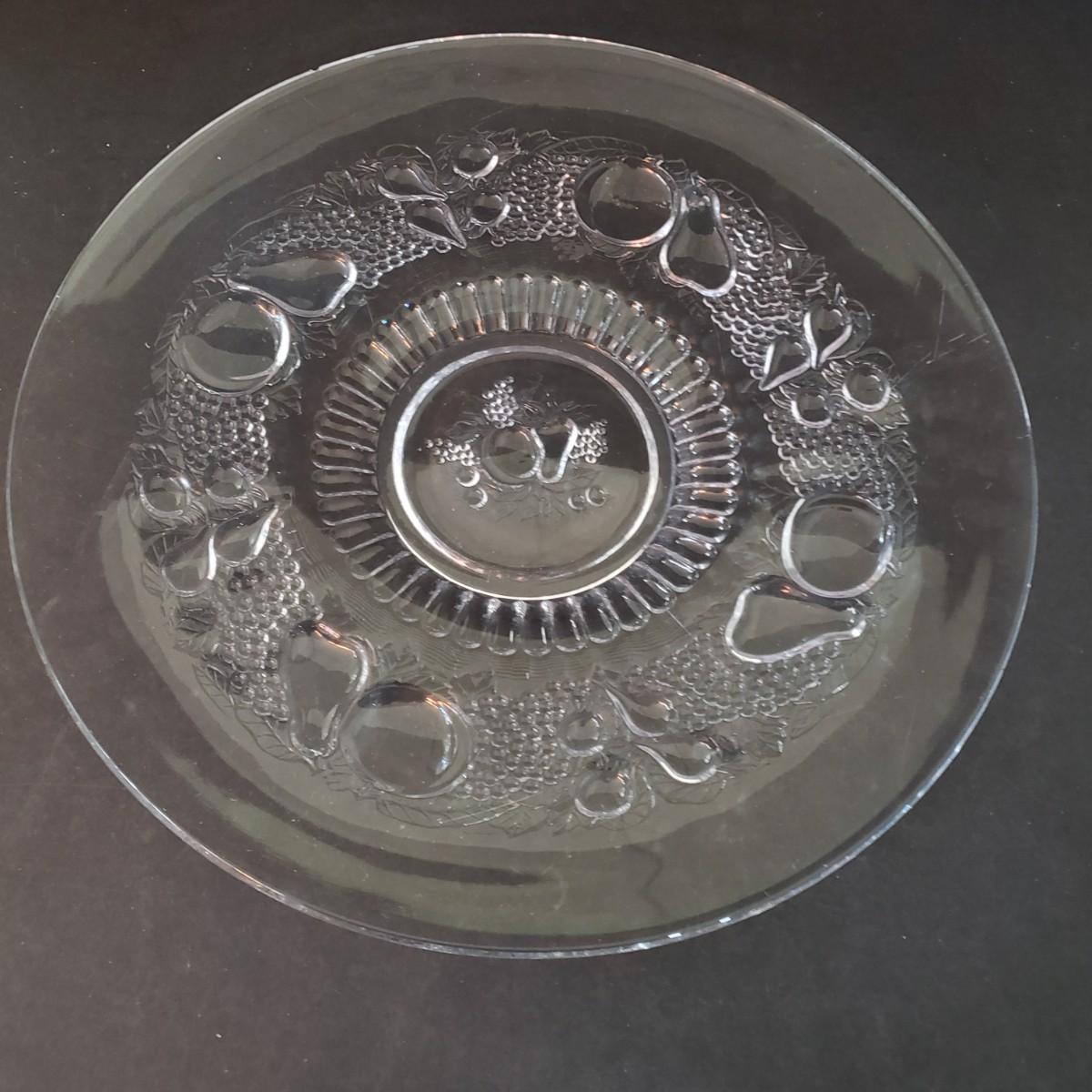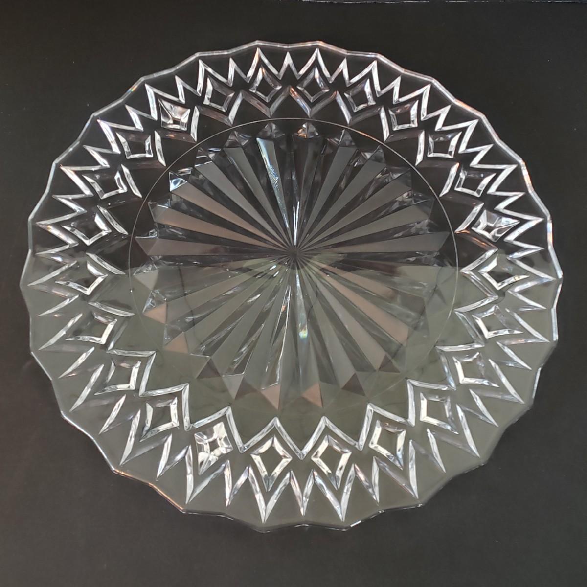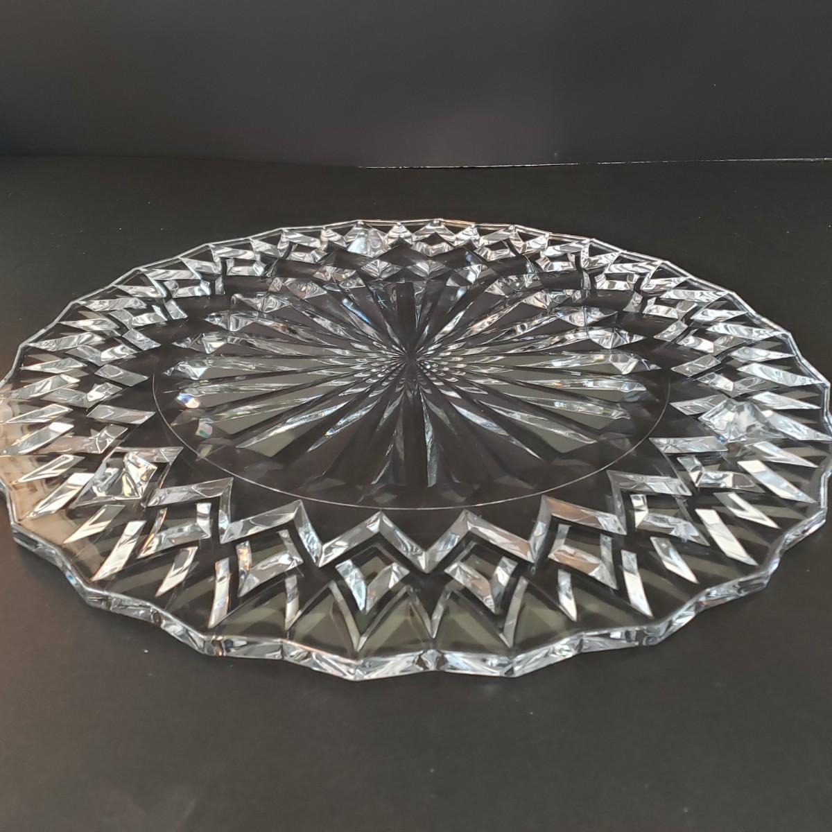LOT 136L: 14" Lead Crystal Cathedral Cake Plate, Glass Egg Plate, Fish Dish, and More