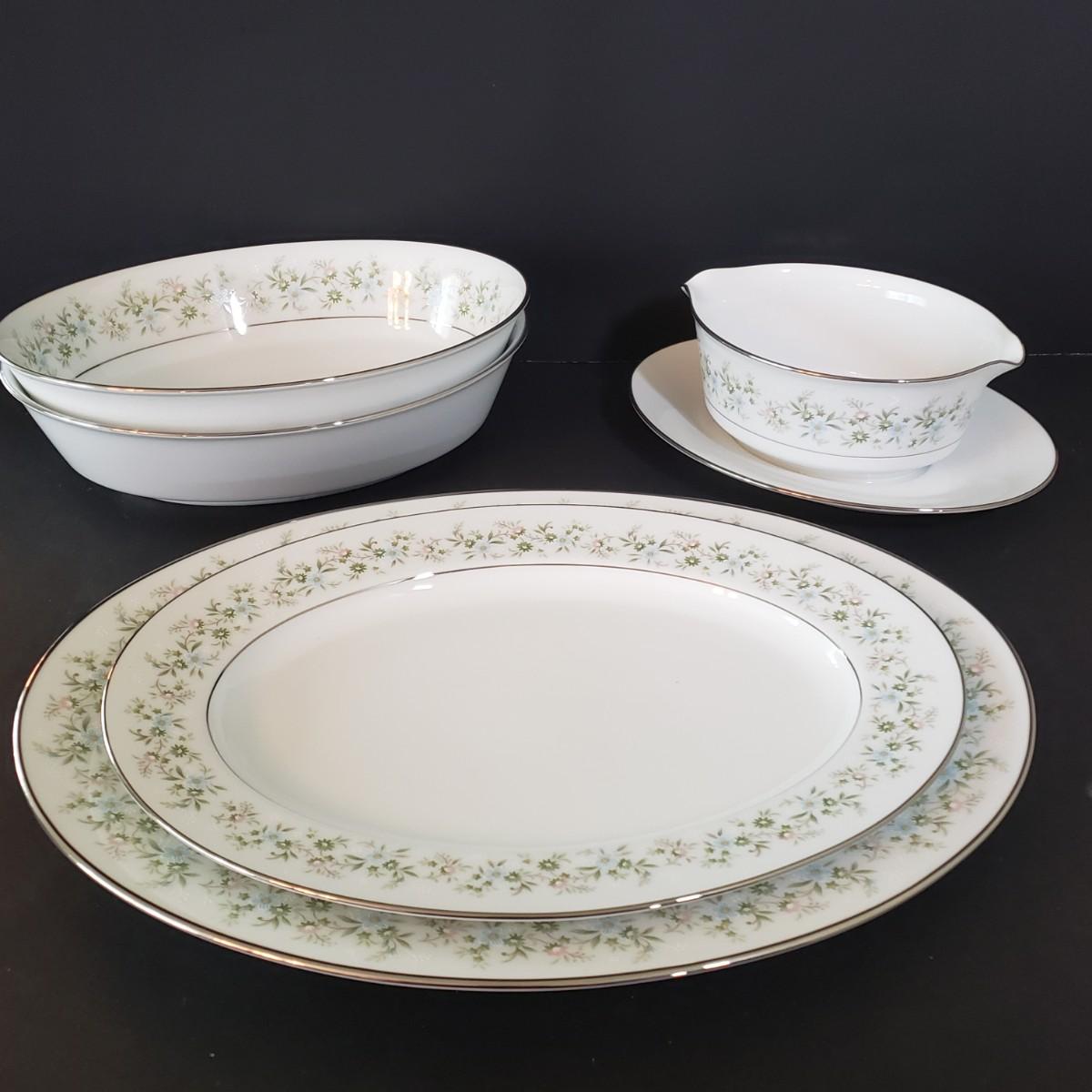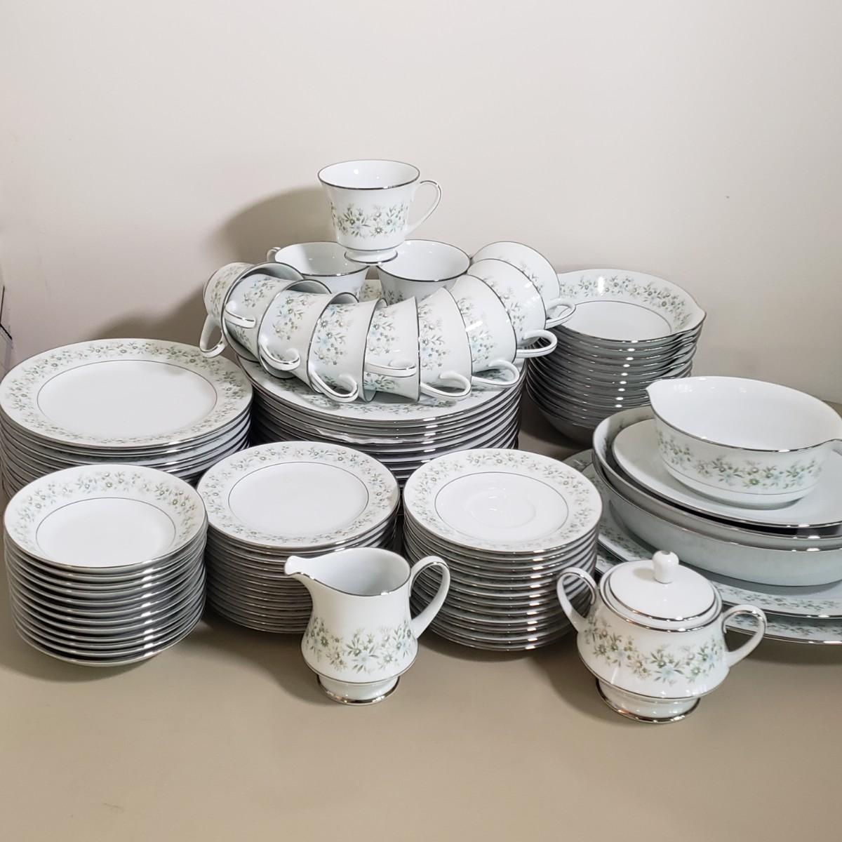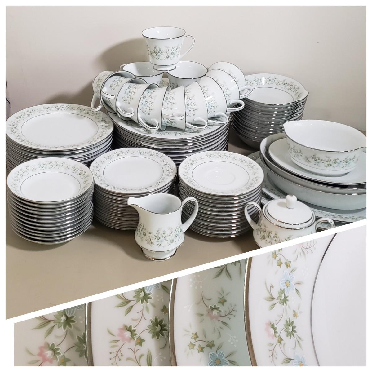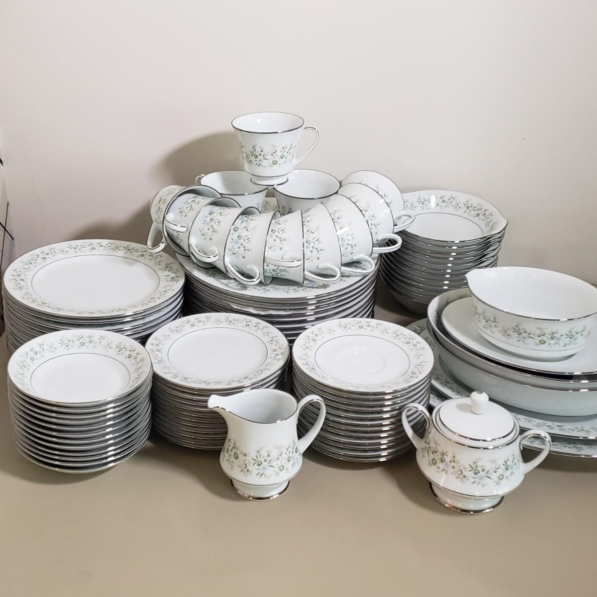 LOT 137D: Noritake Savannah Service for 12, Serving Platters and Bowls, Teacups/Saucers, and Creamer with Sugar