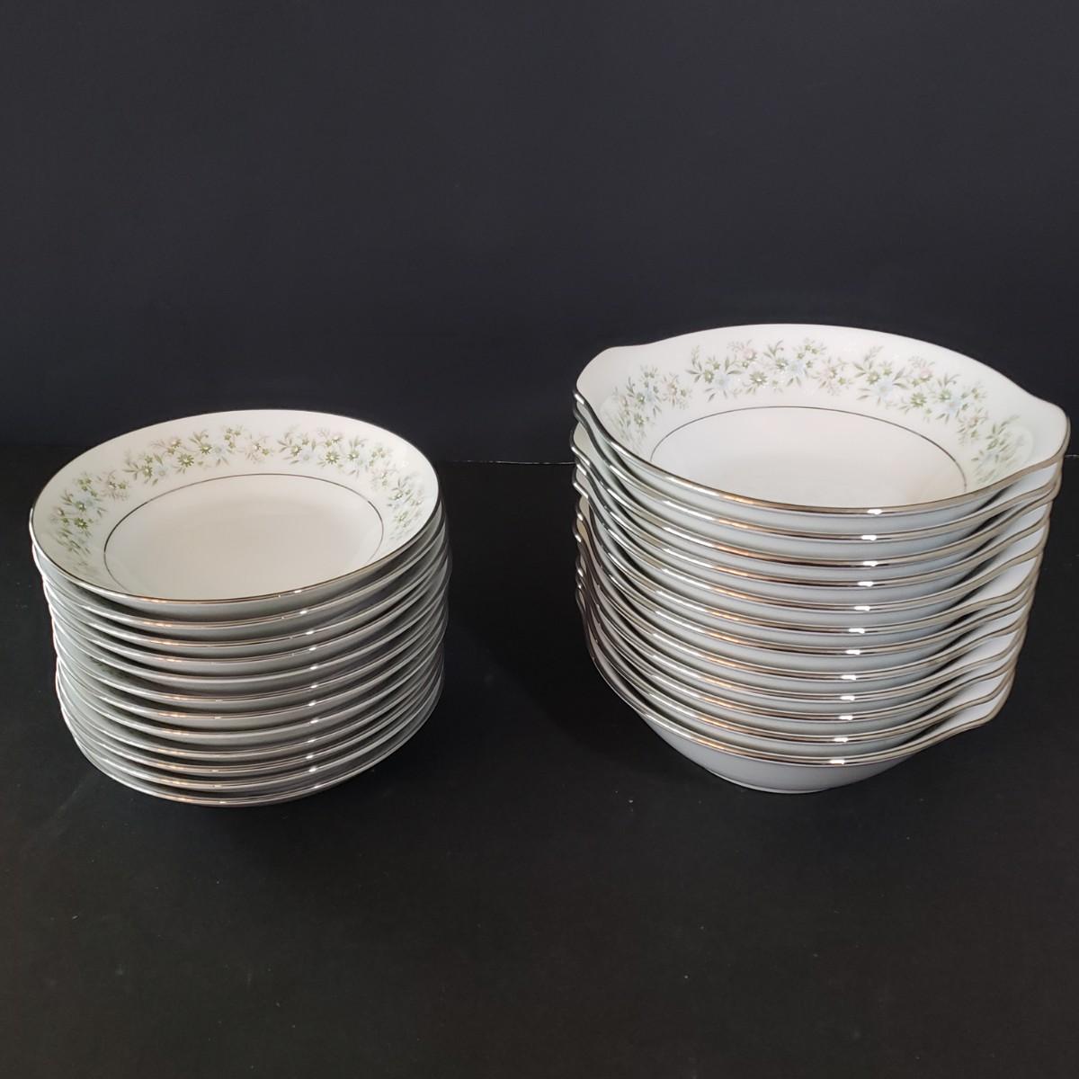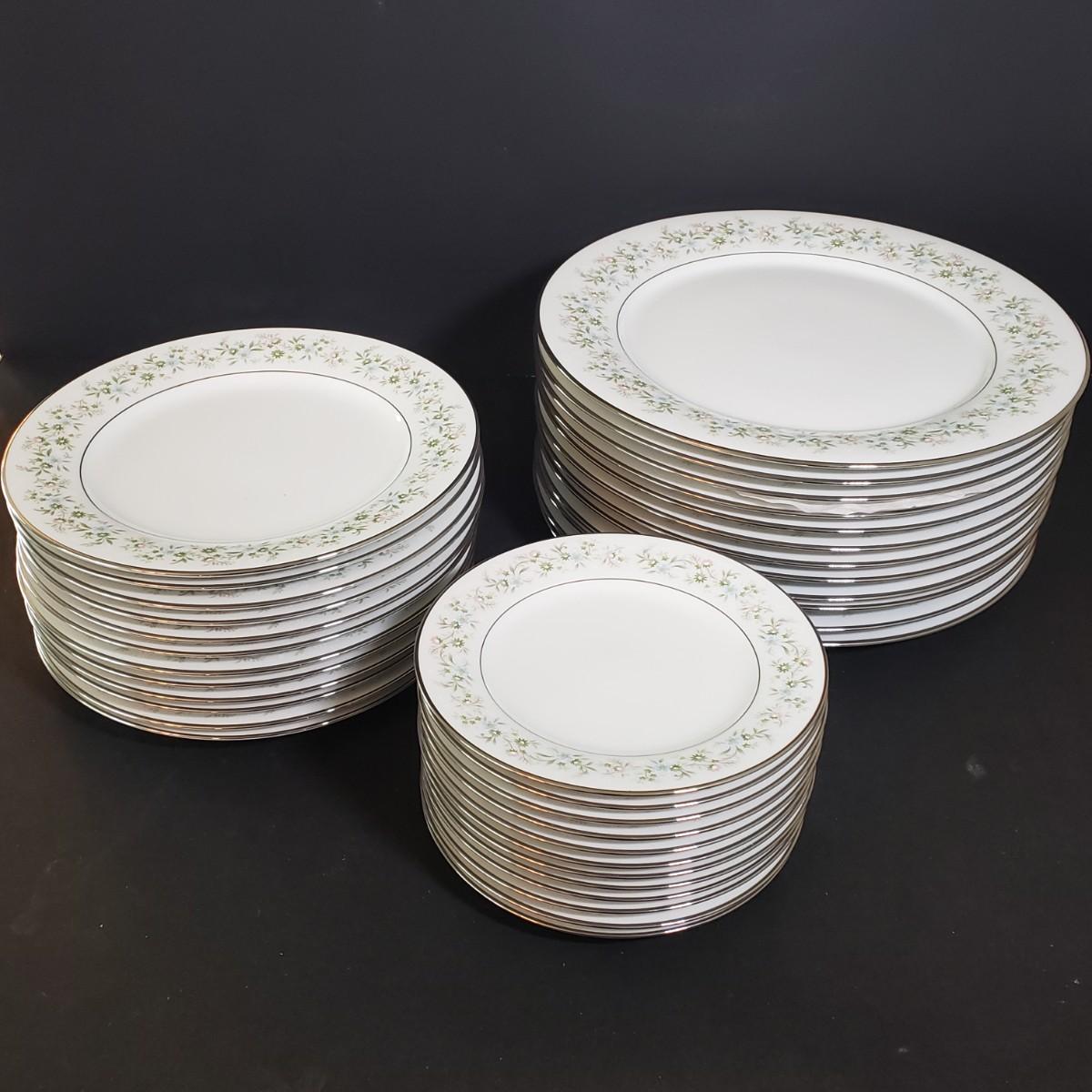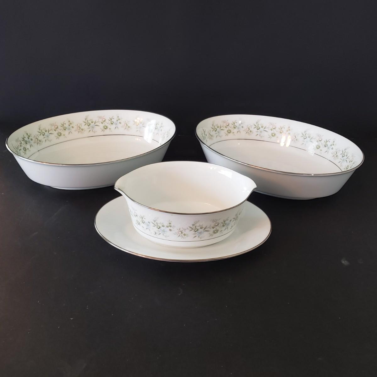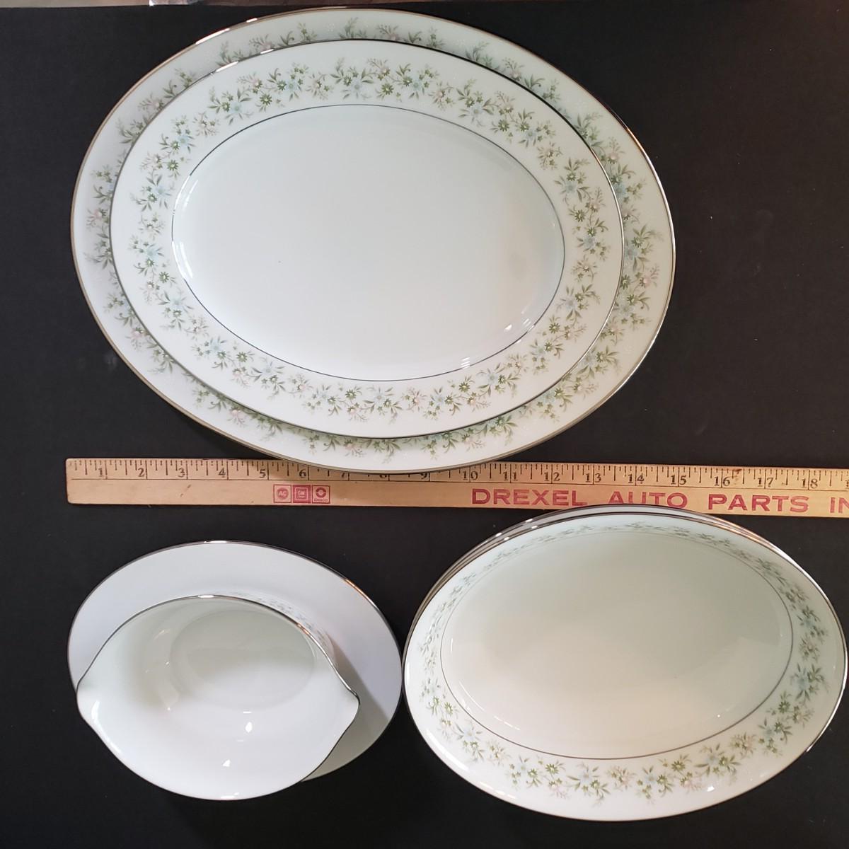 LOT 137D: Noritake Savannah Service for 12, Serving Platters and Bowls, Teacups/Saucers, and Creamer with Sugar
