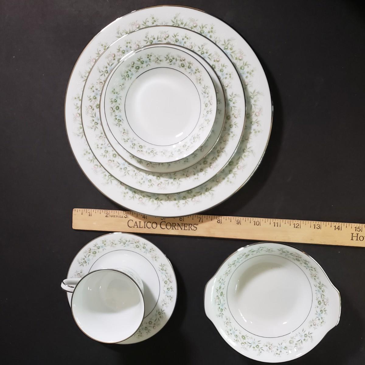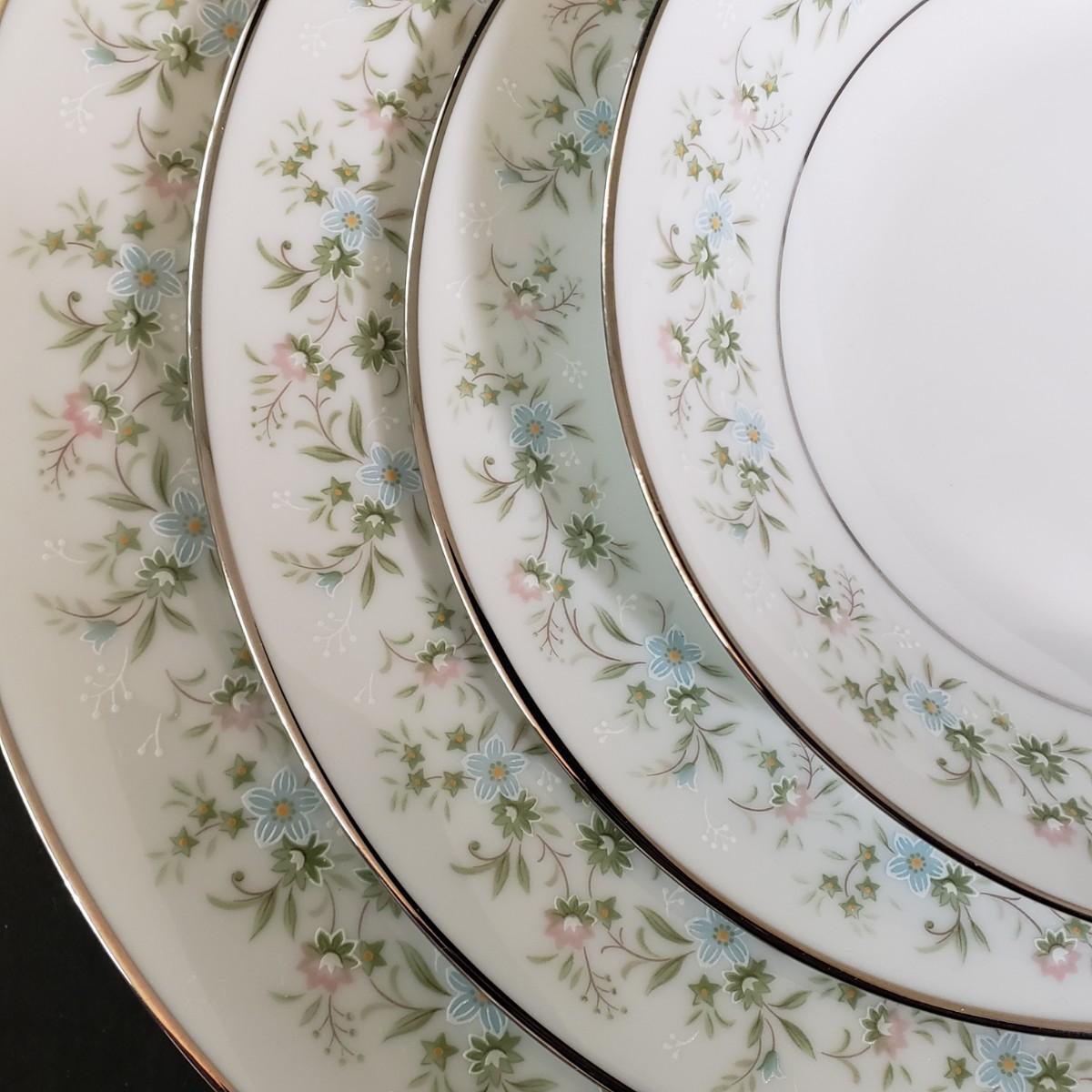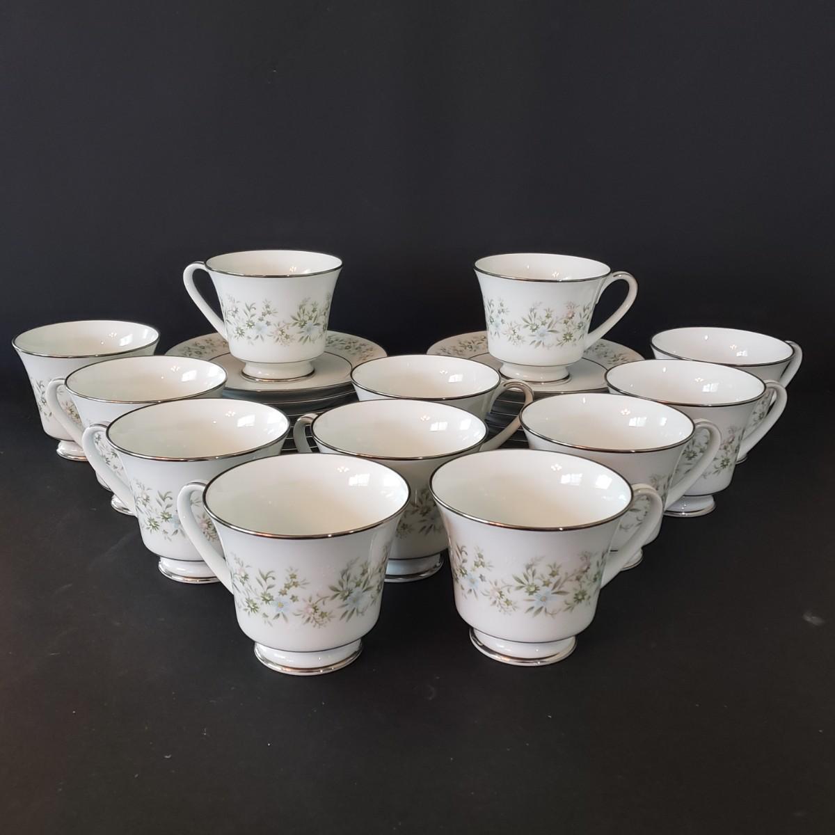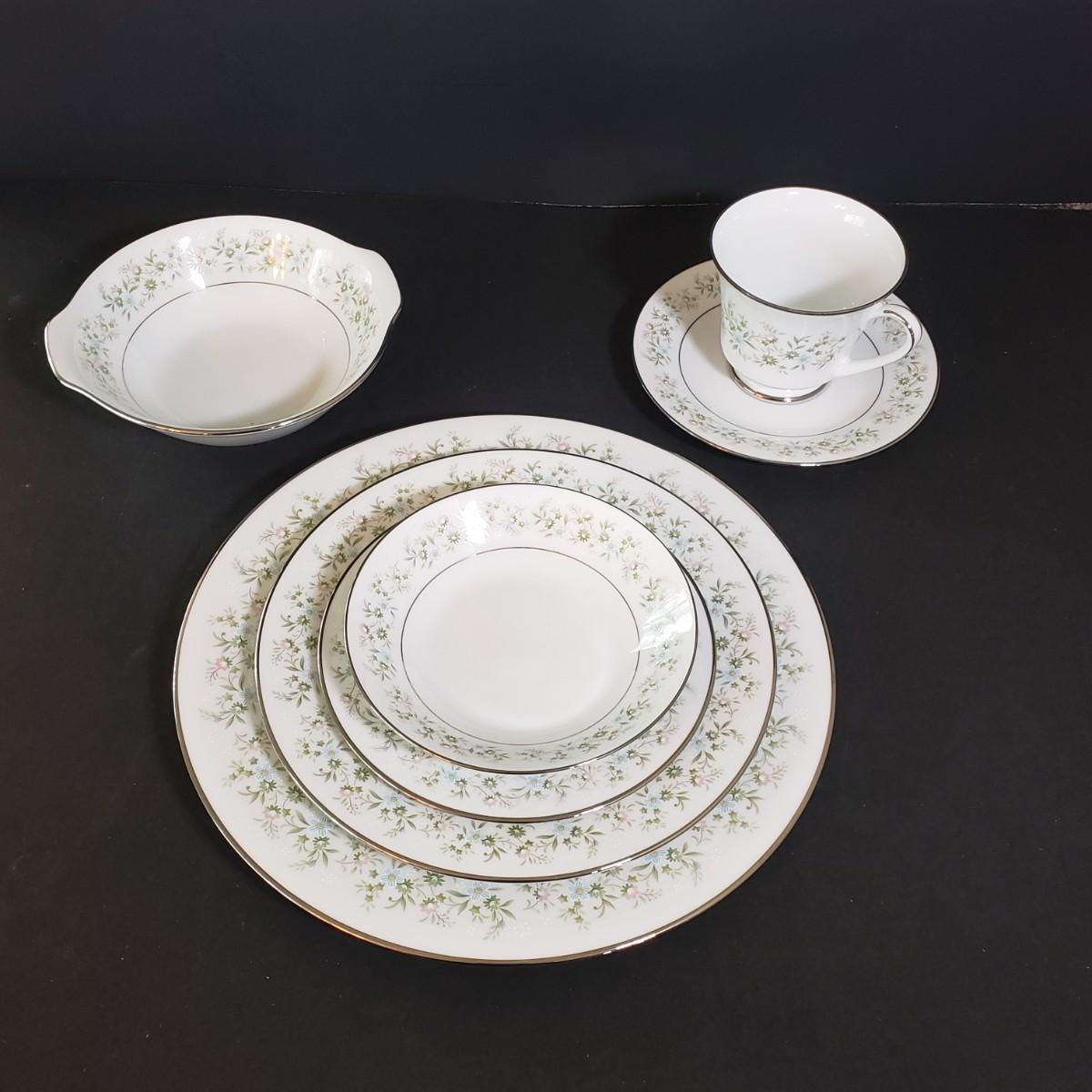 LOT 137D: Noritake Savannah Service for 12, Serving Platters and Bowls, Teacups/Saucers, and Creamer with Sugar