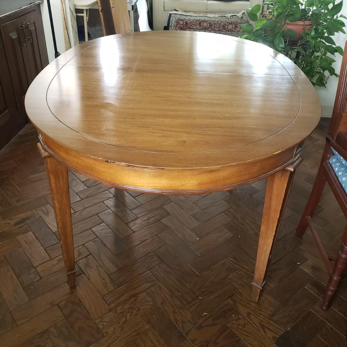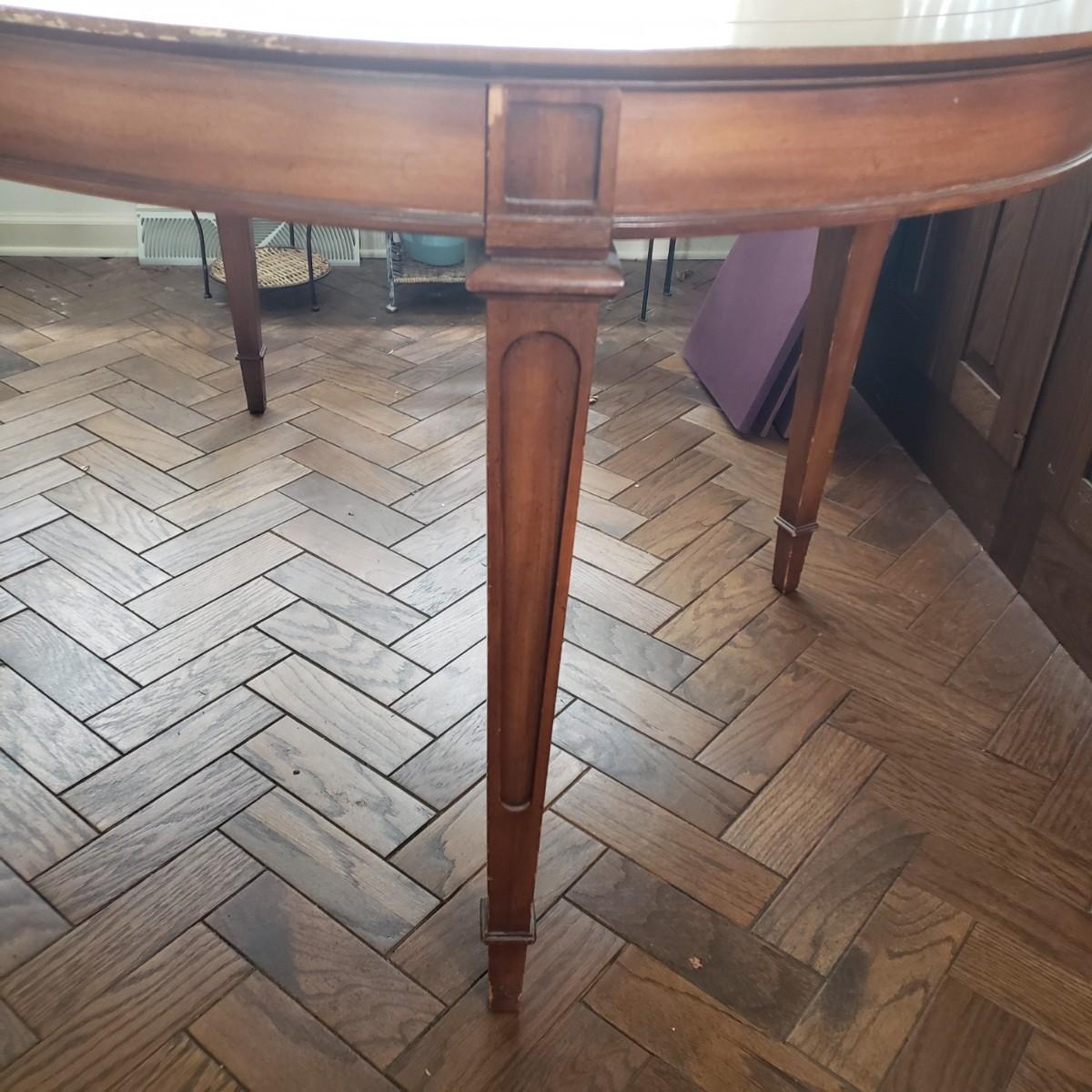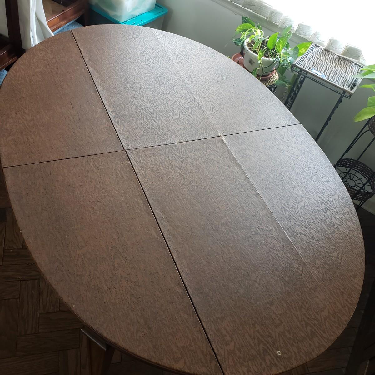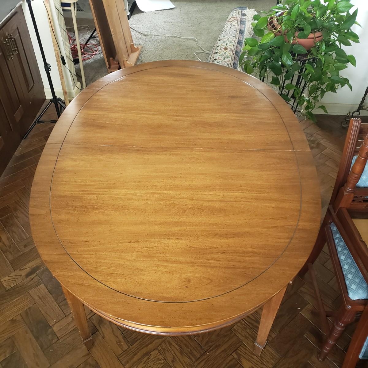 Table 56" L 40" W 30"H, leaf each 40"x 18". Please see all pictures as they are the best representation of the items. The pictures show condition, measurements if taken, and what is included in the lot. Due to the large amount that we photograph and the time frame, we are not always able to take measurements. All items unless noted, are pre-owned and have been used. If you purchased furniture, you must bring help. We do not allow one person to carry large furniture out on their own. Bring help, tools and a truck for the safety of our client’s homes, and your personal safety. Any damages that result to the property including walls, and floors due to moving of the furniture will be charged to the buyer. Company policy. Thank you.