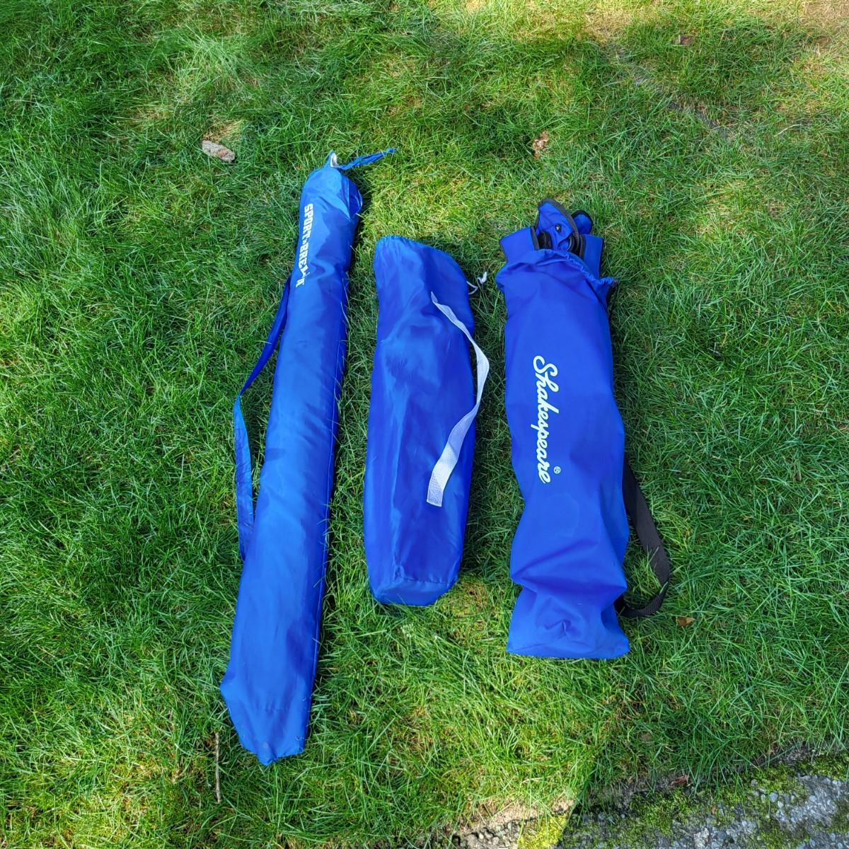 LOT 151G: Pair of Folding Chairs and Umbrella with Storage Bags
