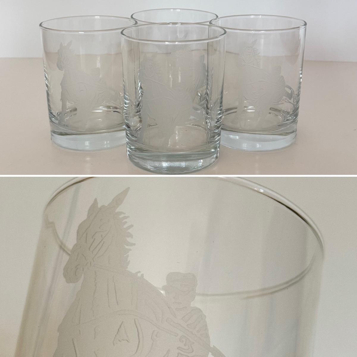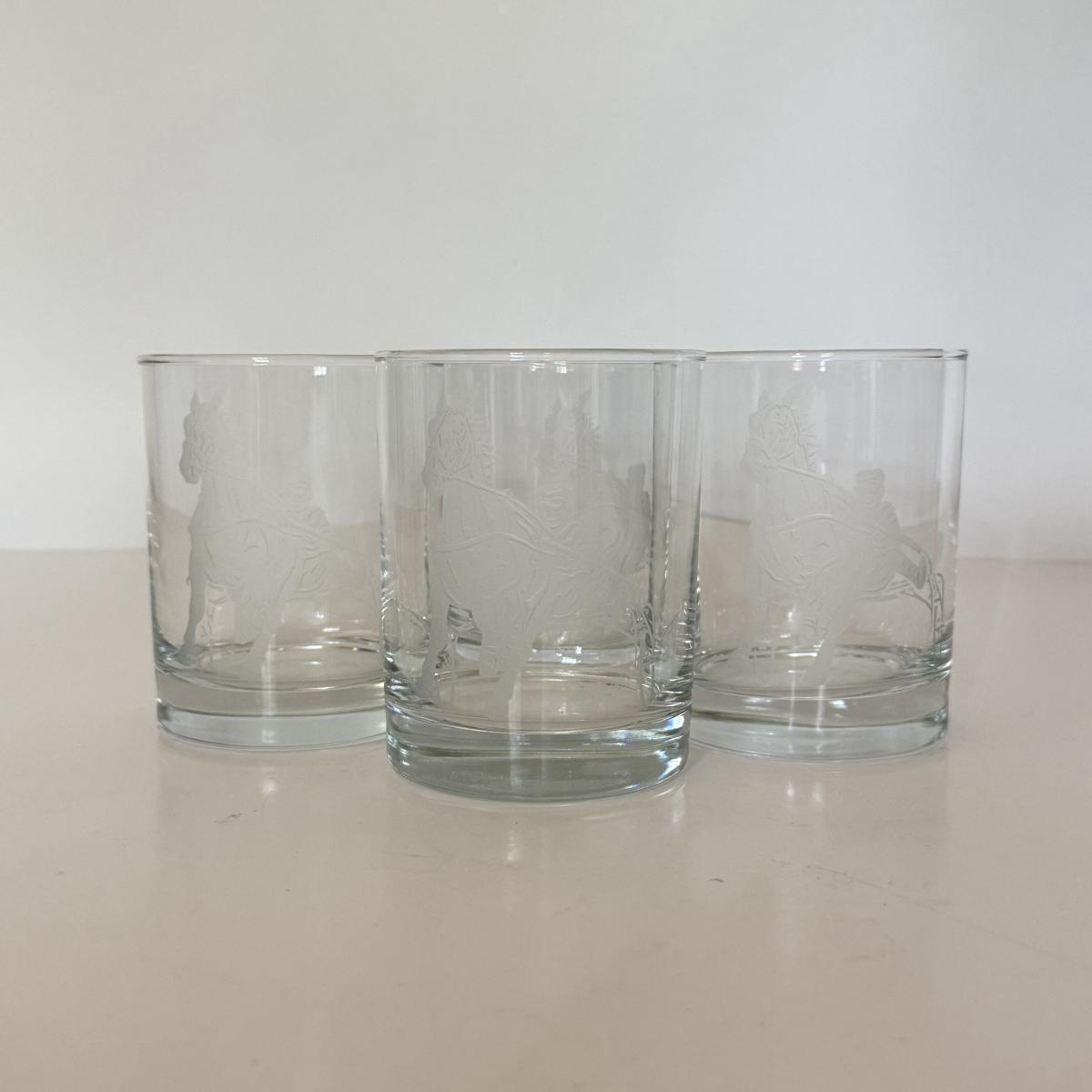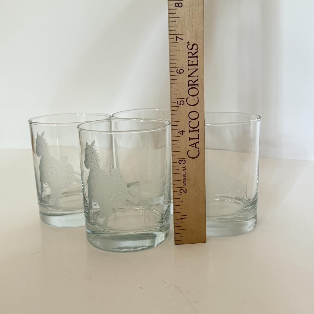 LOT 161F: Jockey Riding Horse Etched Whiskey Glasses (4)
