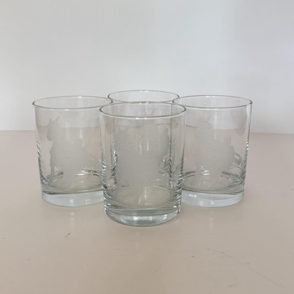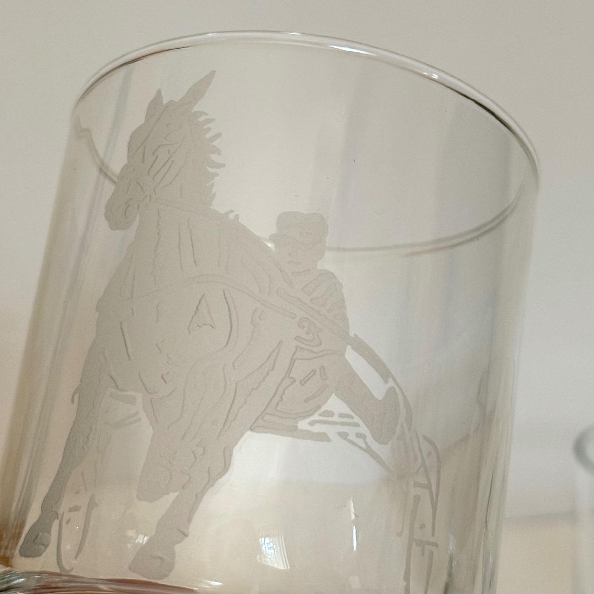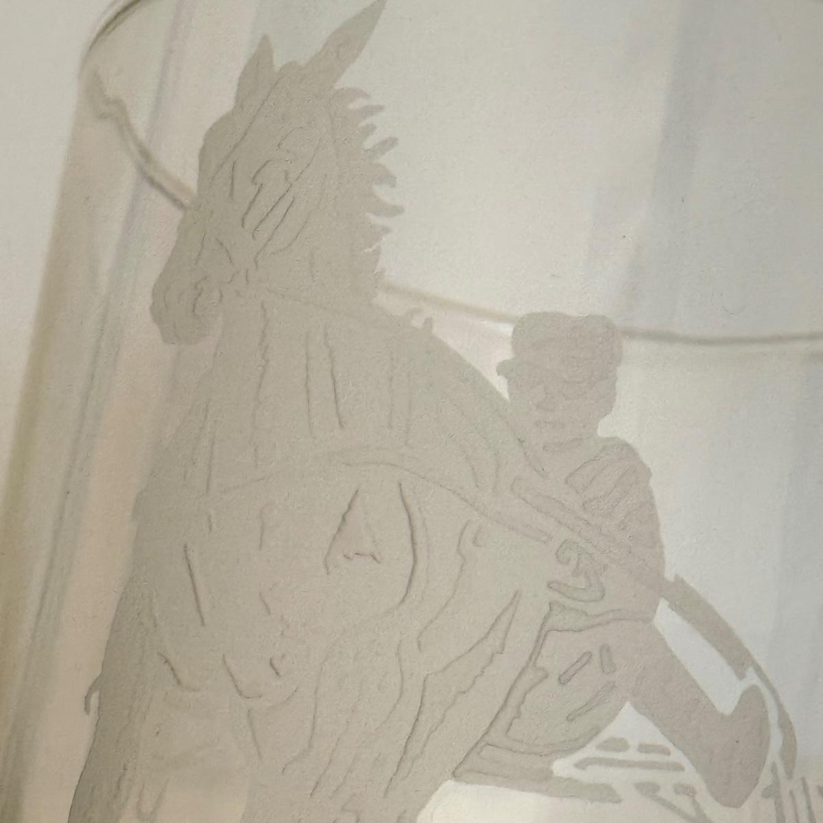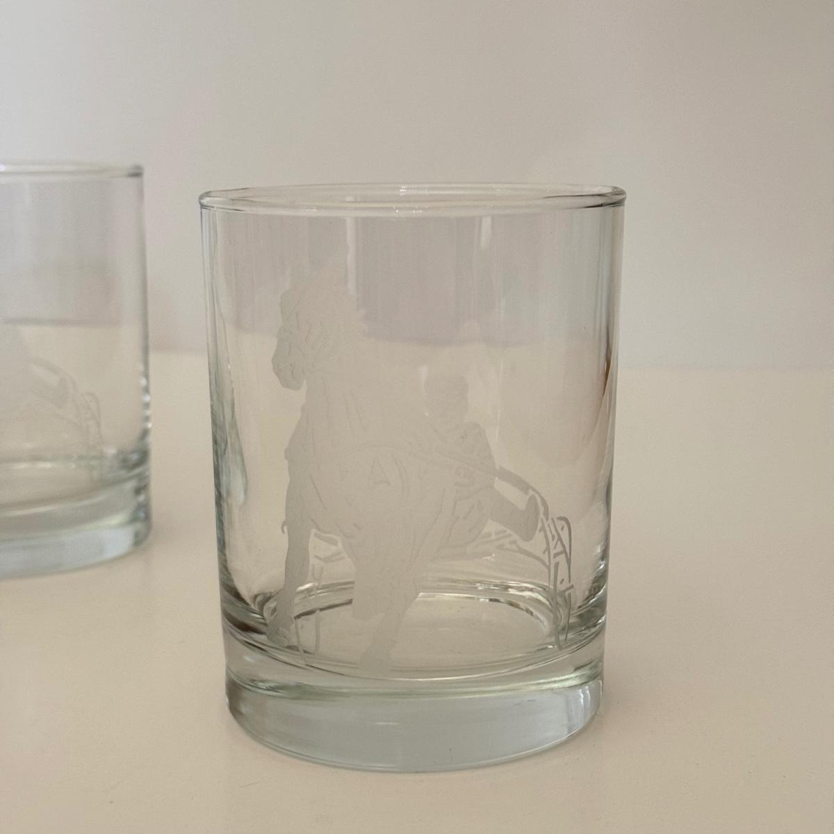 LOT 161F: Jockey Riding Horse Etched Whiskey Glasses (4)
