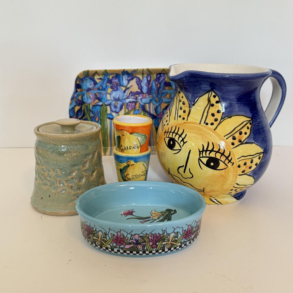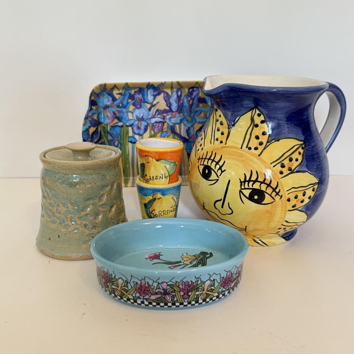 LOT 166F: Italian Pottery Pitcher, Signed Lidded Vase & More