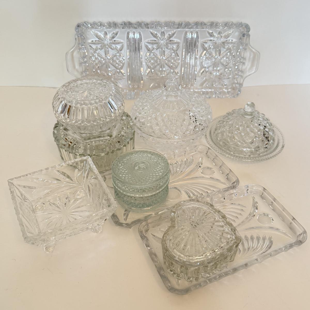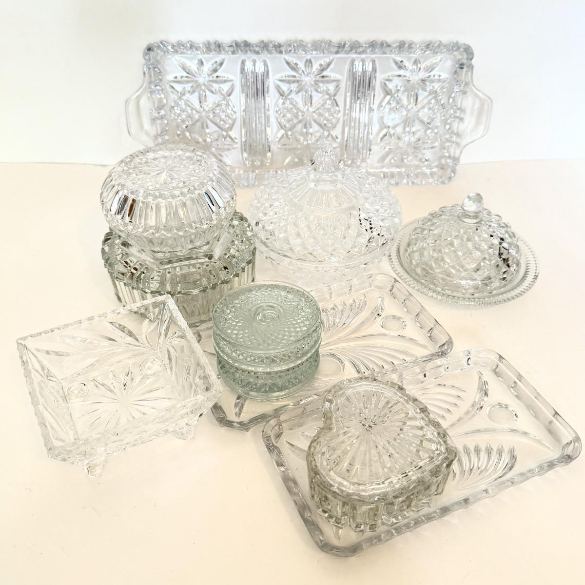 LOT 167F: Pressed Glass & Cut Crystal Trinket Dishes & Trays