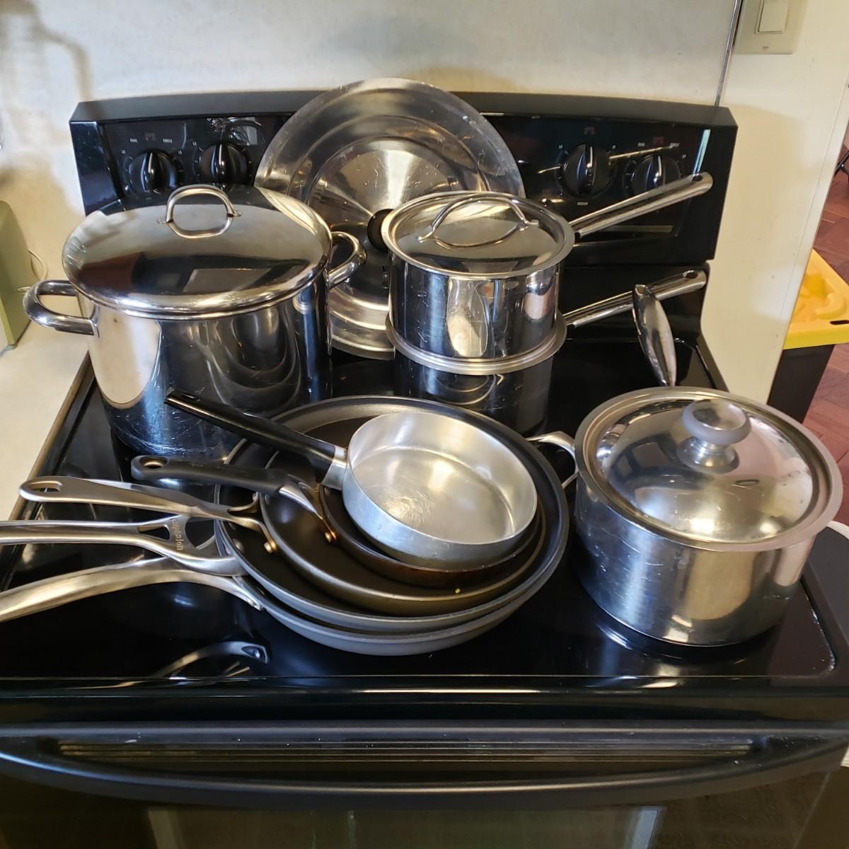LOT 225K: Large Assortment of Pots and Pans; Cuisinart, Calphalon, and More