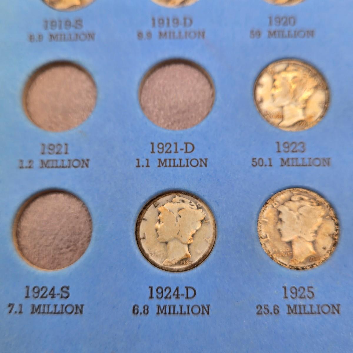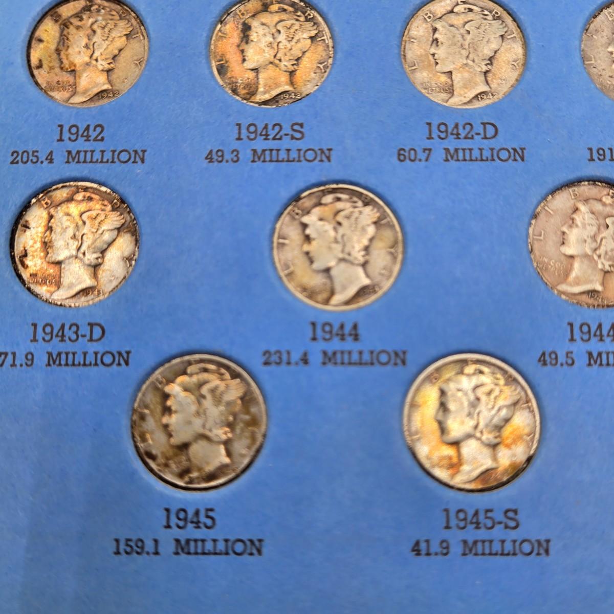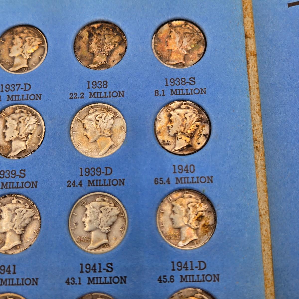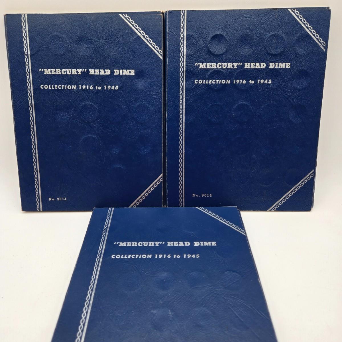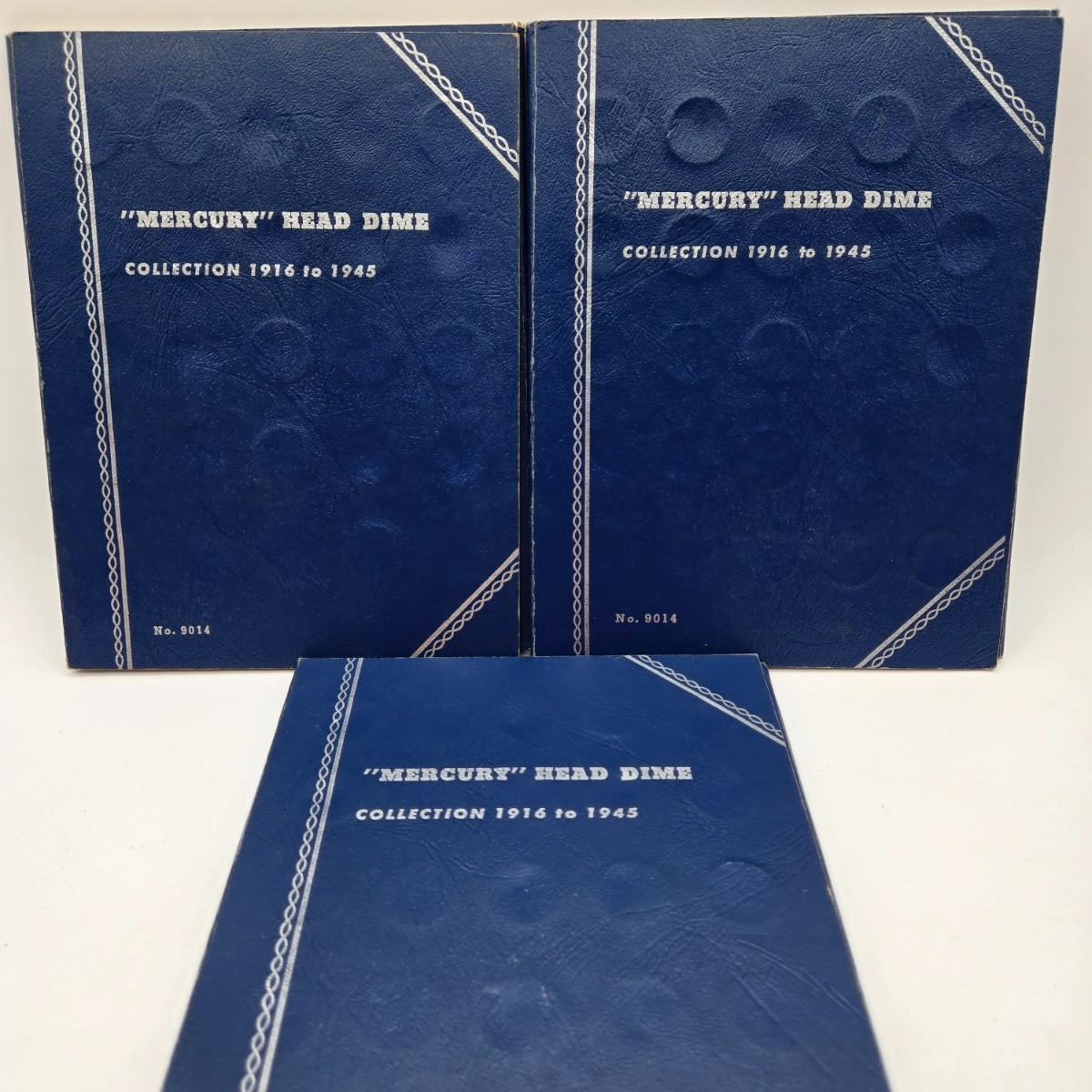 LOT 20: Huge Mercury Head Dime Collection - Three Incomplete 1916-1945 Booklets - 90% Silver - 206 Silver Dimes