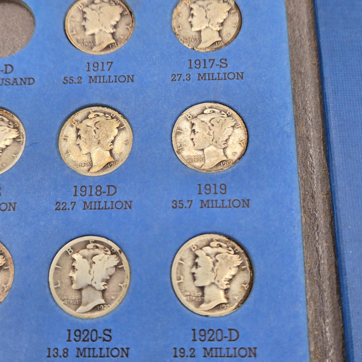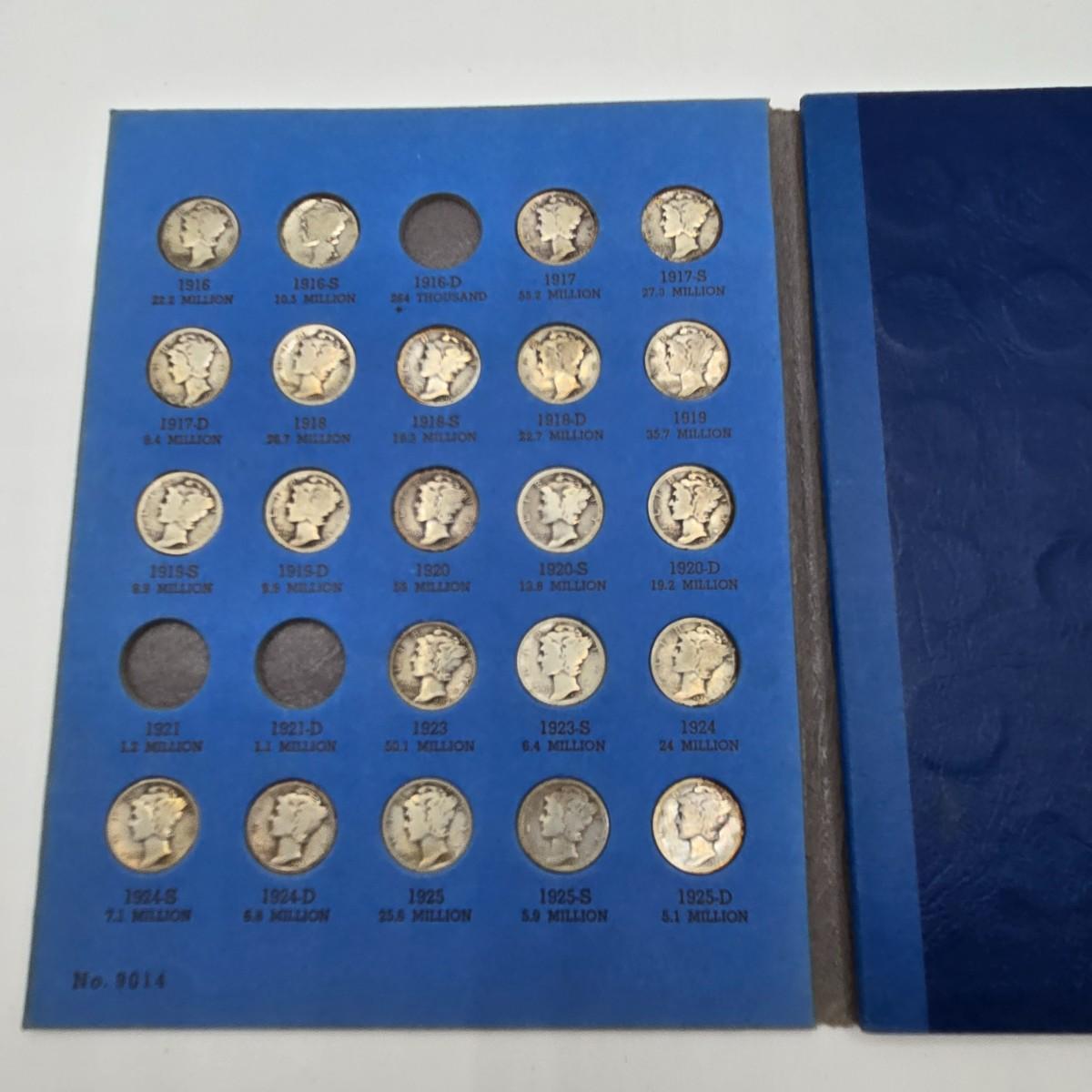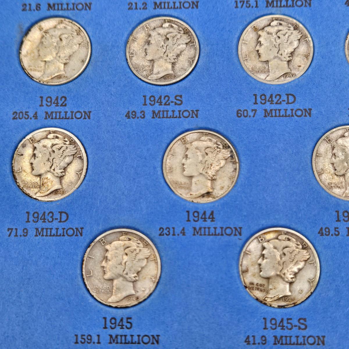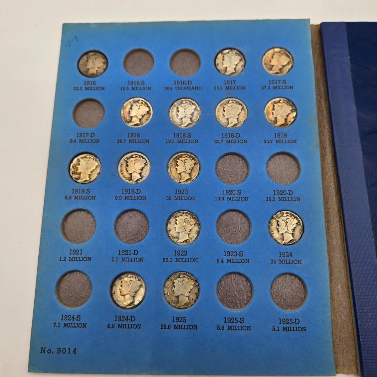 LOT 20: Huge Mercury Head Dime Collection - Three Incomplete 1916-1945 Booklets - 90% Silver - 206 Silver Dimes