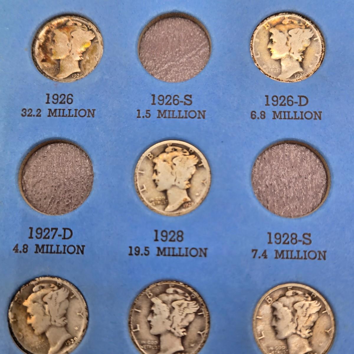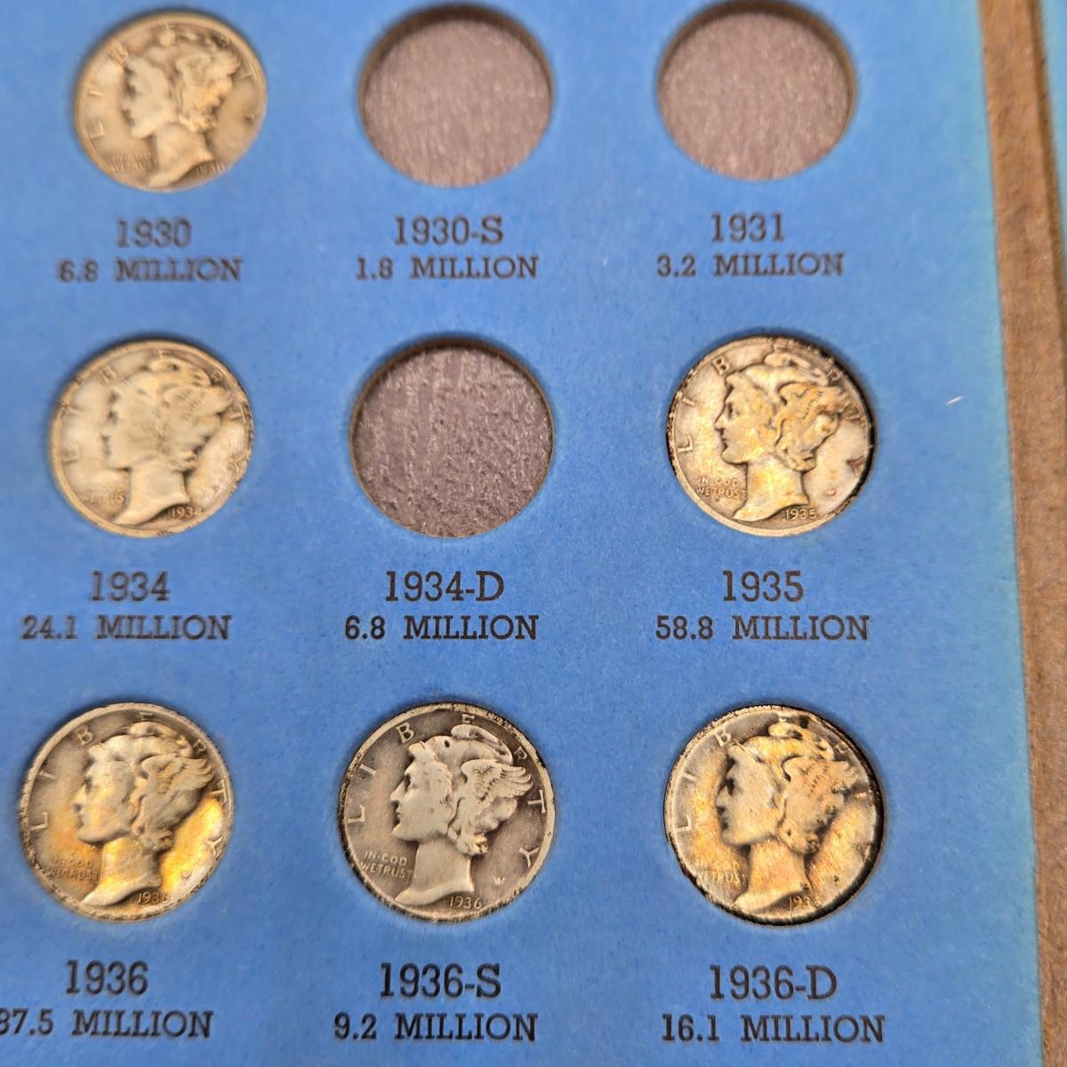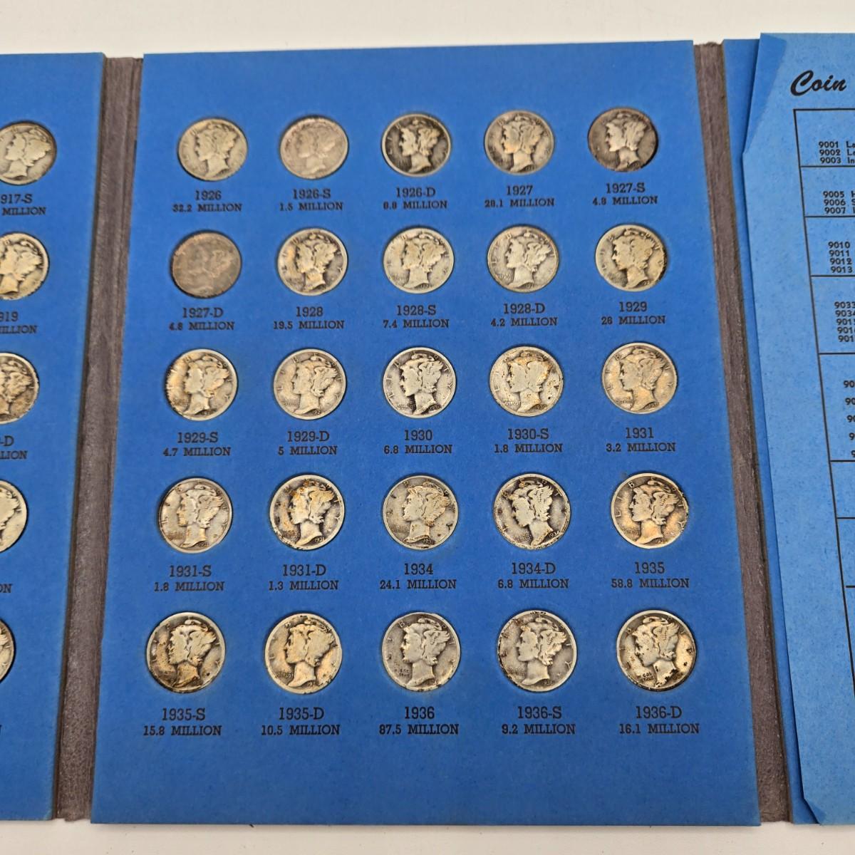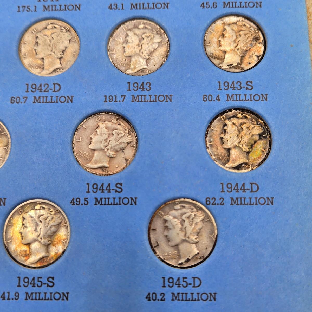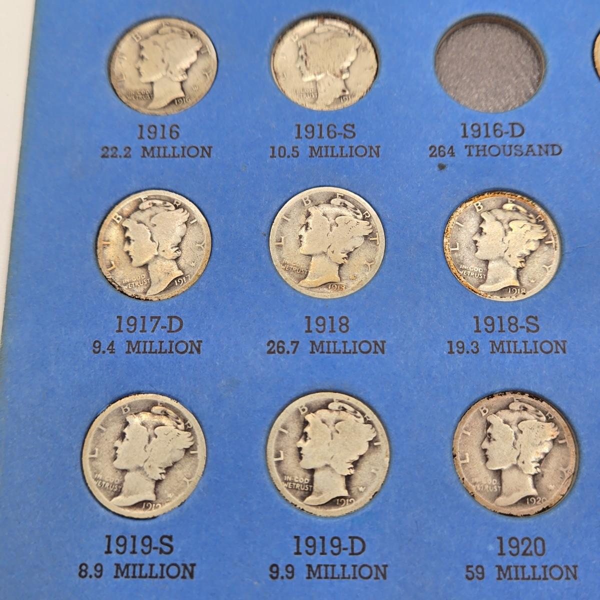 LOT 20: Huge Mercury Head Dime Collection - Three Incomplete 1916-1945 Booklets - 90% Silver - 206 Silver Dimes