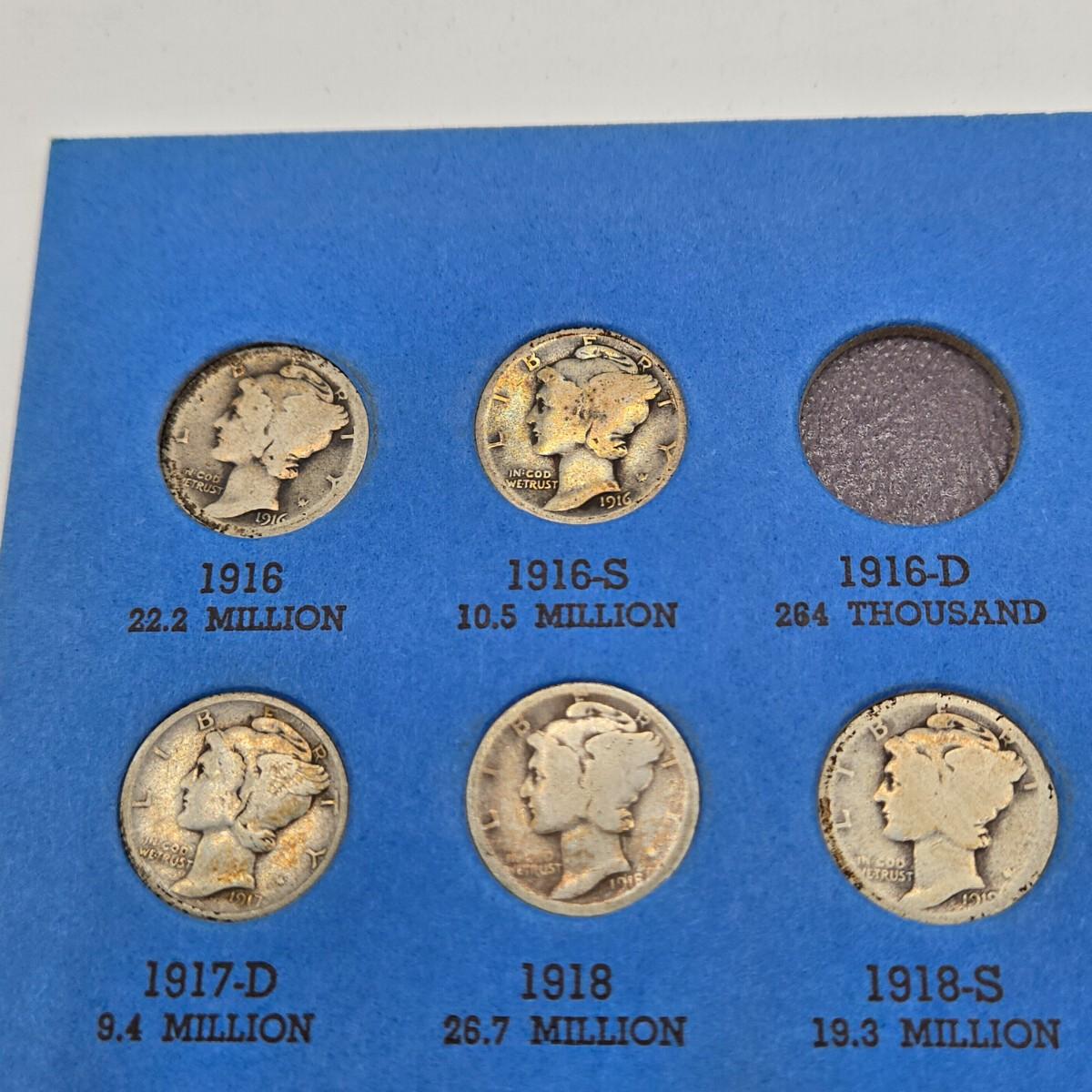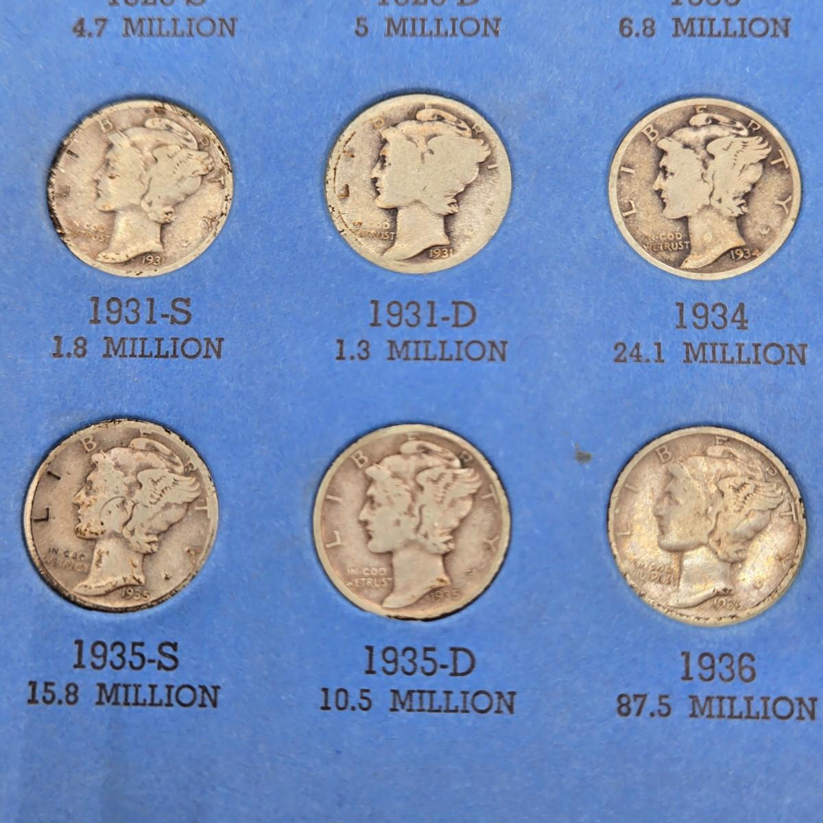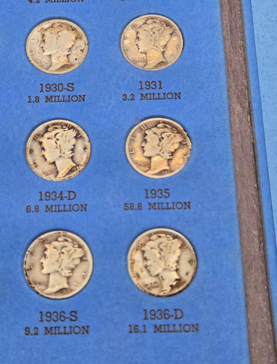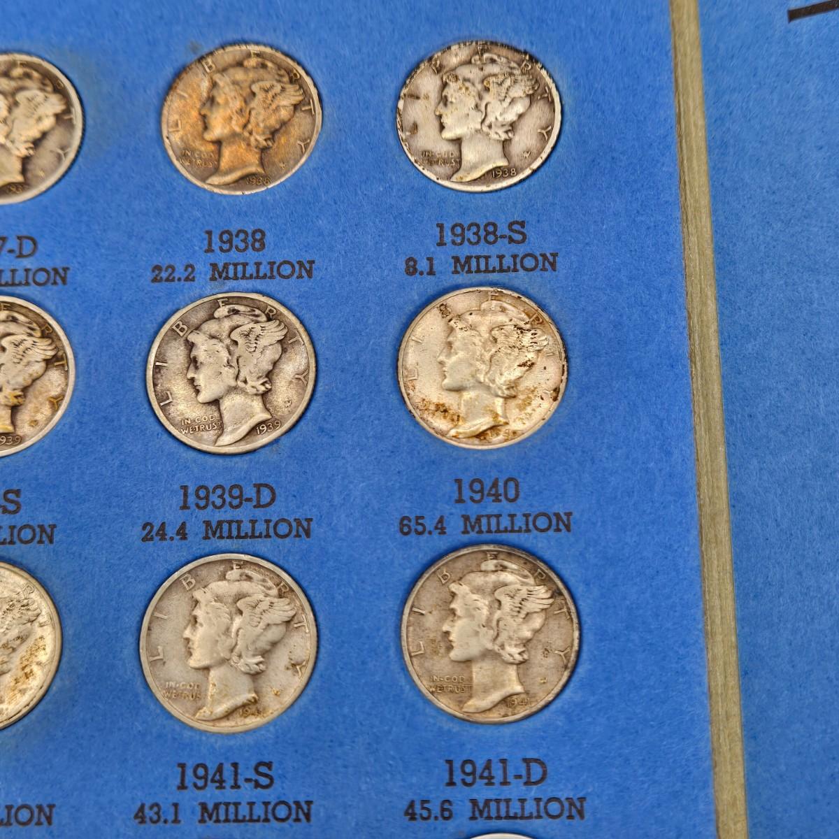 LOT 20: Huge Mercury Head Dime Collection - Three Incomplete 1916-1945 Booklets - 90% Silver - 206 Silver Dimes