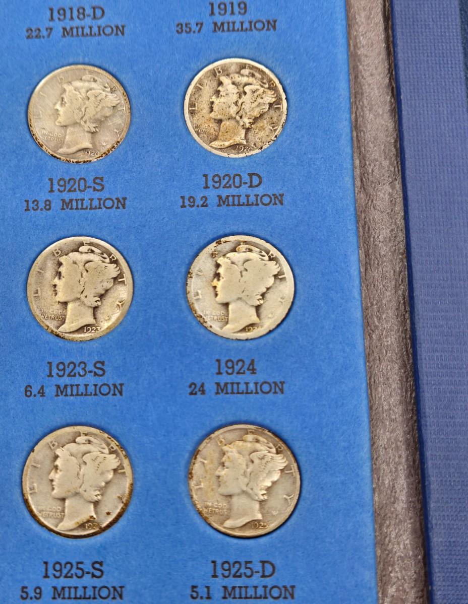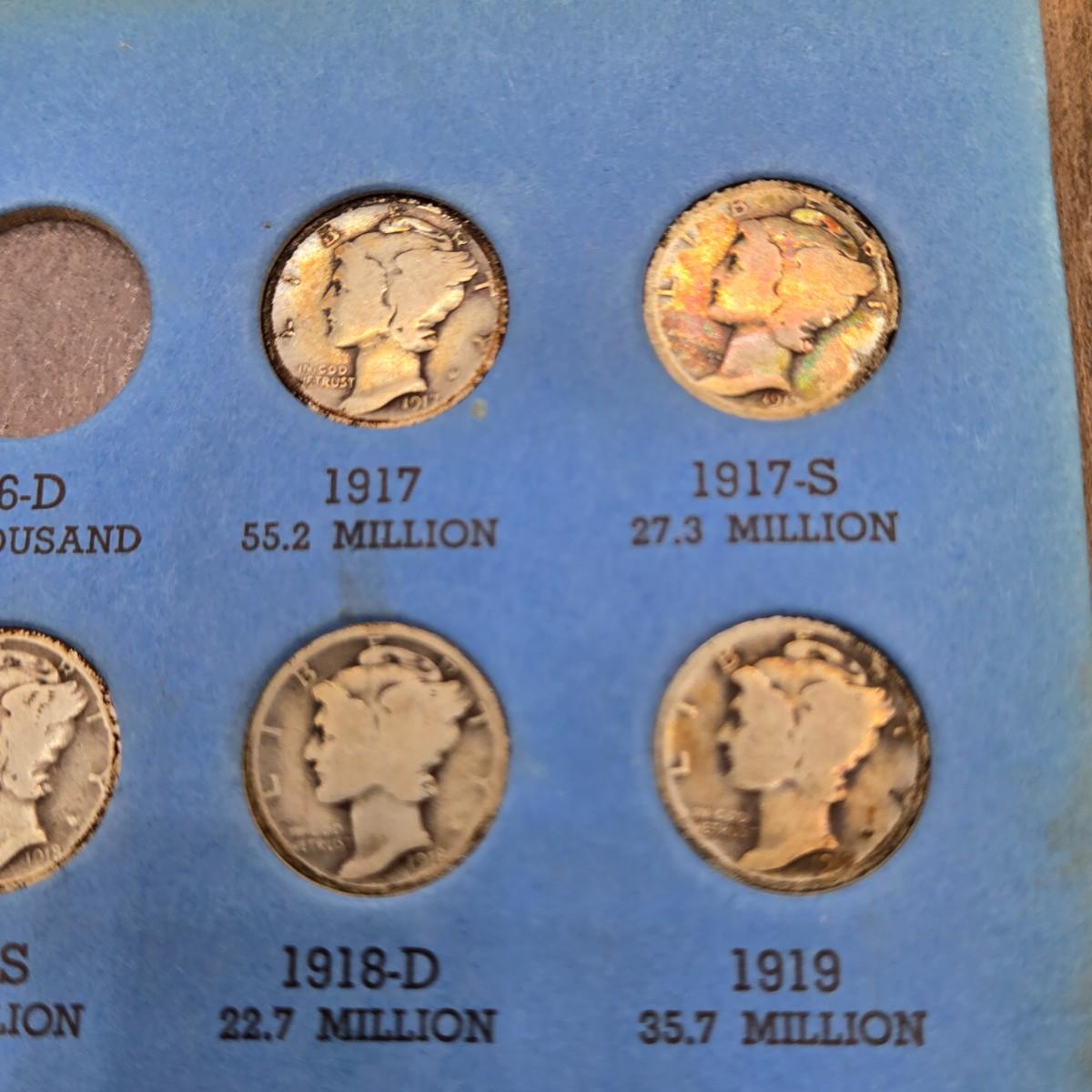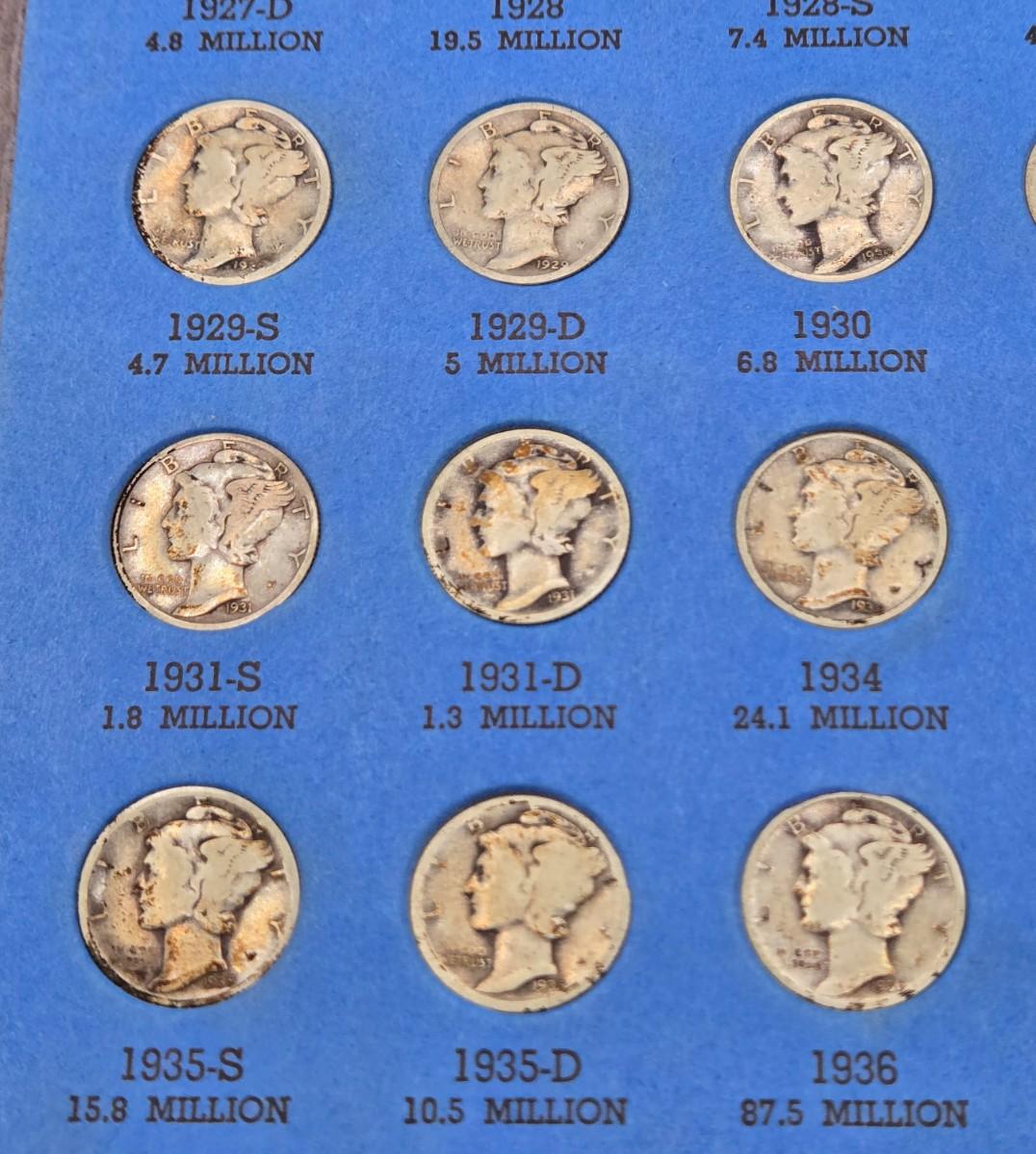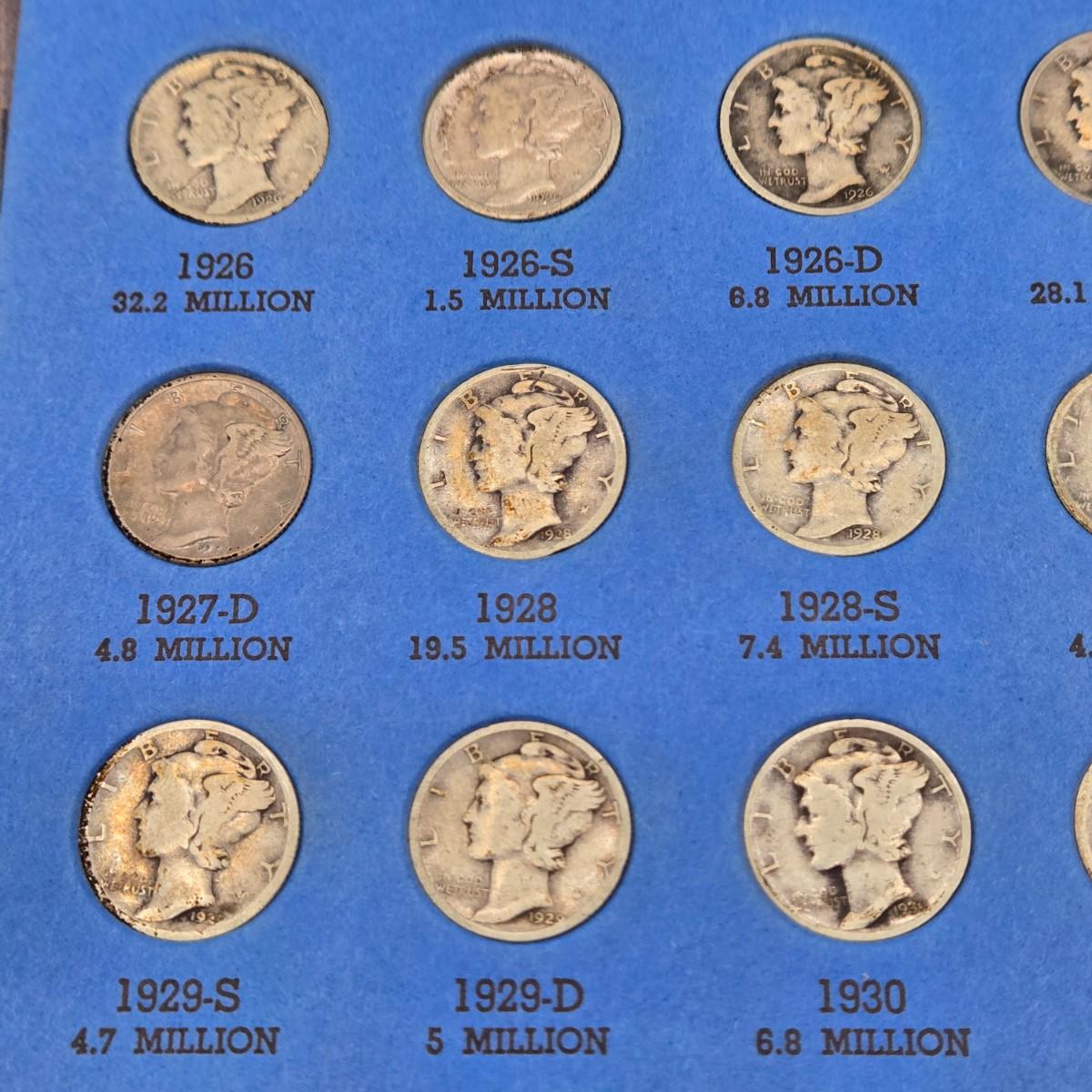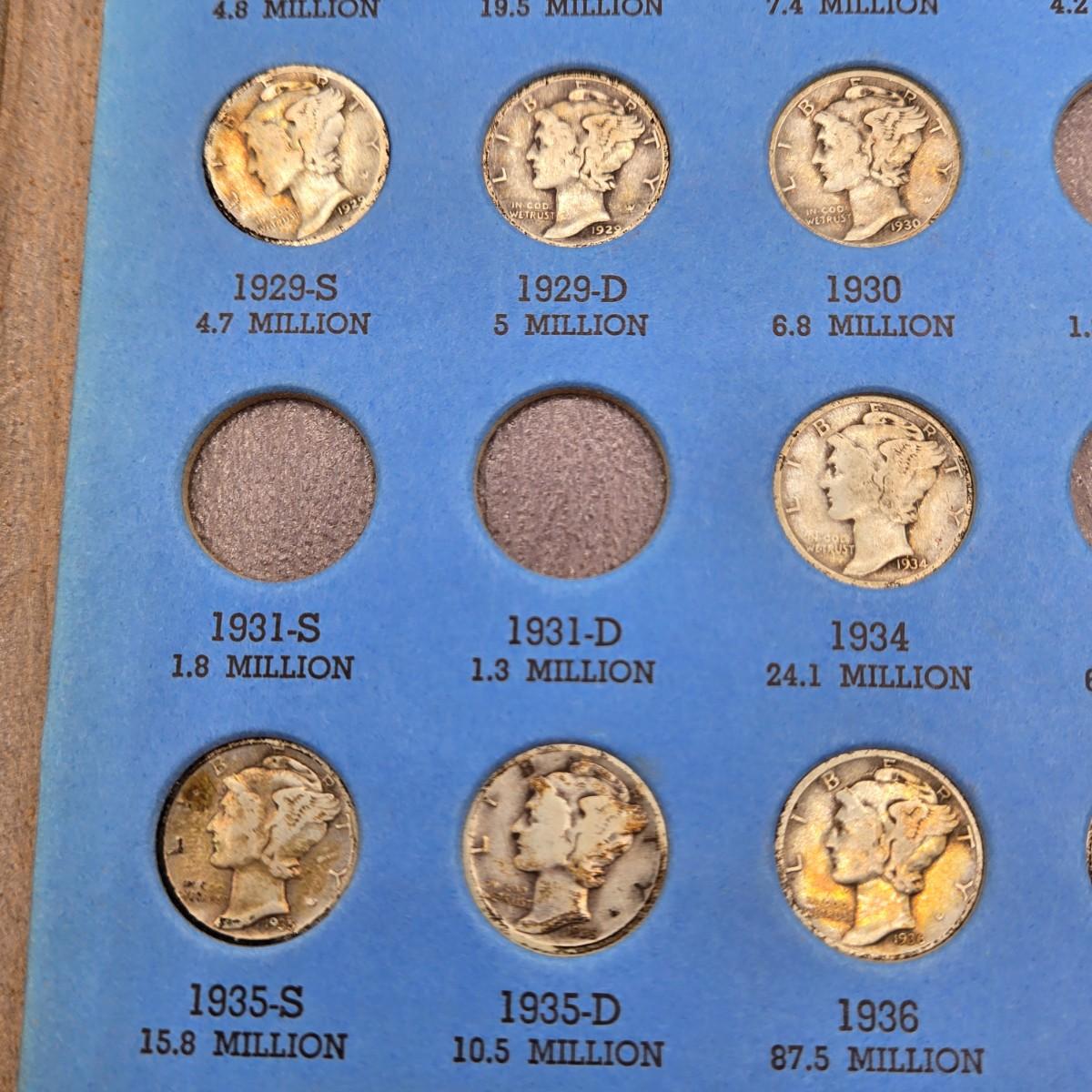 LOT 20: Huge Mercury Head Dime Collection - Three Incomplete 1916-1945 Booklets - 90% Silver - 206 Silver Dimes