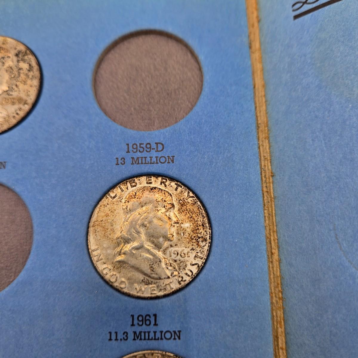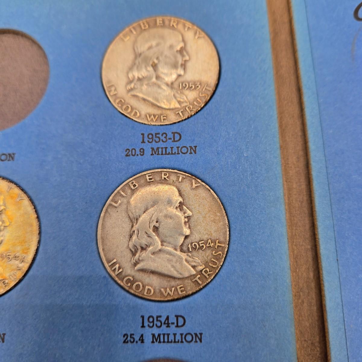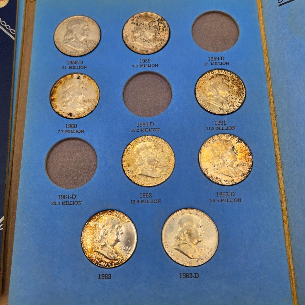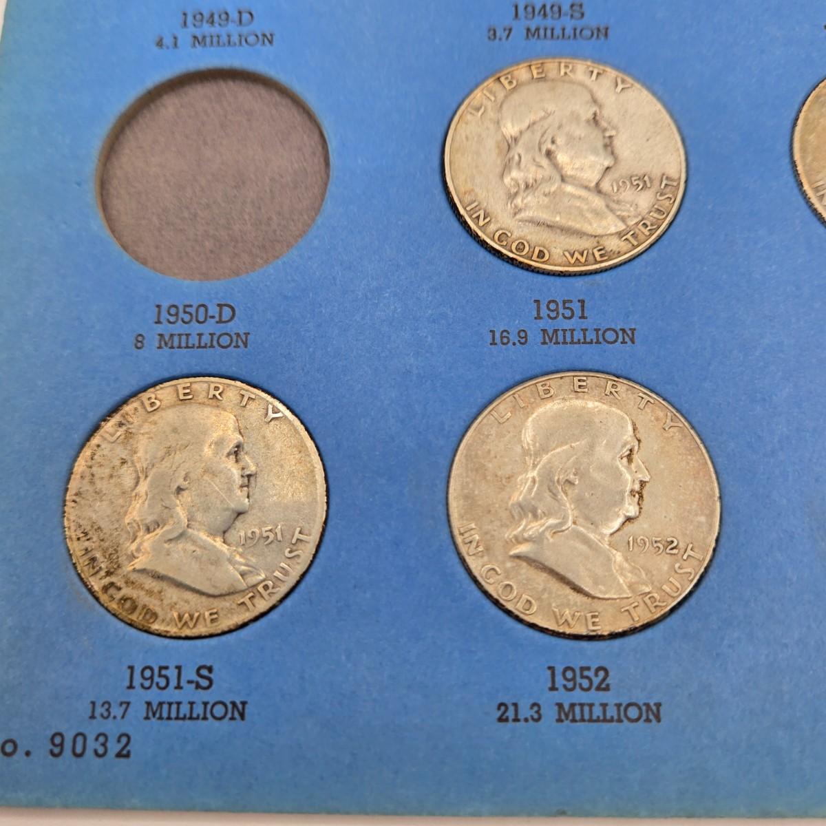 LOT 25: Benjamin Franklin Silver Half Dollar Collection Booklet 1948-1963 - Incomplete