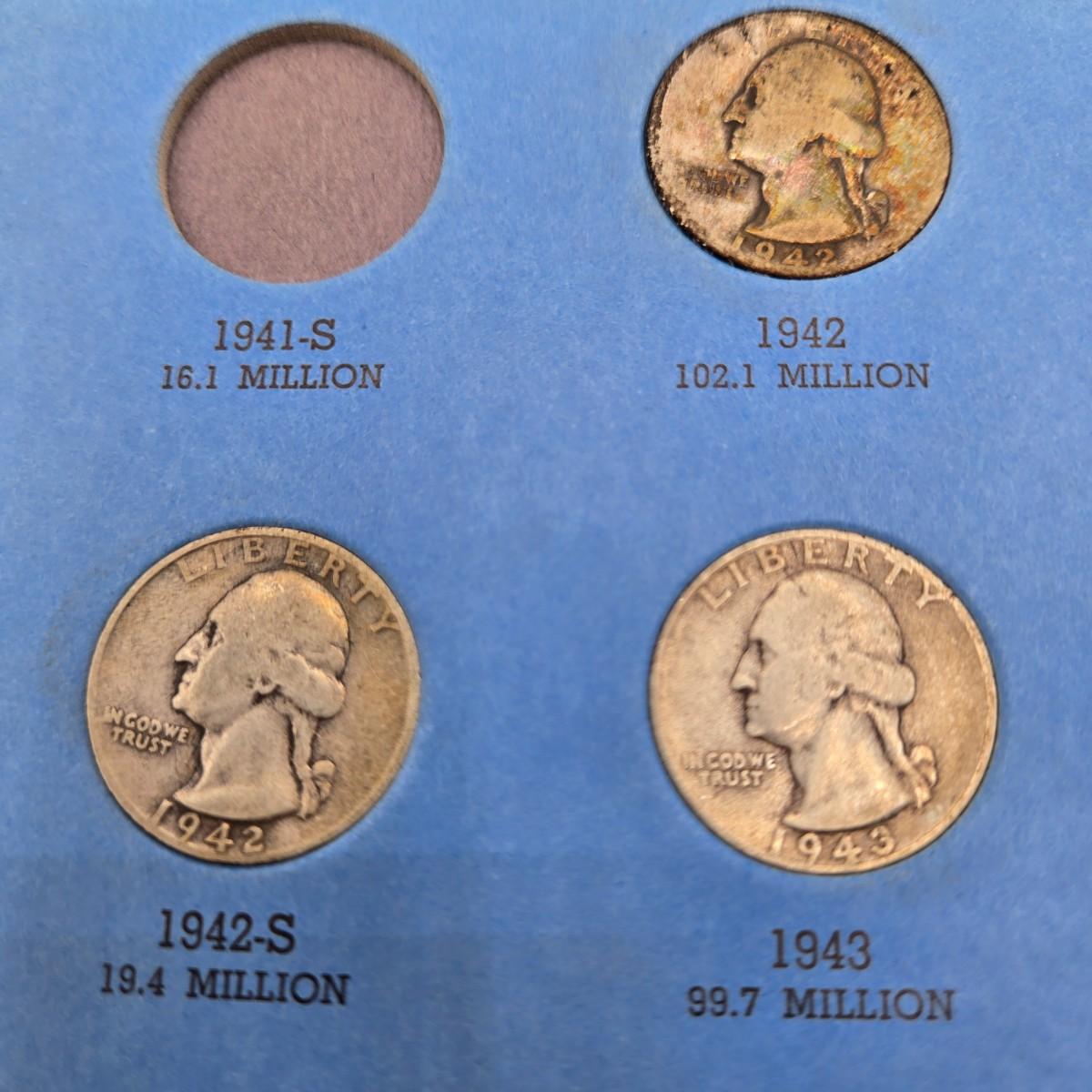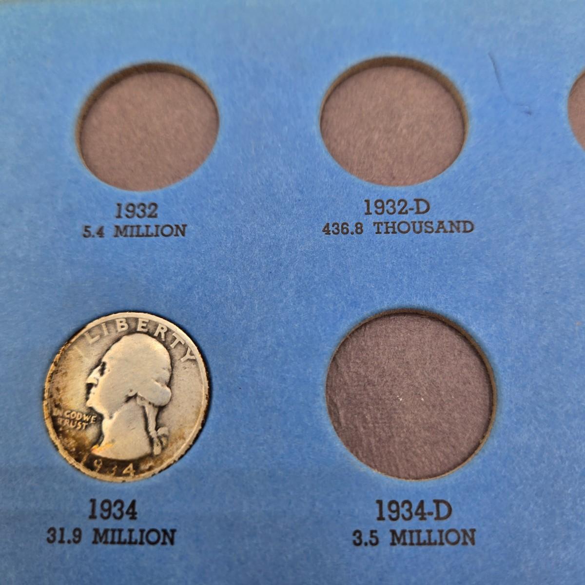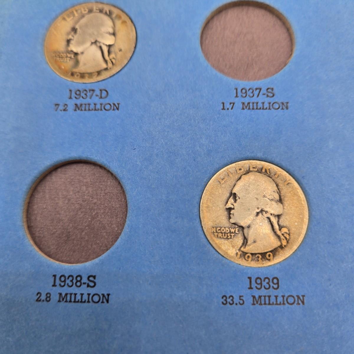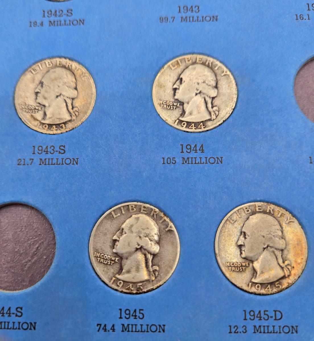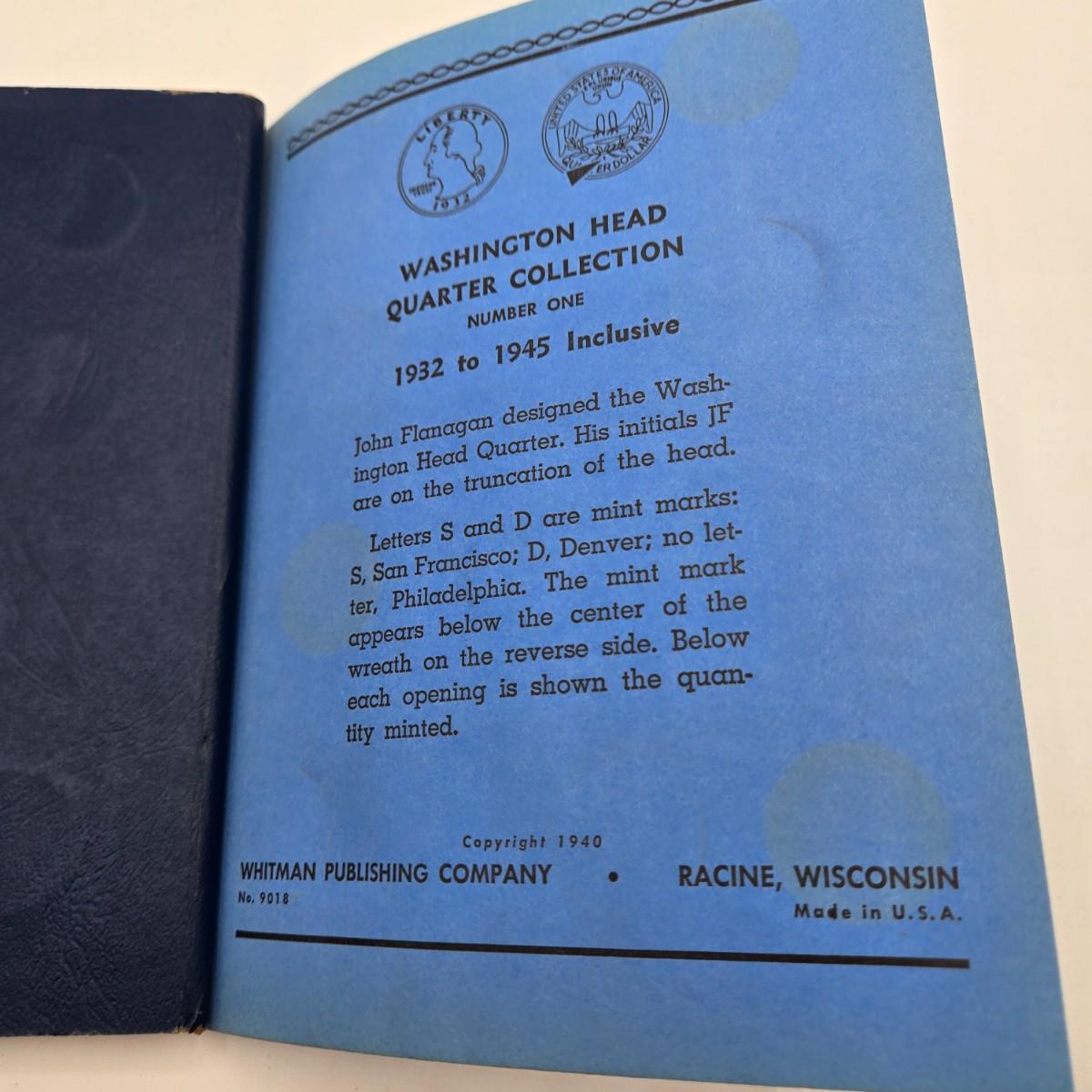 LOT 26: Washington Head Silver Quarter Collection Booklet Number One 1932-1945 - Incomplete