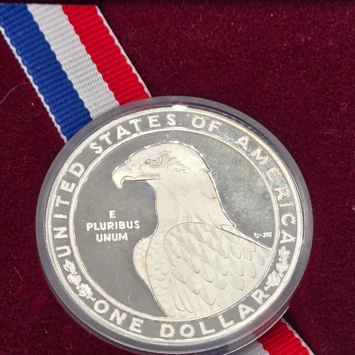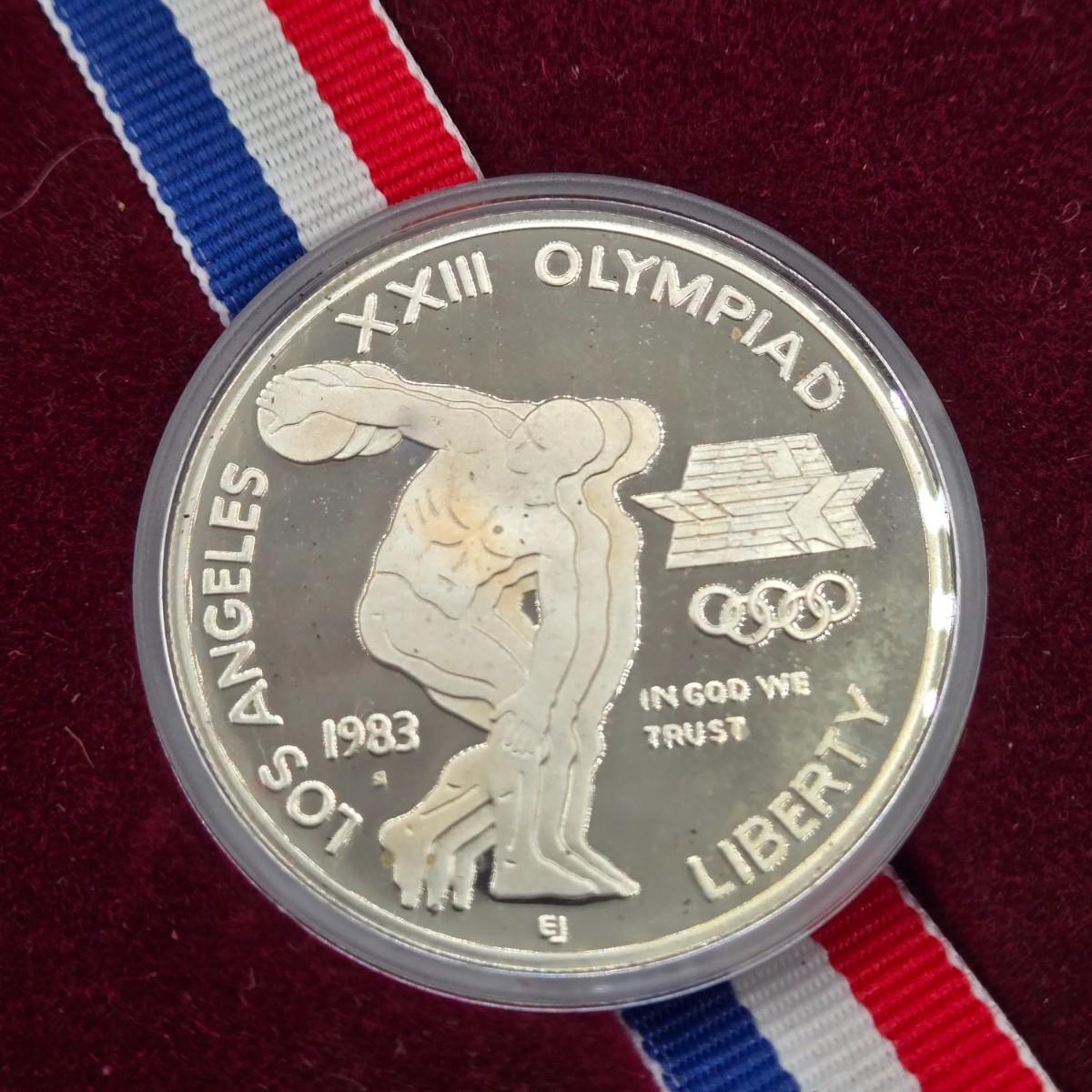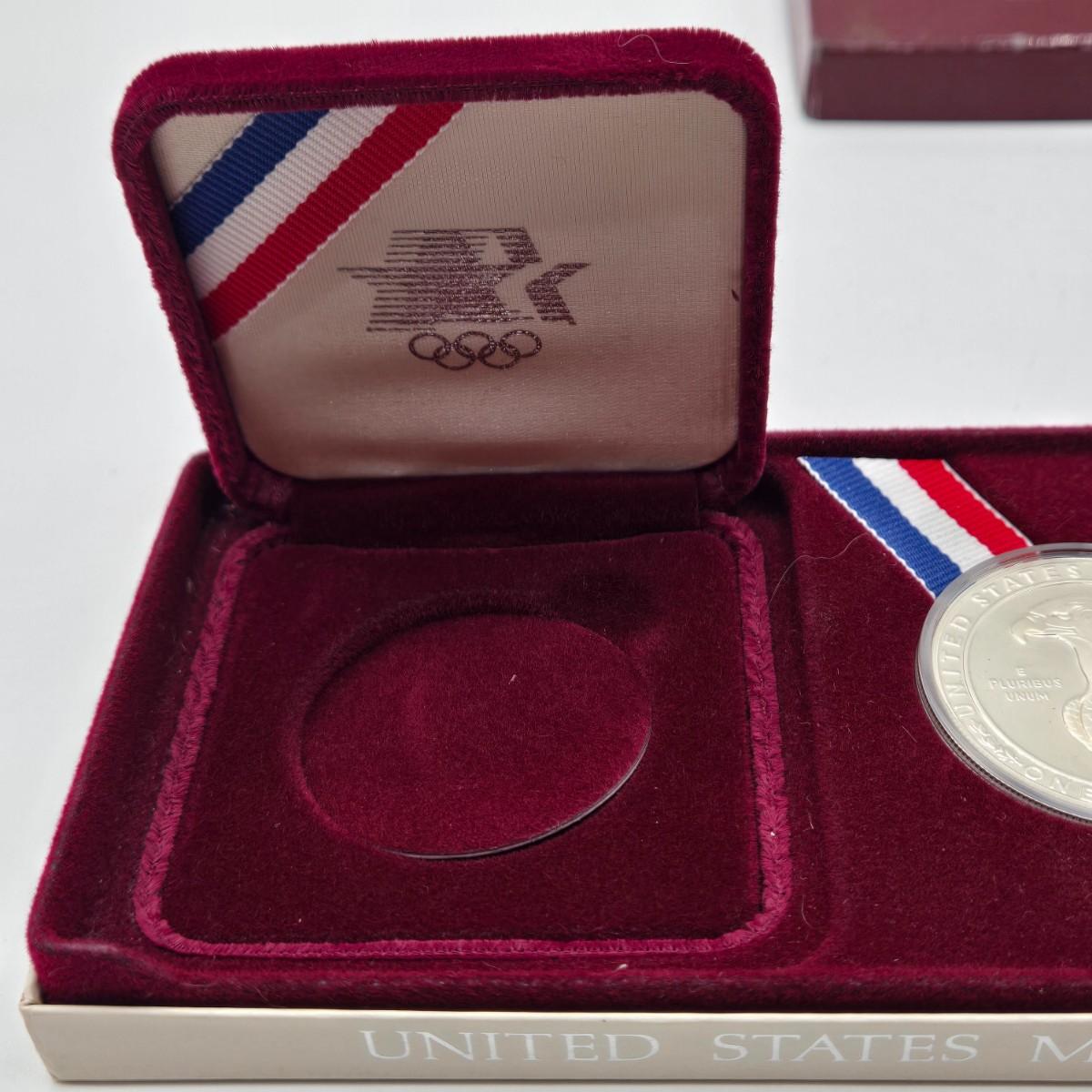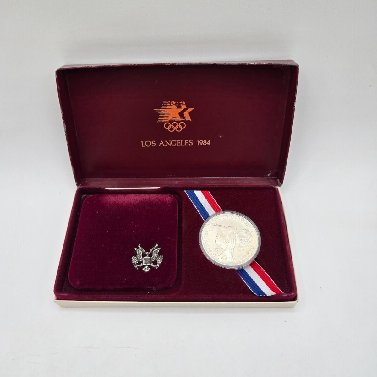 LOT 28: 1984 Los Angeles Olympic Commemorative Silver Dollar in Original Packaging
