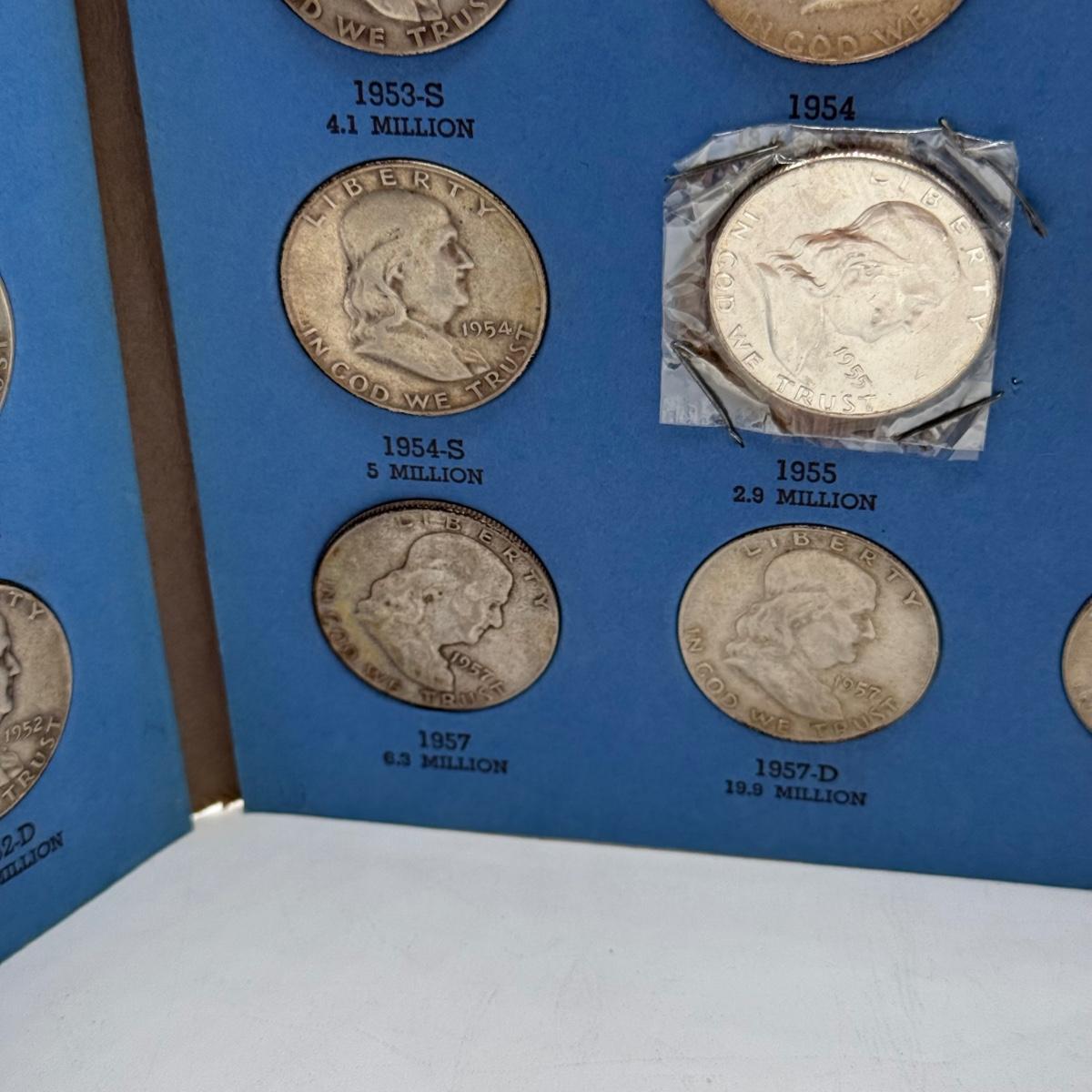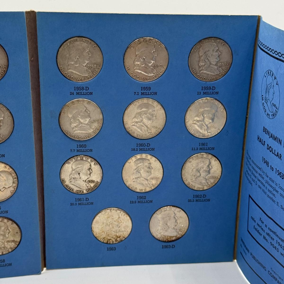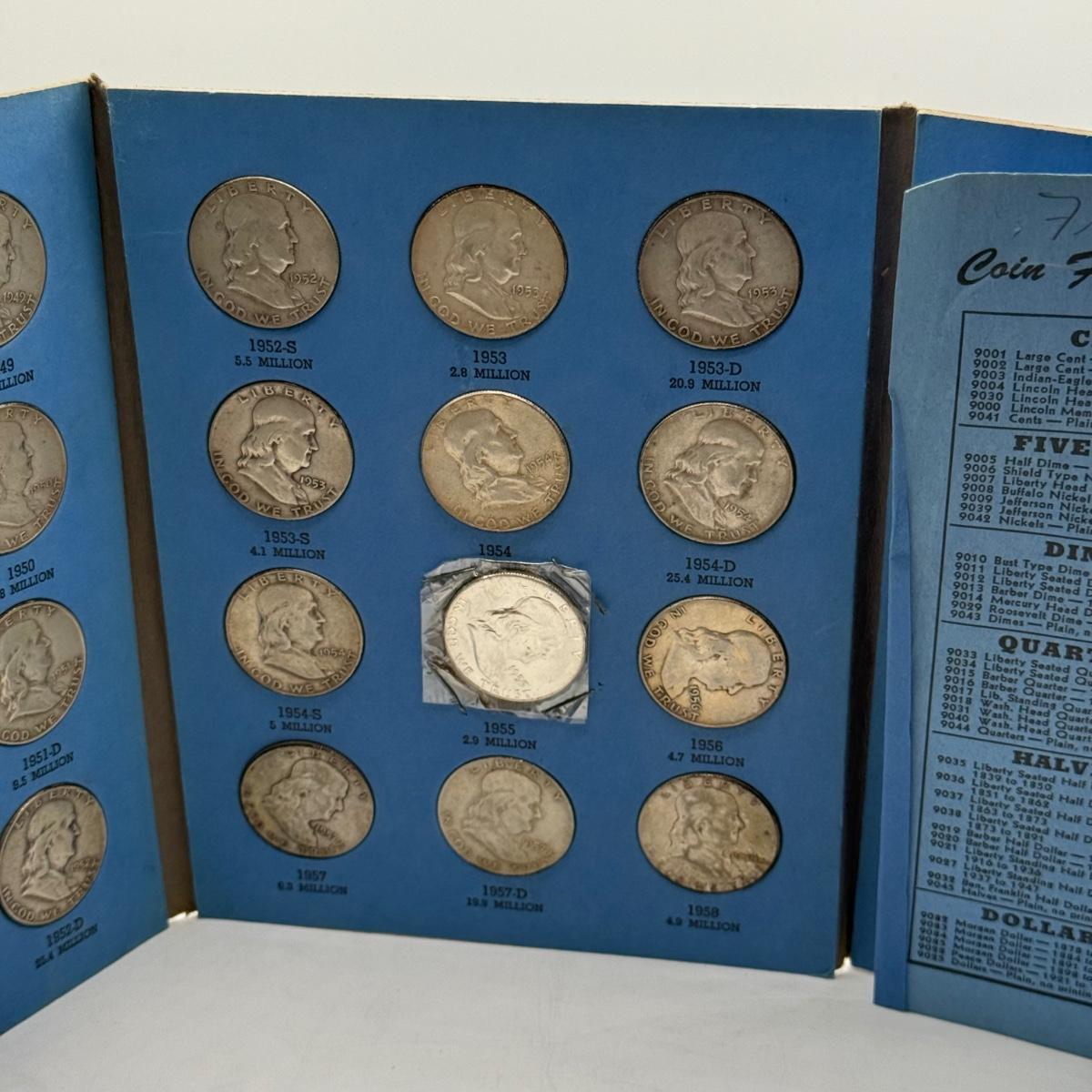 LOT 52: Complete Benjamin Franklin Silver Half Dollar Collection Booklet 1948-1963
